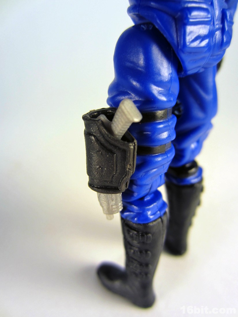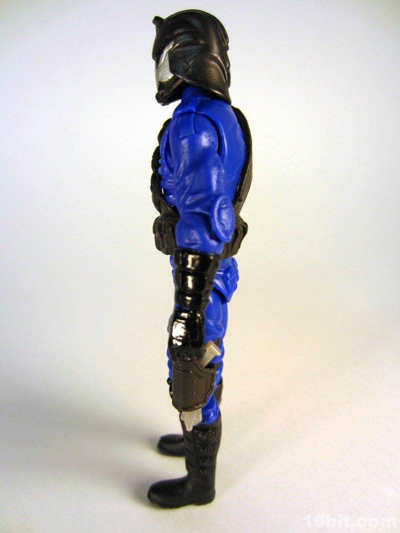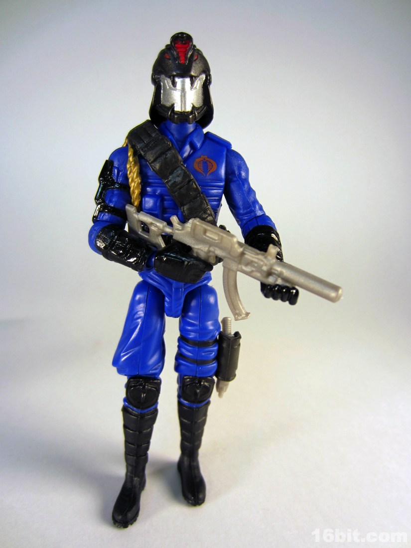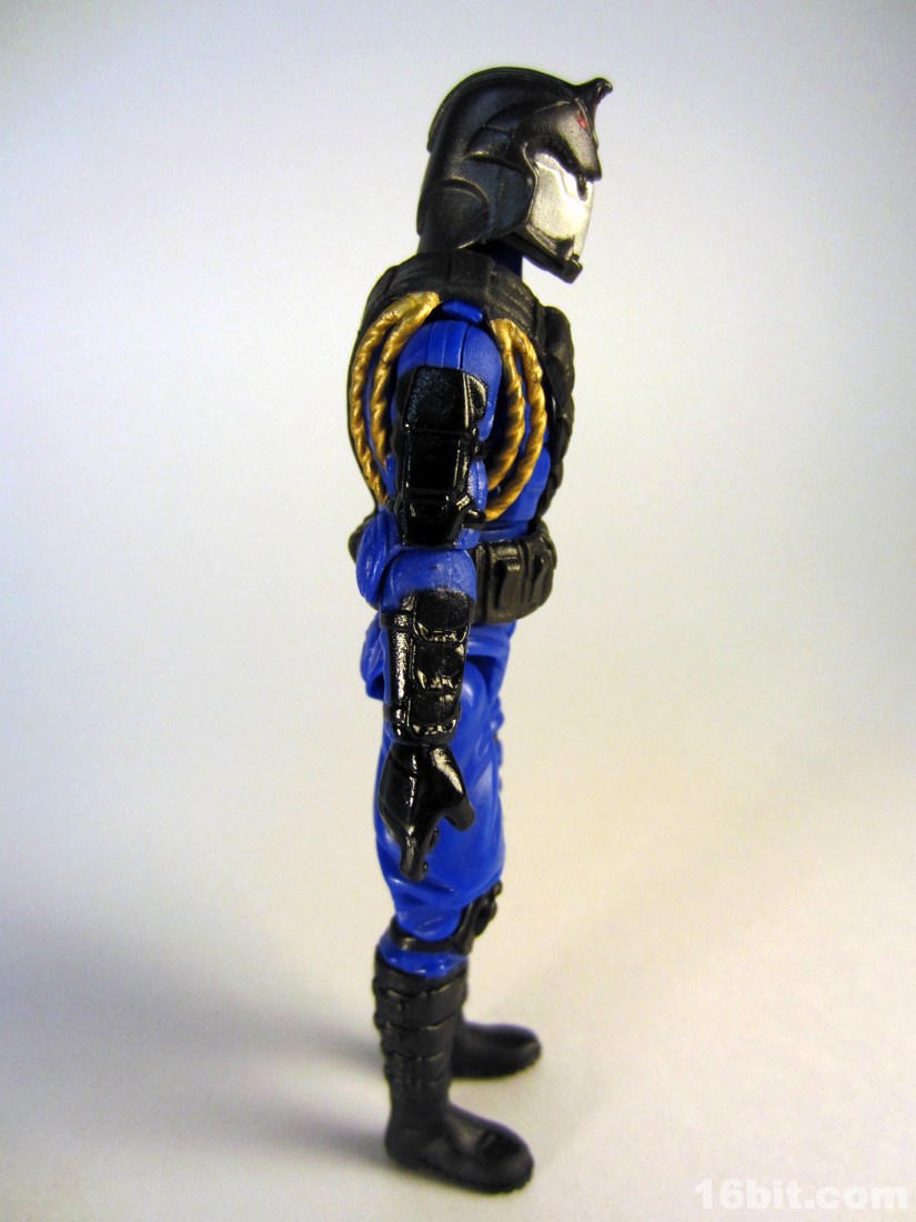 Note for future generations: the movie G.I. Joe: Retaliation was originally scheduled for release on June 29, 2012 with the toys bowing on/round May 29, 2012. The movie was delayed until March 2013 mere days before the official toy launch, so several figures made it out to market. It is unknown if 100% of wave 1 shipped, if all the blue Cobra Commanders shipped (or were being held back), and so forth at this time. It might be a very common figure when the second launch comes in early 2013. The reason given for the film's delay was a decision to add 3D to the movie to increase overseas ticket revenues, but many are speculating it's to un-kill off a major character due to an actor's rising star power. The reduced articulation in this figure is also seen on other figures in the line, but it doesn't suffer too much for it. (The loose joints, on the other hand...)