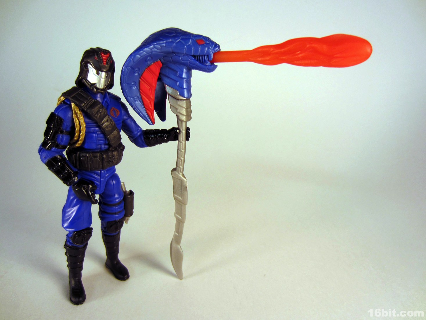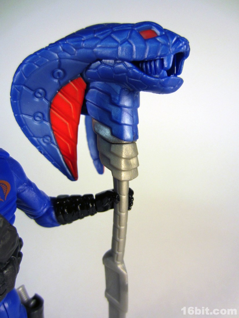While not precisely like the movie, this new Cobra Commander has an awesome helmet and a lot of very toy-friendly crazy elements. To be honest, if the joints were tight, if a stand were included, and if he had ankles, this would probably be my favorite version of the character in years. The little details and the ridiculous Cobra staff are a lot of fun, although Cobra Commander does have some difficulty holding up the two-piece staff, and getting the firing mechanism to work is a little tricky. It doesn't quite click into place like other rocket launchers, so you'll have to futz with it and wonder if it is broken for a few minutes before getting the feel just right. On the bright side, it's not too hard to get the rocket to rest in the snake head without being in a position to accidentally get set off, and that's really nice to see.
