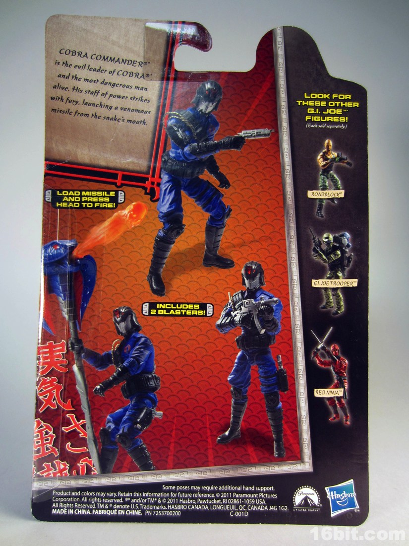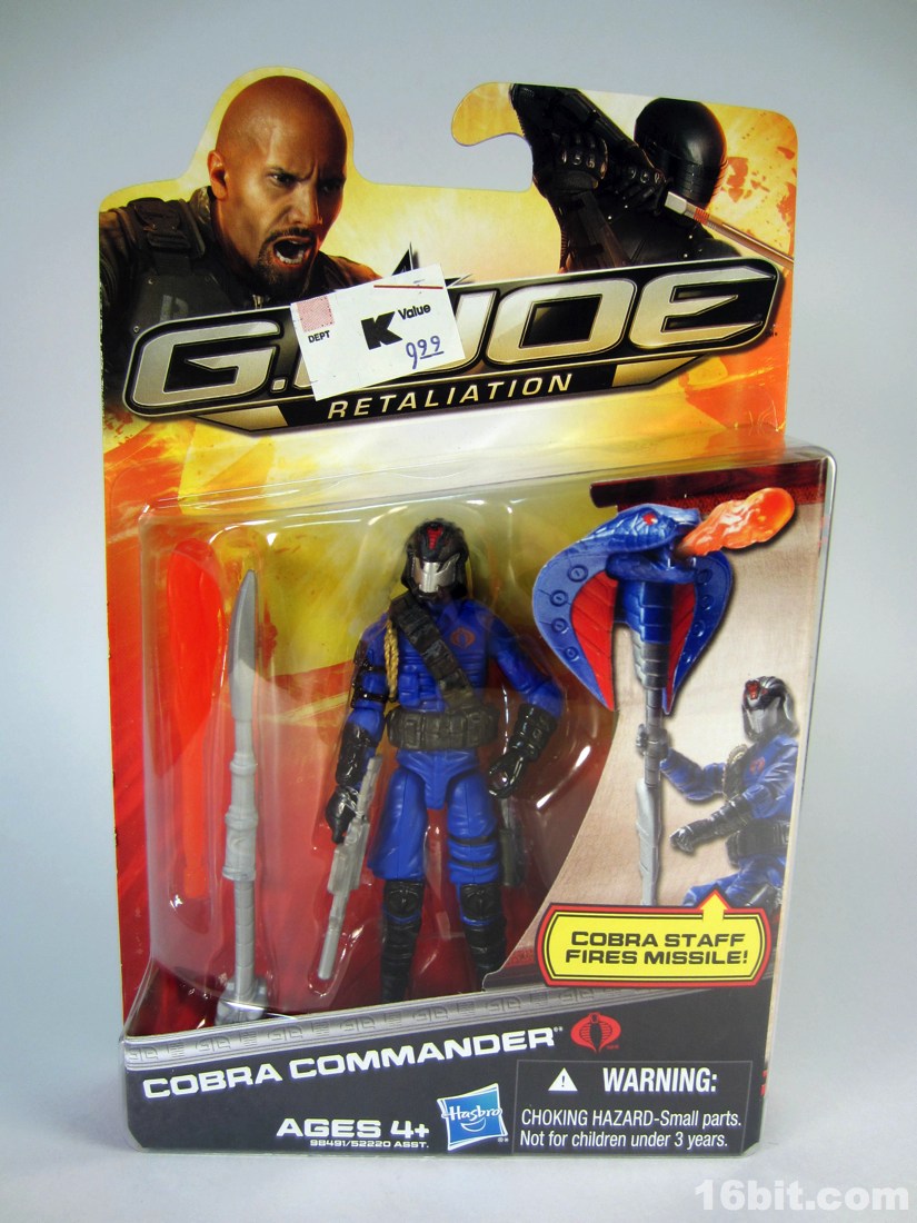 I'm not quite sure what the deal with Cobra Commander is, as in, which version is the rare one? Everybody claimed at first it was the black one, but I saw dozens of black ones around the figure's May launch and didn't see a single blue one until Kmart nearby got some in July much later. It looks like the very first figures may have been blue, with black being the running change/second release. If that's truly the case, blue may be the "rare" one, but it seems despite Hasbro stopping delivery of these items there may well be plenty out there.