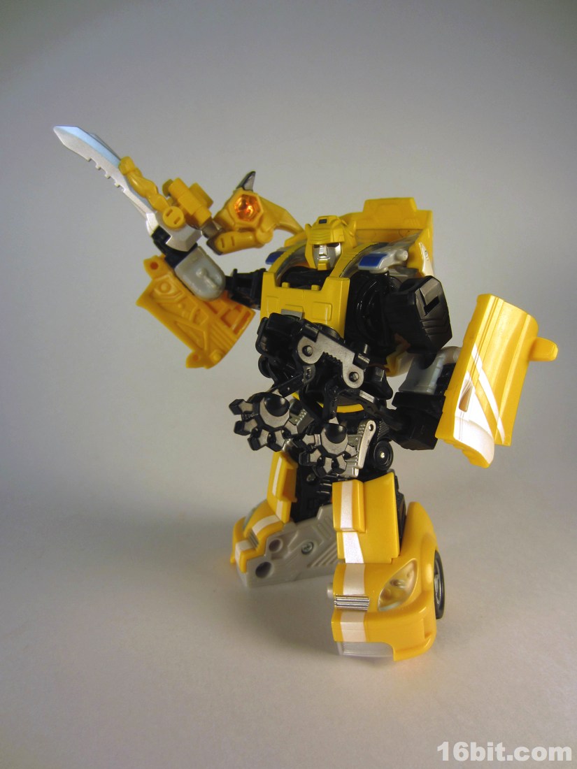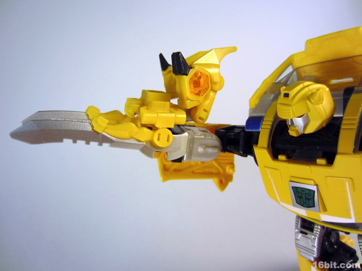Takara-Tomy Transformers Prime Bumblebee Sword Action FigureAs a weapon, it reminds me of some of the Armada era Mini-Cons which transformed into melee weapons and annoyed me because they weren't guns. There was nothing really wrong with them, but if I want a sword, I want it to look like a sword. This is some weird blade wrist thing, and while it looks OK on some figures, let's face it, it's a little silly. It's basically a "sword gun" in b right yellow, so there's nothing about it that really rings true as a dangerous weapon. Still, if you have a figure that needs a gun like Classics Bumblebee, it's something!