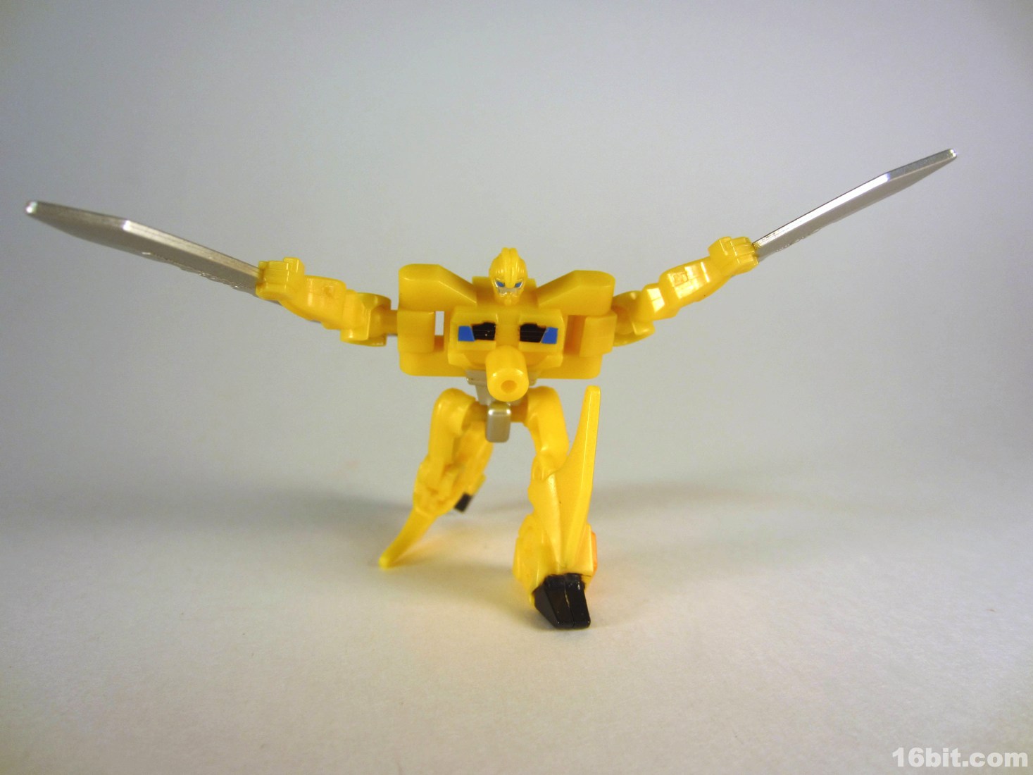 Takara-Tomy Transformers Prime Bumblebee Sword Action FigureI'm not so crazy about the American versions, but Transformers Prime in Japan brings back mini sidekick robots with the likes of the Bumblebee Sword. This teeny tiny 2-inch high robot is shorter than Optimus, but it's still kind of neat. It's not as solid, it feels smaller and a little flimsier plus it feels like the legs may pop off. One of the hips on mine doesn't quite fit perfectly, and both legs fell off en route from Japan.