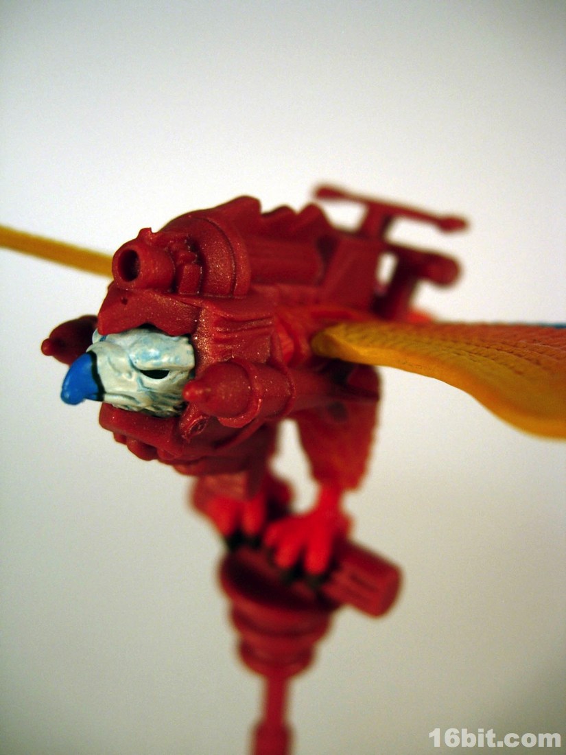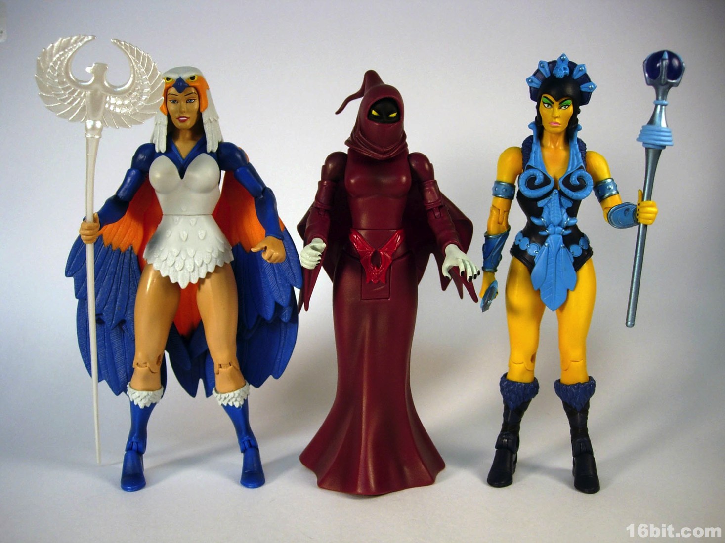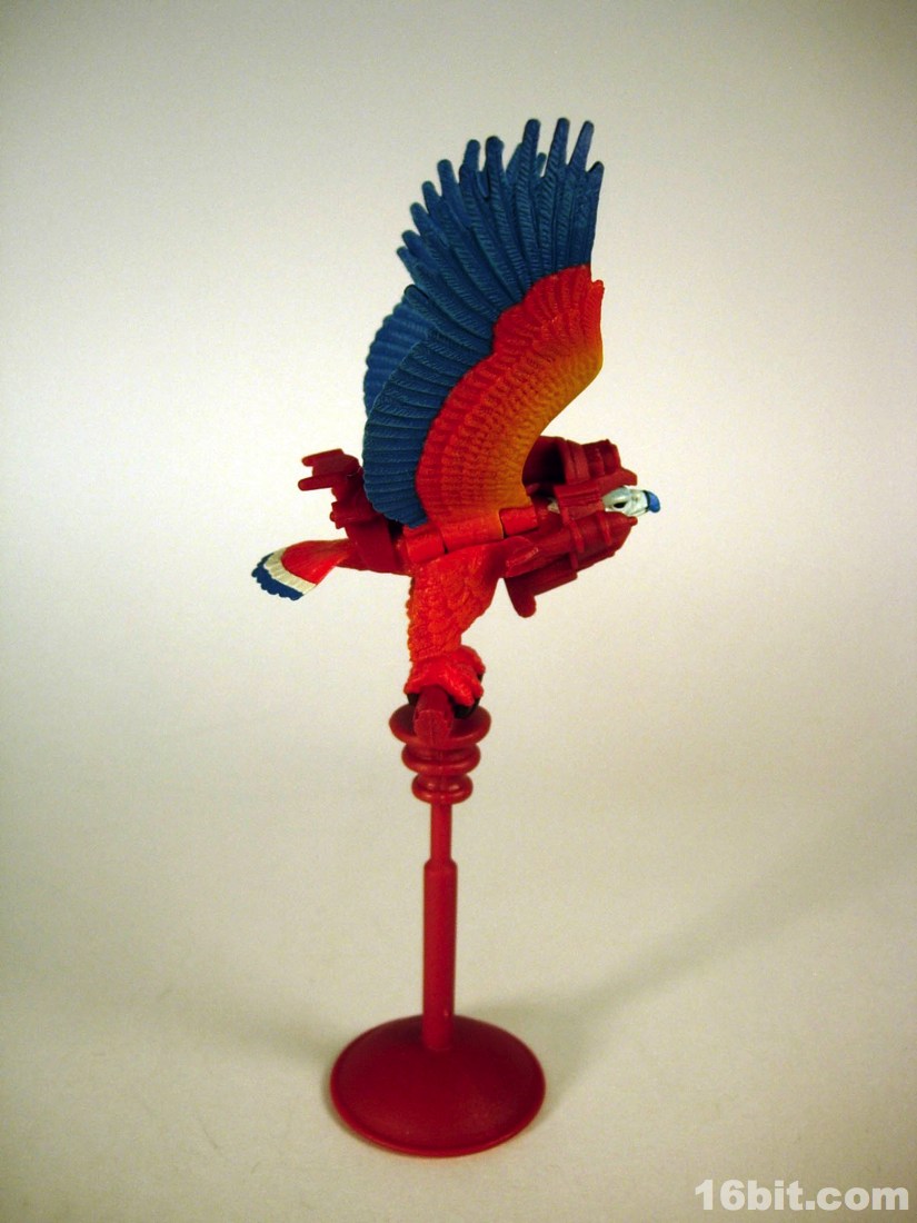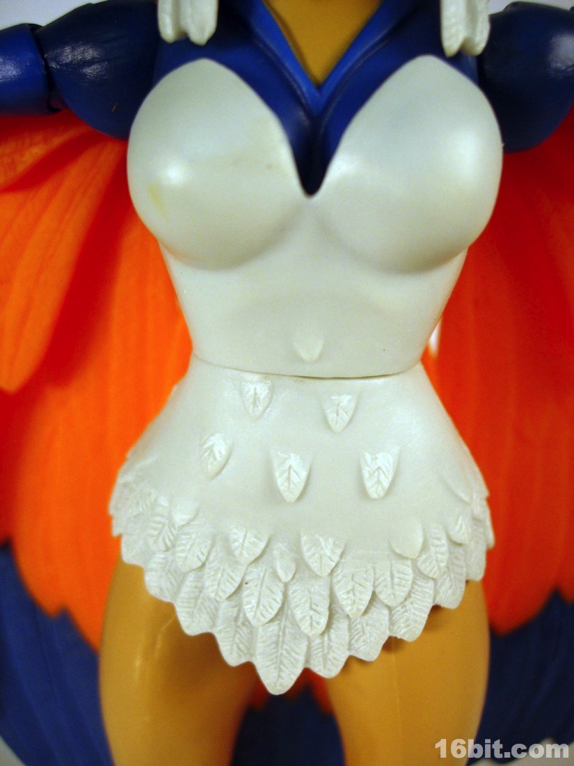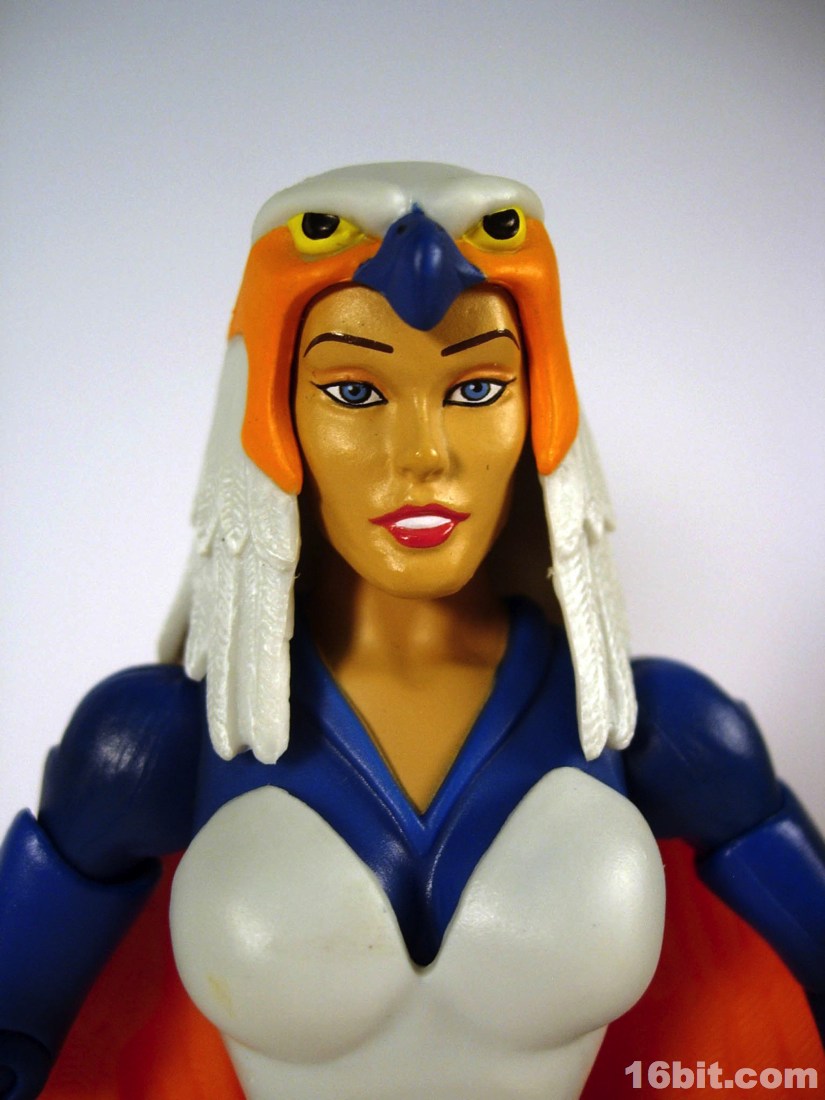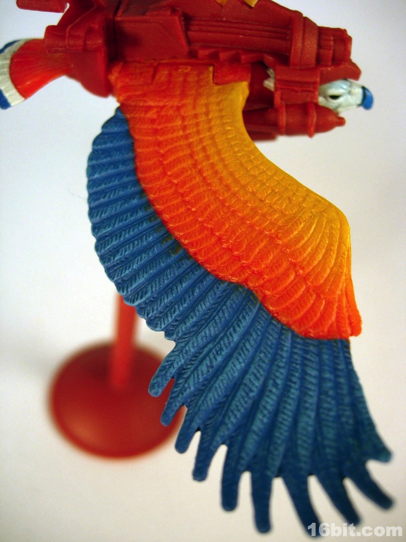 Mostly made of new parts, the Sorceress has a swell sculpt with tons of features which were the kind of things most toy fans would half-ass in the 1980s. Go ahead and take a look at bird toys from that era-- maybe you got a few feathers, and had to imagine the rest. The Four Horsemen sculpted dozens (if not hundreds) of feathers on this figure, with coloring similar to the original cartoon. Her articulation is good, but not great. The range of movement is pretty nice, but there are these strange wings which can get in the way. Granted, I don't have a better way of doing it, but she has these big pegs on the back of her shoulders where the wings fold over, and fall to display like in the pictures you see here. For a display piece, she's great. If you ever want her to do gesturing or combat, they tend to get in the way. While most figures in the line are pretty great no matter what you want to do with them, the Sorceress' functionality dictates her form on your shelf. You don't have as many options.