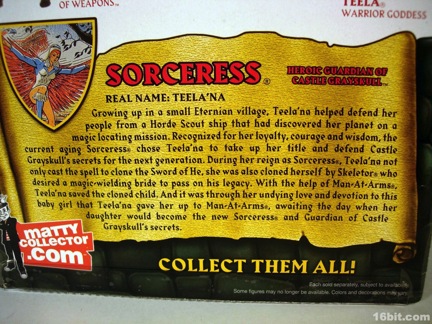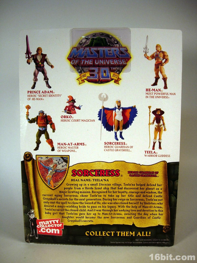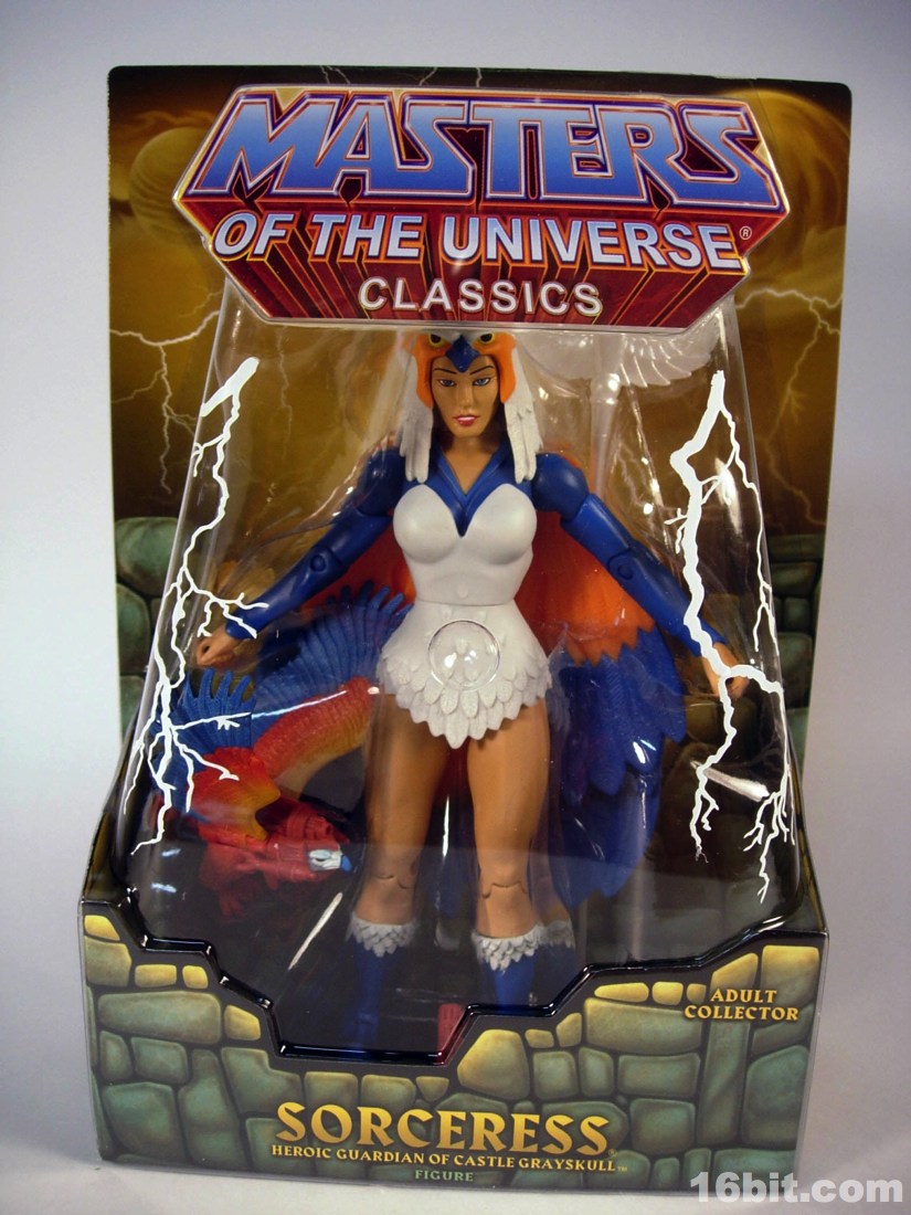 The original Sorceress barely made it out in the 1980s, despite being a key character in the cartoon. (Most folks know the He-Man and the Masters of the Universe cartoon as arguably the main and most important storyline of the franchise in the 1980s. Many hardcore fans will say it's the mini-comics, or other fiction. They are wrong.) Her appearance is not insignificant, and as important characters go she's probably not the first one you would want as a toy. You'd want Teela, because, well, hot redhead. Man-at-Arms and He-Man are pretty significant, and who doesn't love Orko and He-Man? It makes sense Mattel would hold on to a fairly significant character like the Sorceress until roughly the fifth year of the line, because it's important for something to look forward to. And she made my February quite exciting this year.