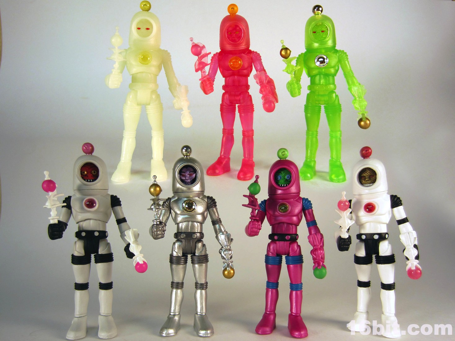 The edition size has, as far as I can tell, not been disclosed at this time but you can check here for availability. The fist Cosmic Creators set was $125, so at $65 I assume the run must be a smidgen larger. The figure is one of my favorites in the set, which (as a radical departure from the normal figures) is most welcome. $65 for 4 repaints isn't exactly a bargain, but even after getting roughly 50 different Outer Space Men I can't say I've ever regretted a single purchase. Each one is fun and I can honestly say that even at the price, I'd buy it again. Well, if I had to. One set is good, I don't need two. The only place they could have made these figures even more appealing was if elements actually could glow in the dark, as the names of the other characters tend to suggest.