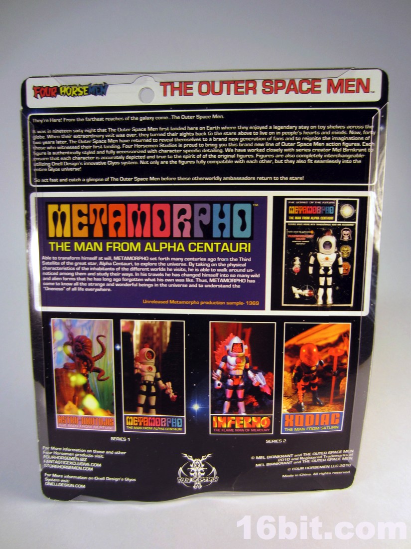 Item No.: n/a Manufacturer:Four Horsemen Includes:Staff, helmet, gun, arms, more figures Action Feature:n/a Retail:$65.00 (sold as a set with Xodiac, Inferno, and Astro-Nautilus) Availability: Summer 2012 Other: Brings the total to 7 Metamorphos, 8 if you count weapon variants