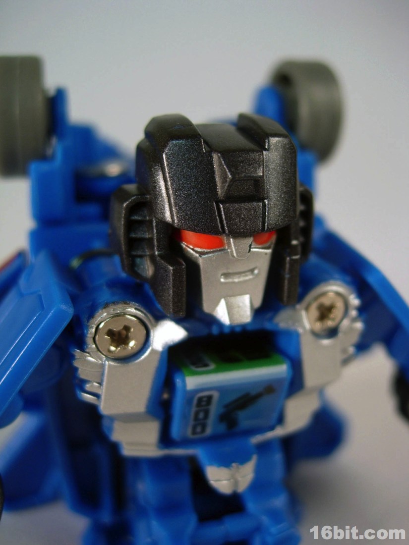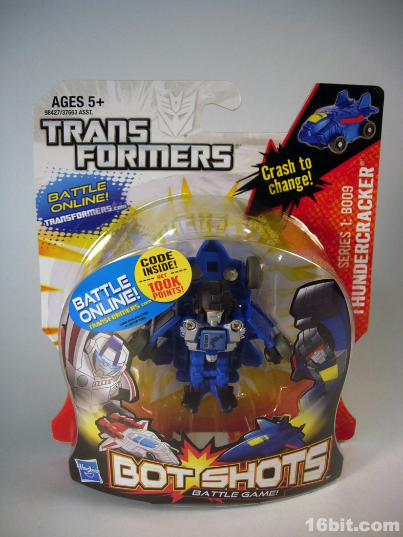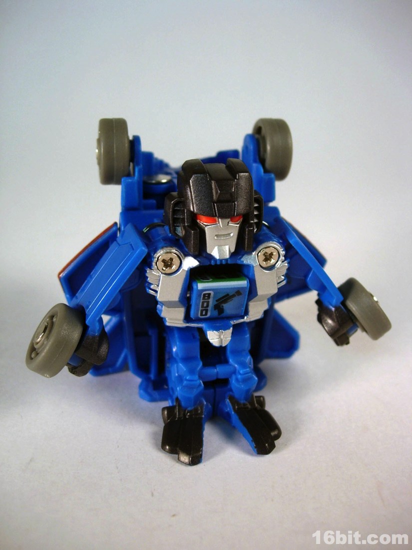 The mold is a little touchy so far, just hit the nose and it flips up into robot mode. It's simple, but that's what you want. The body has a little paint in robot mode, with a silver torso and black feet and hands against a mostly blue body. The head has a fair amount of paint including a nice silver color, a black metallic helmet, and bright red eyes. It's obviously Thundercracker, and it's clearly inspired by the 1984 original. On one hand, it's great and fun, giving you a new addition to your Decepticon air force. On another, it's a repaint, but while some people are tired of these I'm not. If I don't get a repaint of Starscream, I'm going to get disappointed. Now bring on Skywarp!