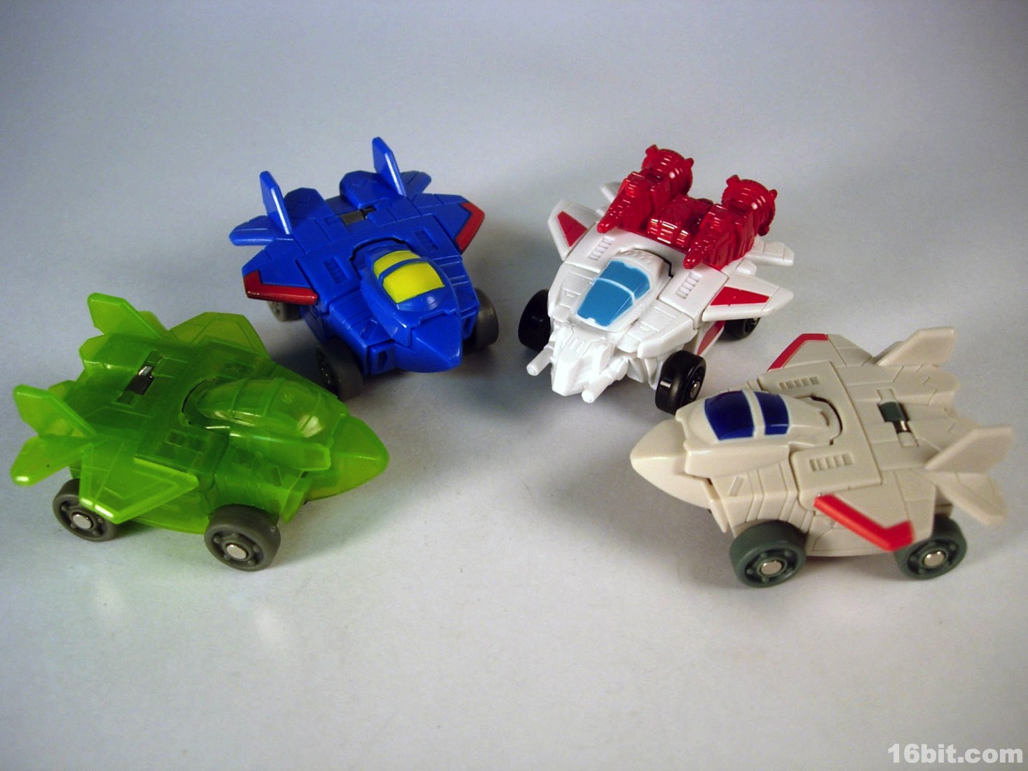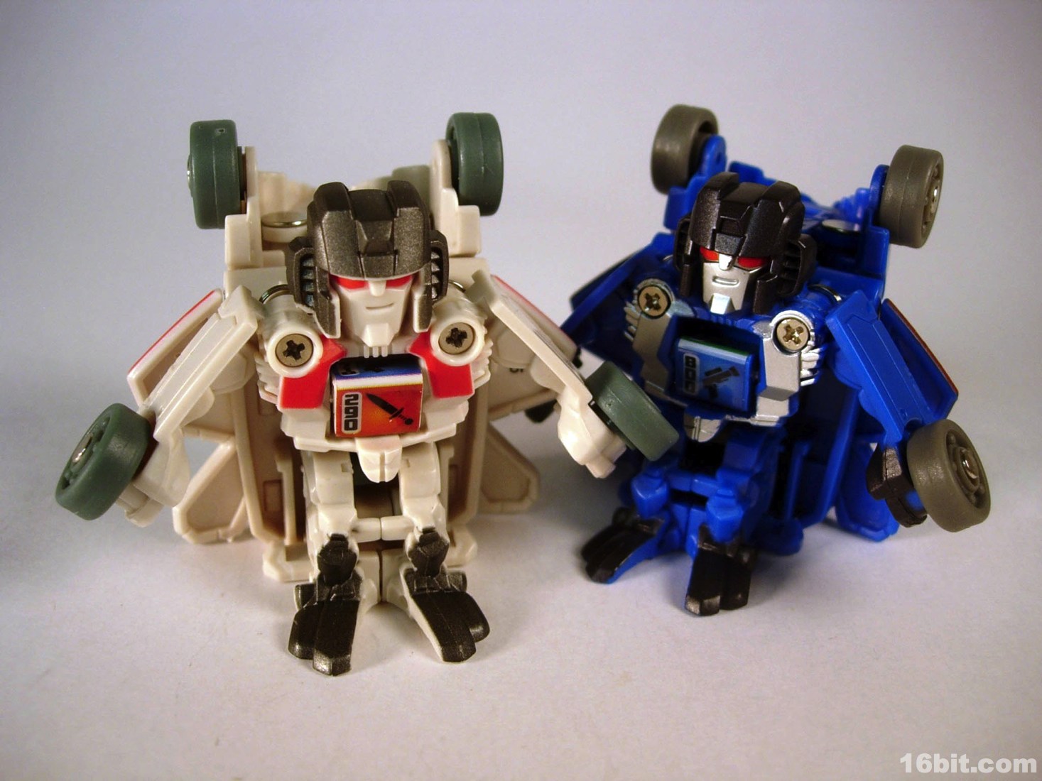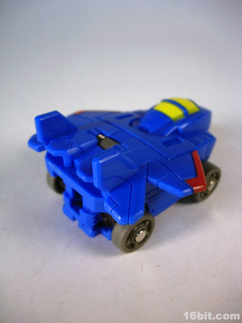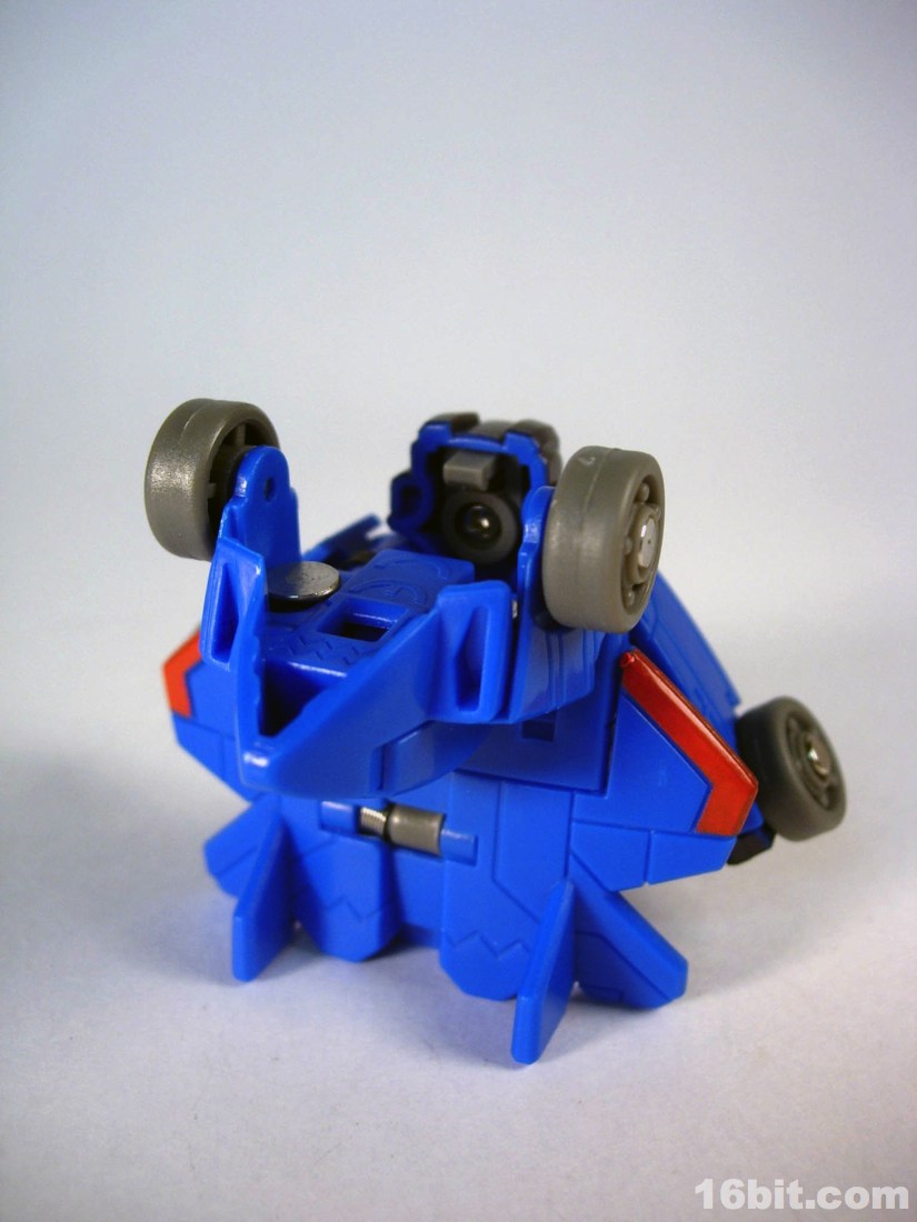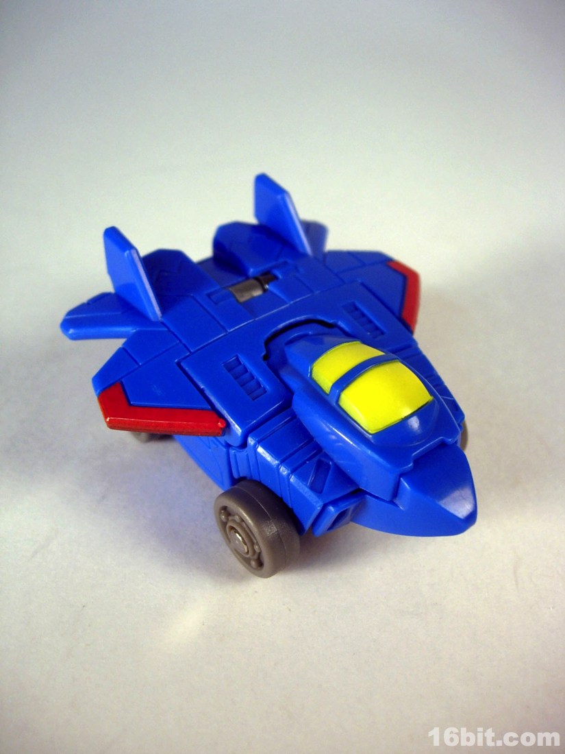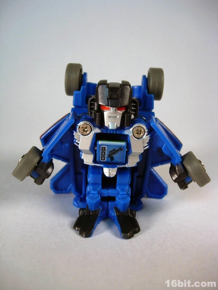 In jet mode, the toy is severely lacking in paint. The yellow cockpit pops nicely, and I appreciate the red stripe on the wing-- but that's all you get. No white or red stripes beyond that exist, and there are no Decepticon symbols anywhere to be seen. It's basically a car with wings, which is hard to avoid given the format of this kind of quasi-game mini-figure. If you're going to display this figure, do so in robot mode. Or just pay with it, it's fun.