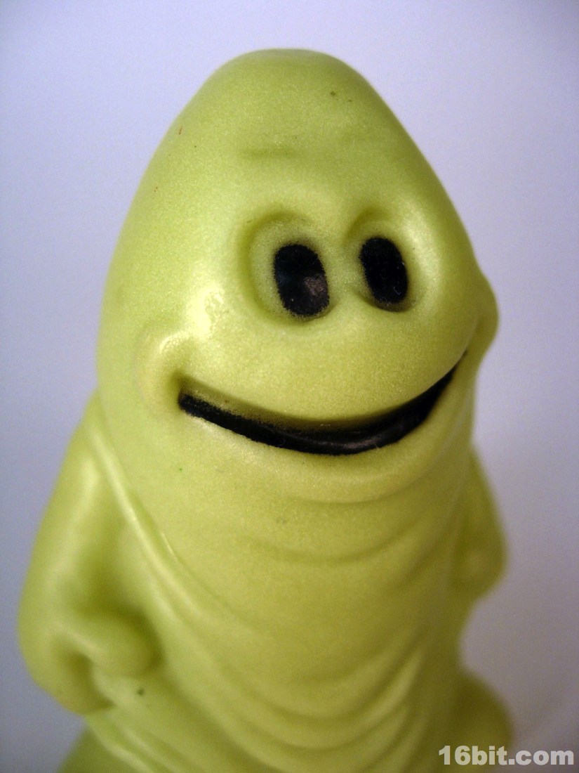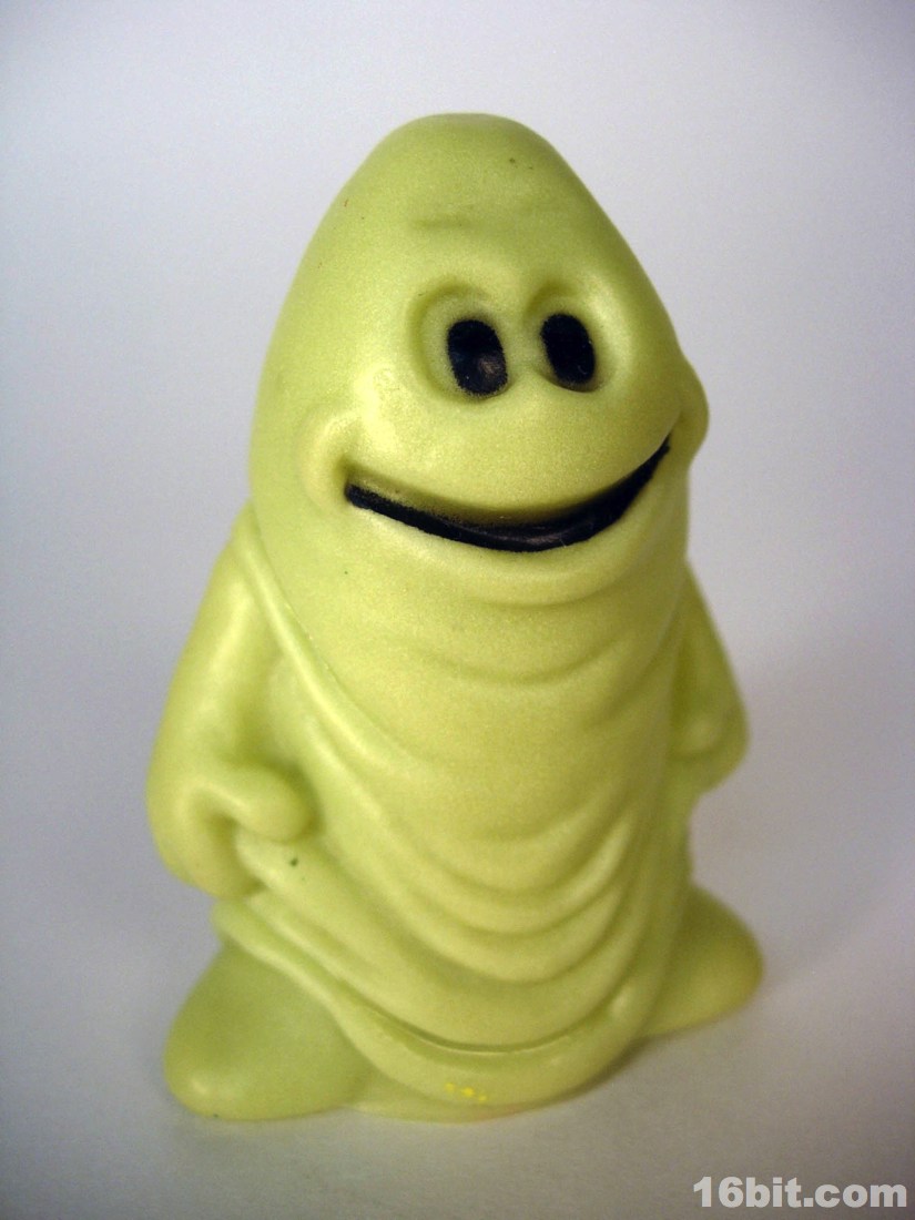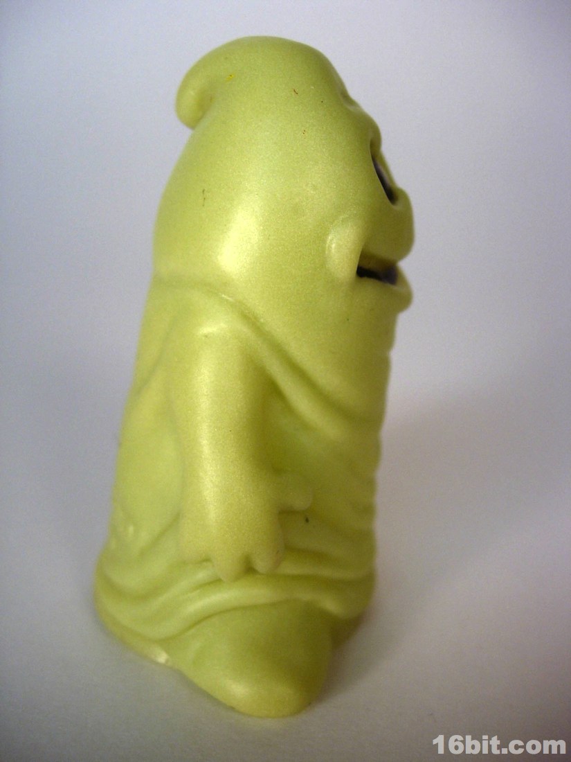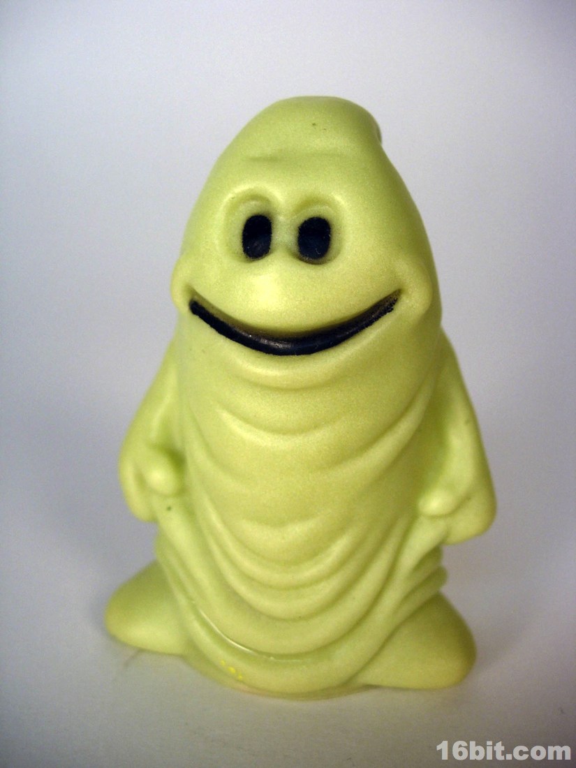 I remember actually really wanting to get this figure, which was part of a small, four-figure line. If memory serves (and it may not) the line kicked off with three ghosts without the embellishments, and later a fourth character "Catcherpillar" was introduced to chase down the redecorated ghosts. The other ghosts were a red ghost named Broozer, screaming with a bat on his body, and an orange shy one named "Boohoo" with a spade on his person, meaning he's allied with The Mighty Spector. (But seriously, if you ever find any of these for sale, let me know as i'd love to have a set.)