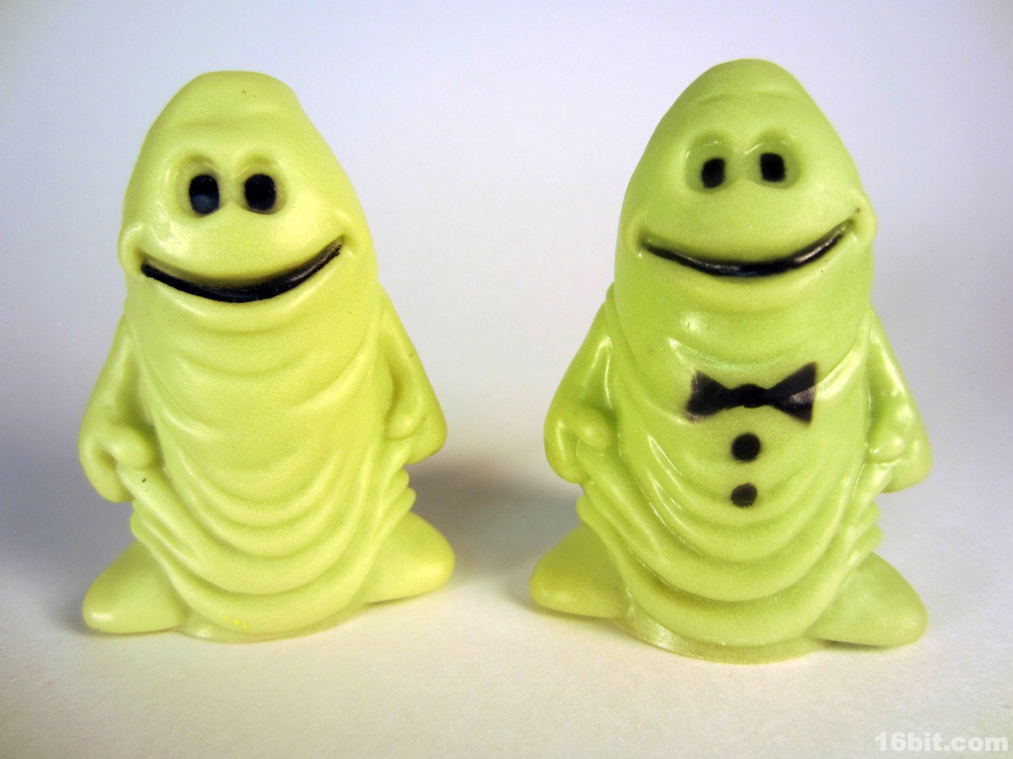 I got a lot of weird stuff as a kid, including this Baggs figure from a Glow Ghost line. It's from a company called Pineapple Ind., and the only real records you can find of this existing are two-page ad spreads in old Muppet Magazines. The company did a bunch of glow in the dark posters and weird novelties for kids, and I can't remember which craft store sold these but I got my Baggs figure from a Michael's or a Mosketal's in the mid-1980s. (I can't remember which one.) I know it was post-Ghostbusters because I saw this figure as an alternative to Kenner's Green Ghost figure. My figure had none of the extra chest deco-- the dots and the bowtie-- I remember seeing the pictures in the magazine as a kid with the dots after I got my dot-less one and I was surprised, this may have been the first "variation" I ever found. In the gallery below you'll see one with a bow tie which, if you can believe it, I found at a Goodwill store in June of 2012 for 25 cents and was the second one I've ever seen.