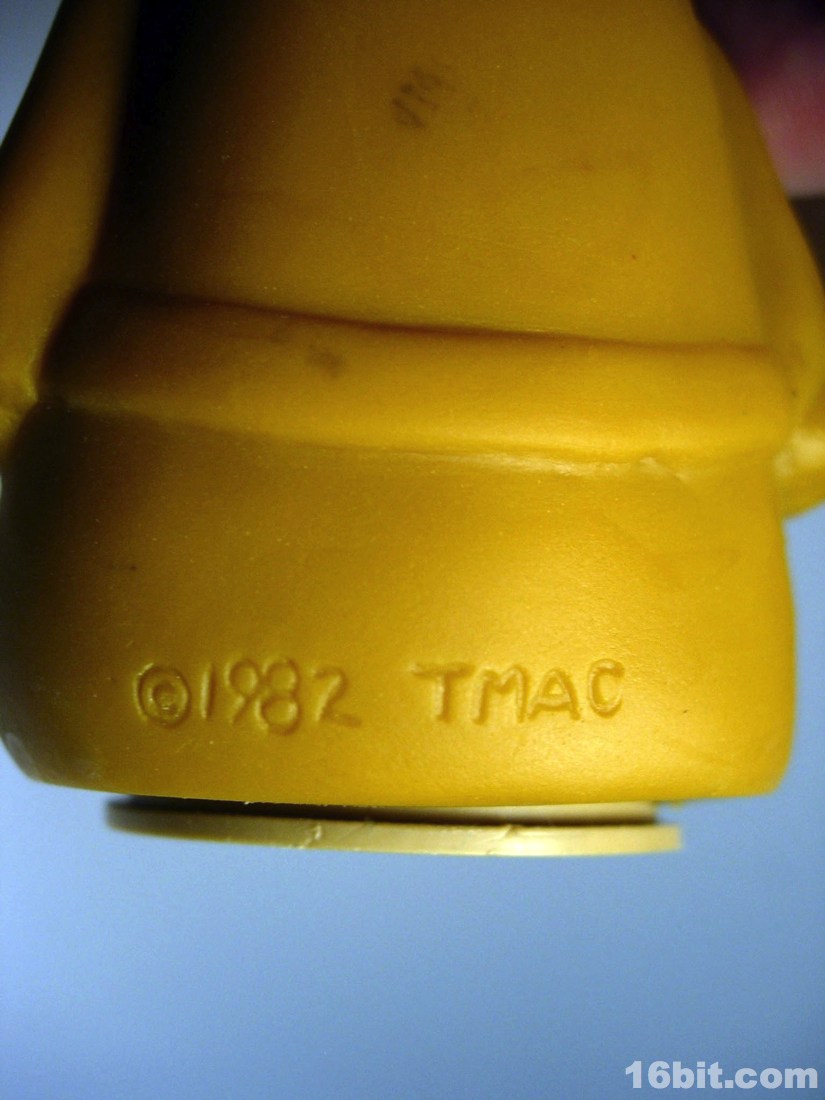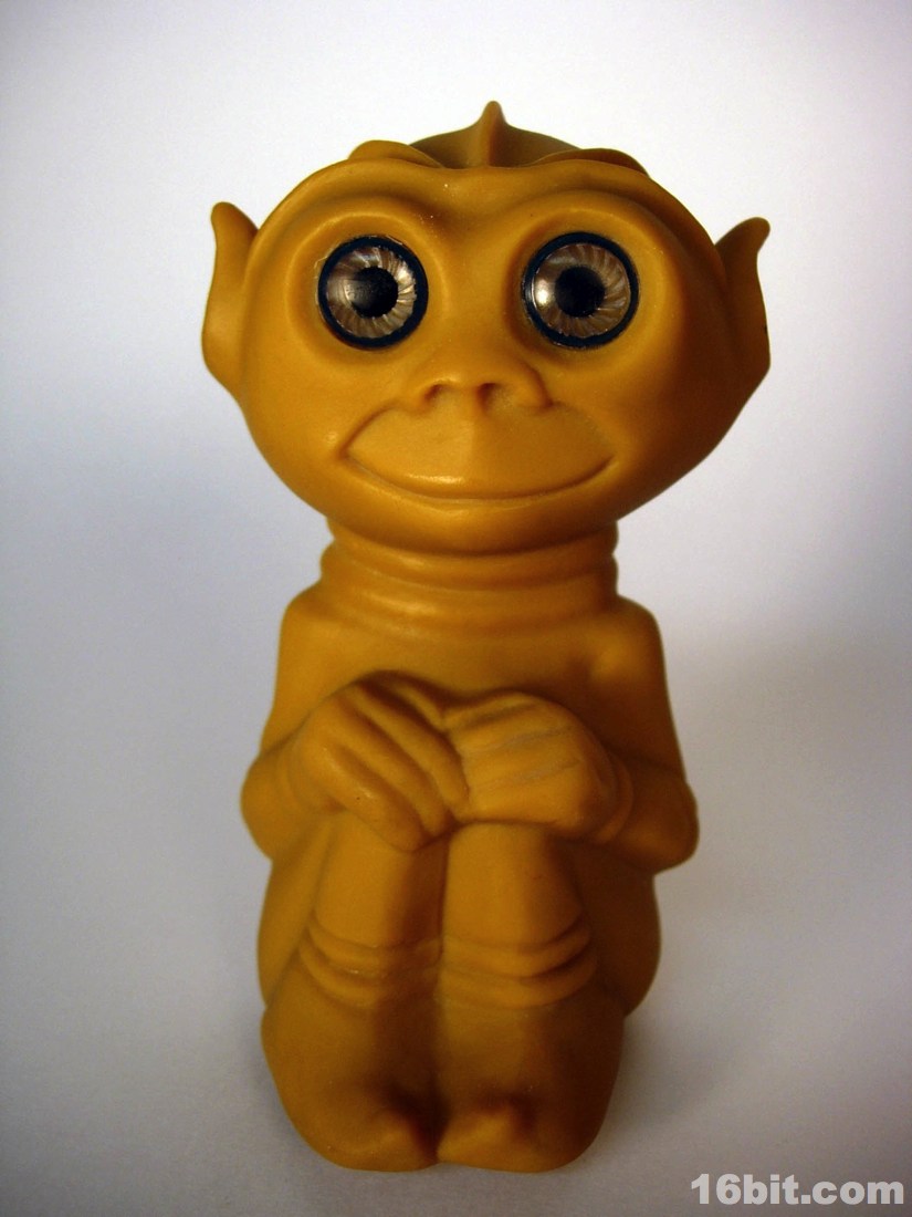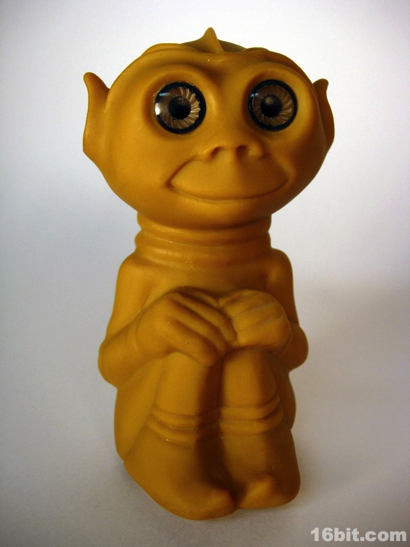 Remco, the manufacturer, had a reputation as being the king of the knock-off toy companies for years. It's not exactly a knock-off, but it's clearly a toy which owes much of its existence to the appeal of E.T. The Extraterrestrial which suffered greatly as licensed products were late to the market. The toy's packaging boasts the name "Mel Appel," which, as far as my limited research finds, is some dude who worked on dolls or something and presumably TMAC is The Mel Appel Company. Sadly he doesn't have the web presence of another Mel who worked on a great toy line, Mel Birnkrant. Because it drove me nuts looking for more information on these: they read "TMAC 1982" on their bottoms, are hollow, and have a plug in their, um, butts. The plug itself reads "CAPLUGS EC-20" with the numbers "NAS-813-20" and I have no idea what it means, but hopefully my typing it here will help someone who found it at a flea market ID it. You can read more about them on this blog and even see a rare carded sample here.
