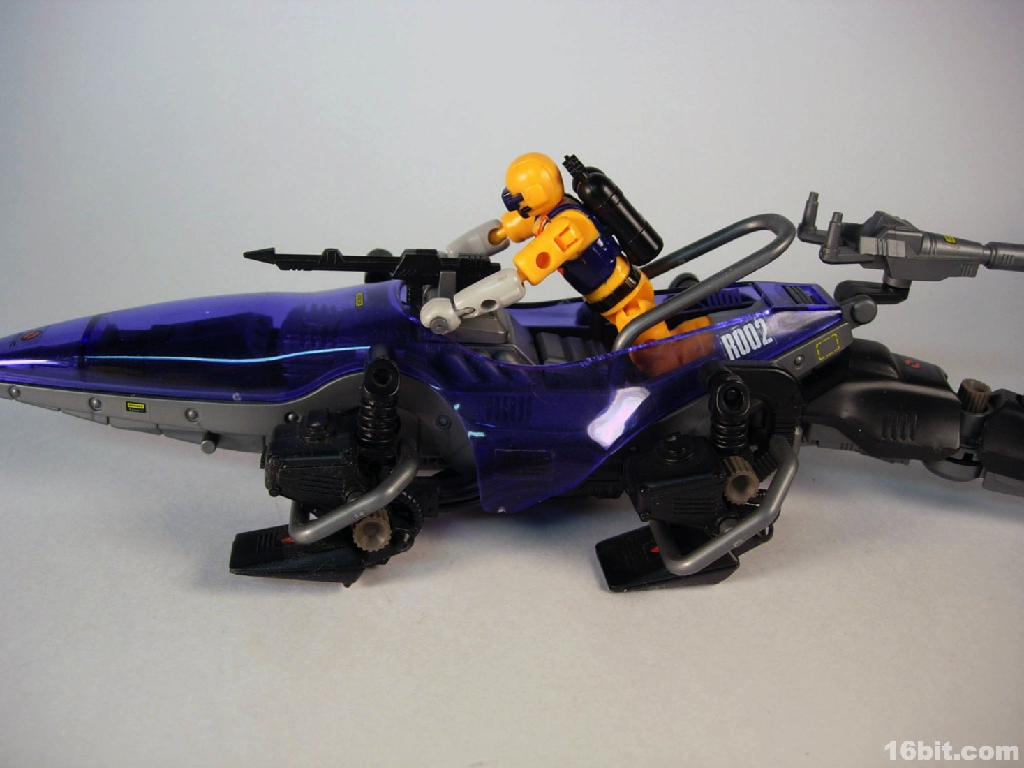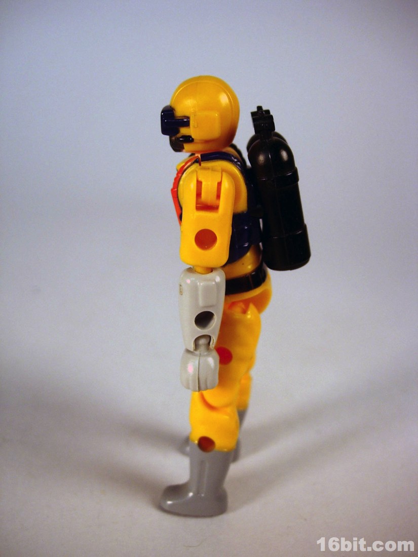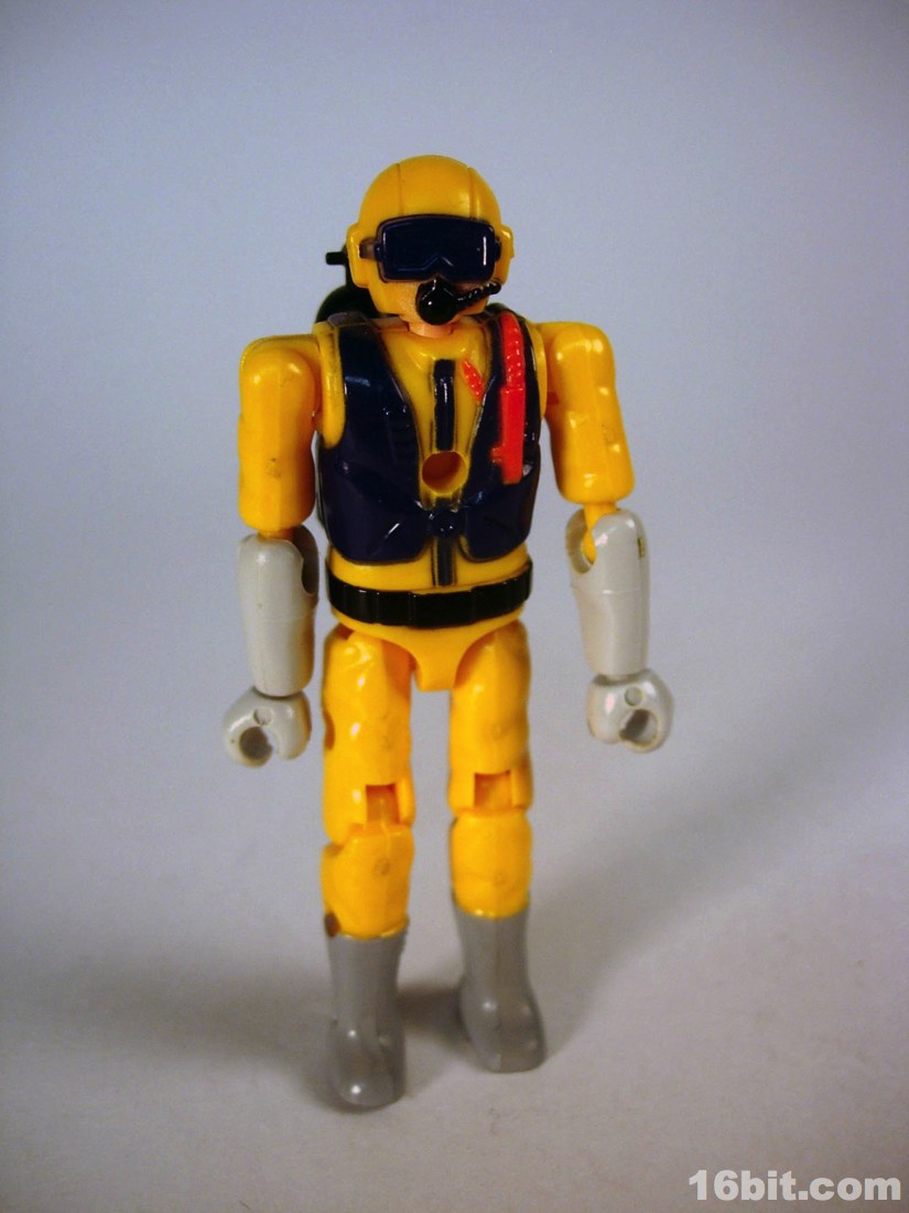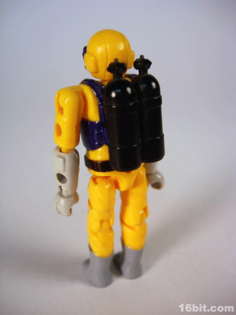 None of these sets got proper US distribution, but some hobby shops had a few and Neptune in particular got a reissue in the late 2000s. The nameless driver has articulated ball-jointed wrists-- real ball-and-socket joints-- plus has numerous places to plug in accessories, were there accessories included beyond a SCUBA tank which plugs into his back. He wears a breathing mask, has a bright yellowish orange suit with grey gloves and boots. It may not look like much in 2012, but let me tell you this thing was amazing when you compared him to the likes of Matt Trakker or Turret. In 1988, a tiny figure having jointed knees and one color of paint on its head was really something. This thing had friggin' ball joints and really feels ahead of its time. It's a crying shame nobody brought these over here because the figure alone is pretty amazing.