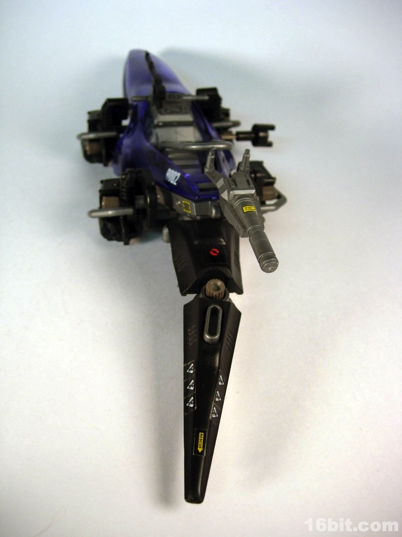 When you wind the toy up, it lumbers forward and the tail sweeps a bit. I have a feeling that most children of the 1980s found wind-up motors a bit antiquated, even larger Zoids had batteries back then. I view it as an underrated form of technology because batteries are sort of wasteful, and I love mechanical toys that don't have a strong chance of becoming corroded if I forget to take out the power unit. I have to say the sculpt is impressive too, with lots of smooth panels and some sculpted bolts giving it a "futuristic" look that I think still holds to this day. I wouldn't have minded things like eyes or a mouth on the walking machine part, but well, they tried something different and I dig it.