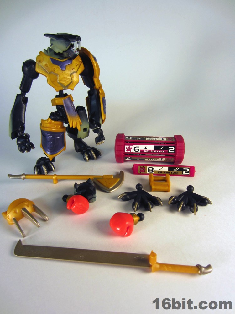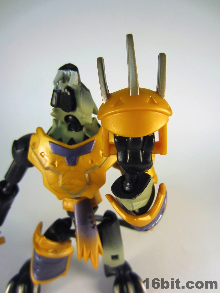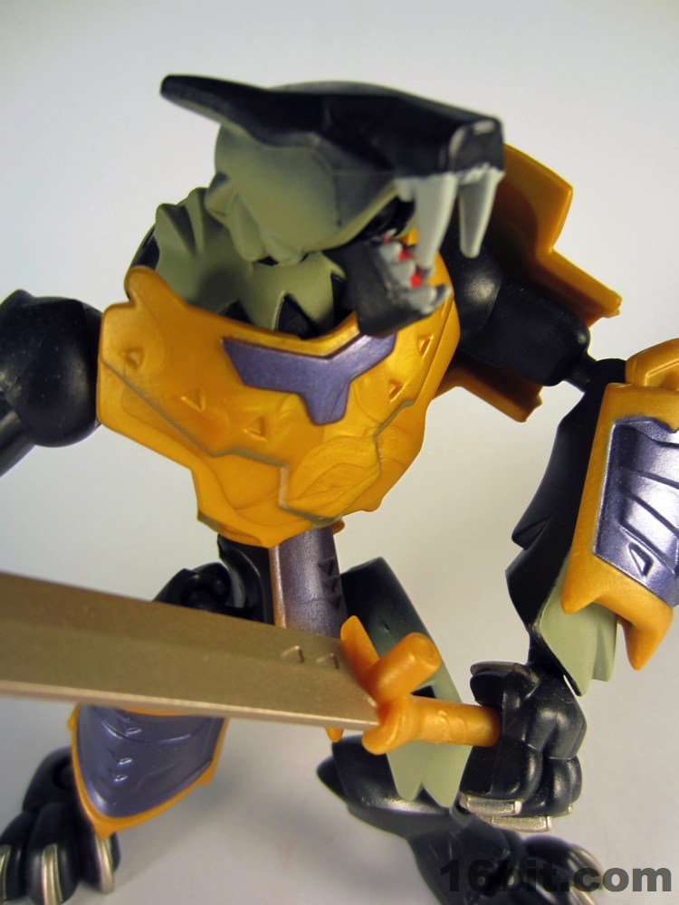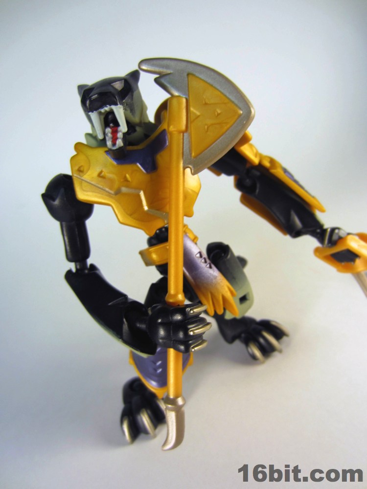 Measuring about 6-inches tall, this cat-like warrior features snap-on armor, boxing gloves, an alternate head, three weapons, and the ability to walk on all fours if you're so inclined. There are alternate paws as well. And this thing was about ten bucks-- or if you lucked out at certain Walmarts in the summer of 2004, $1. (I lucked out, big time.) The creature is based on an upsized Stikfas-like system, which features an abundance of articulation and customization possibilities. You have to pop the figure together yourself, but that's part of the fun. After Bionicle and Gundam had some success in US stores, it makes sense Hasbro would evolve Stikfas into something more toylike. The line suffered from little to no publicity, I recall no marketing beyond a free comic book handed out at Comic-Con, at which point the line was pretty much over.