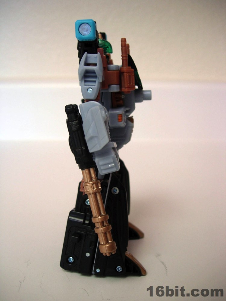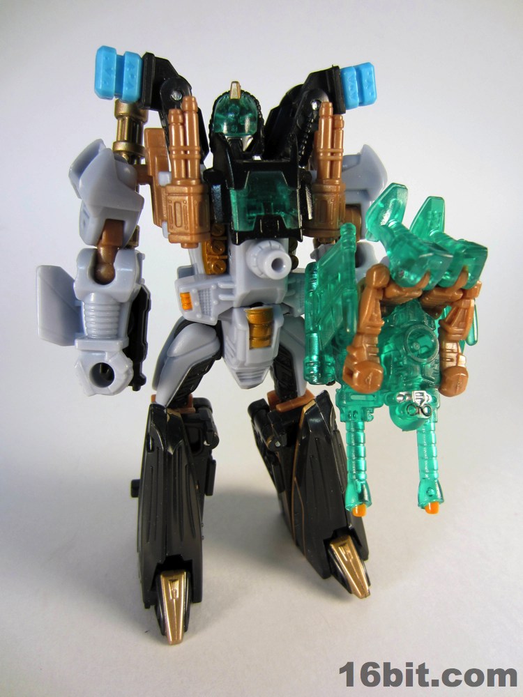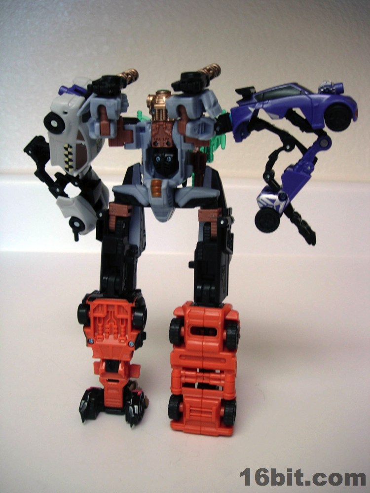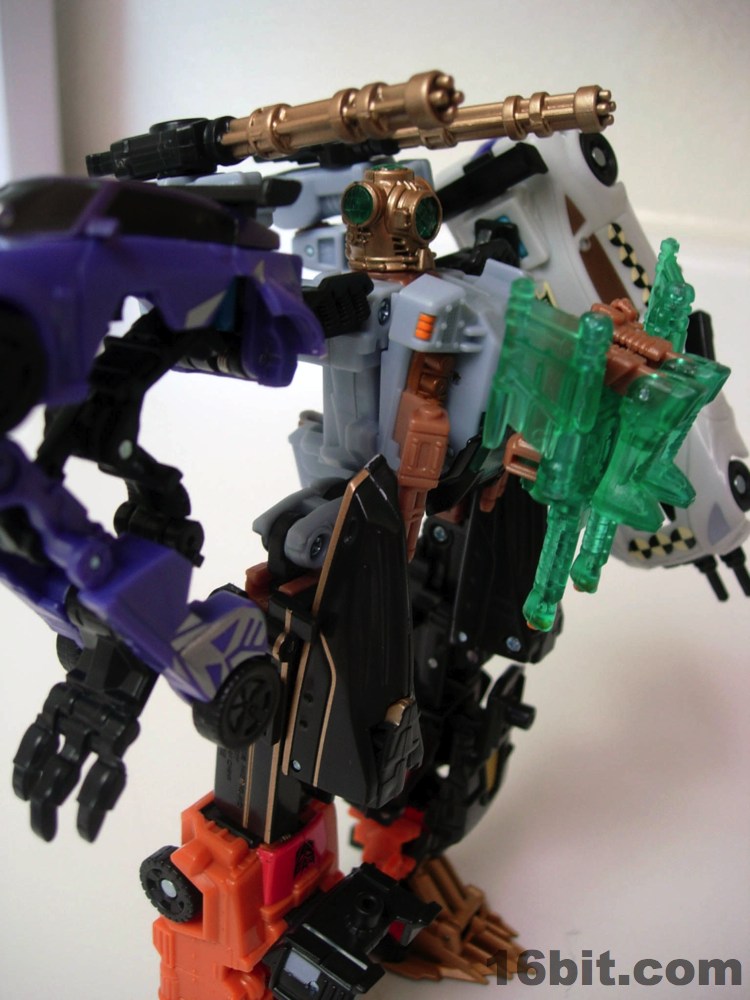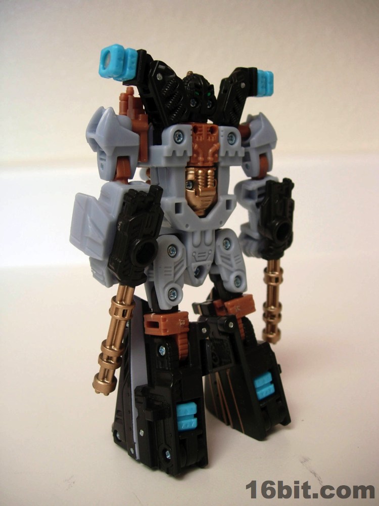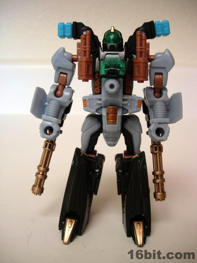 The robot ain't bad. It's chunky and solid, it holds together well and in the year or so since I got it it's never fallen apart. The joints really do stay as they should, and this one makes a better toy for that very reason. The helmet looks nifty, and the toy's big fists might remind you of some of the better Energon/Cybertron releases. You'll probably like this one a bunch if you dug Energon Strongarm from 2003. I mean this as a compliment, I was really keen on those guys.
