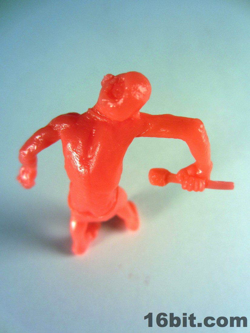 The tallest figure in the set is the Rockabilly Zombie at roughly 2 1/20inches high. He's in pretty good shape, minus the lost arm. Sure, his shirt has a tear in the back but he's still got his wallet chain, fancy-pants boots, and toolish skinny jeans topped by hair that would even impress Conan O'Brien. He has a little skull on his belt buckle and in many respects feels like the signature figure in the set.
