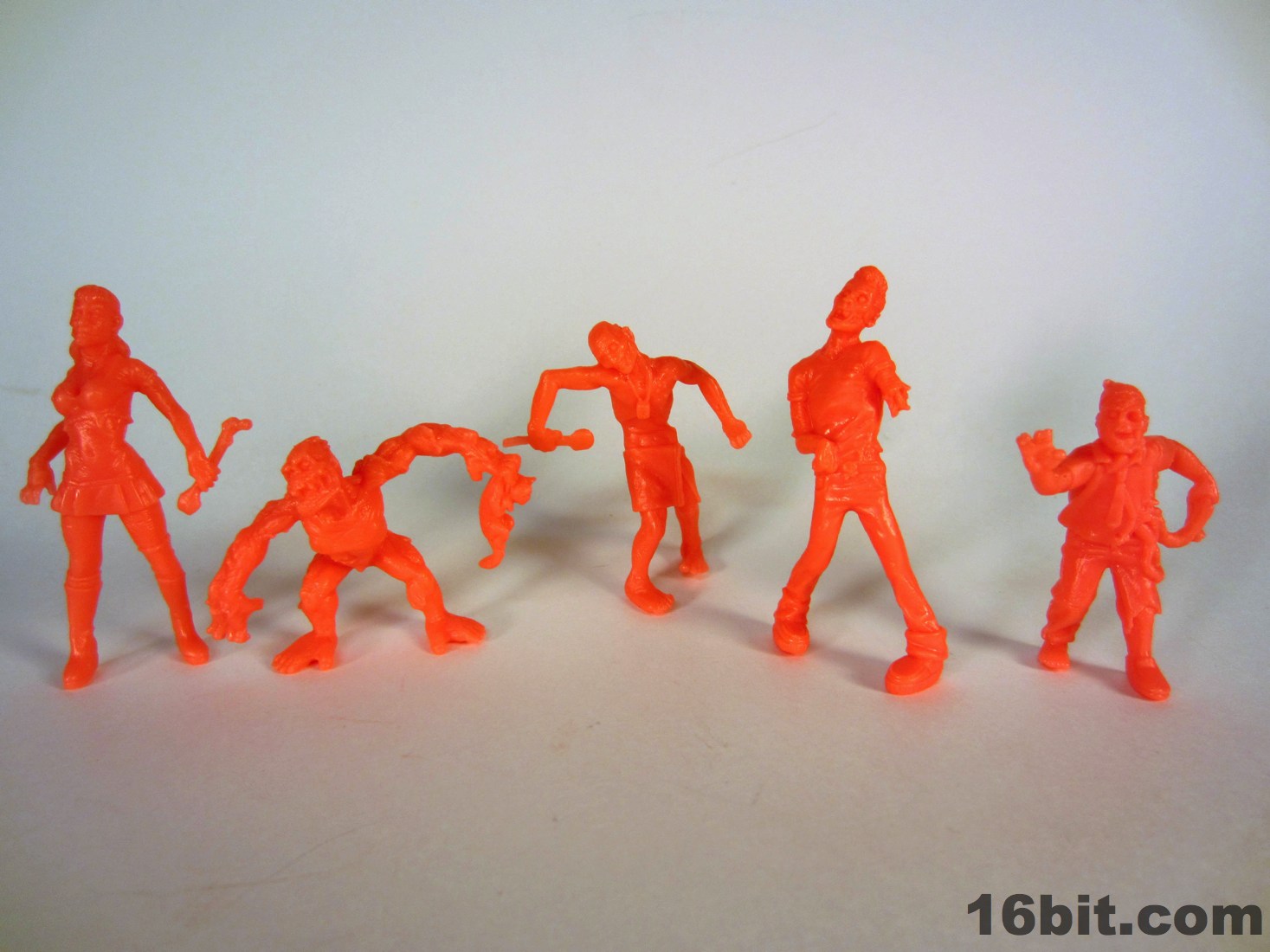 I saw Zillions of Mutated Bodies Infecting Everyone (ZOMBIE) Series 1 Neon Orange Minifigures on eBay and bought it, because October Toys does good work and I really liked OMFG. (And based on the photos I thought they might be flesh labeled wrong. Nope!) Admittedly, I'm not a horror/zombie guy, but I do like monsters and this kind of product so I bit. Prior to this quintet of brains-munchers, there were a few hand-cast or otherwise low-run figures which you can't have, because the run is too low. Ah well. But you can get these, in many colors, from numerous sellers, at pretty good prices. I picked up this set on eBay for $5 plus $2.50 shipping. It was labeled orange, the manufacturer says they're neon orange, but dang if they don't seem red to me. Talking to numerous major toy manufacturers, I suggest you take a look at smaller low-run figures like these because Chinese manufacturing prices are skyrocketing. While no less impressive than larger toys, particularly large designer toys, the ZOMBIE figures are certainly much cheaper and appropriately ugly.