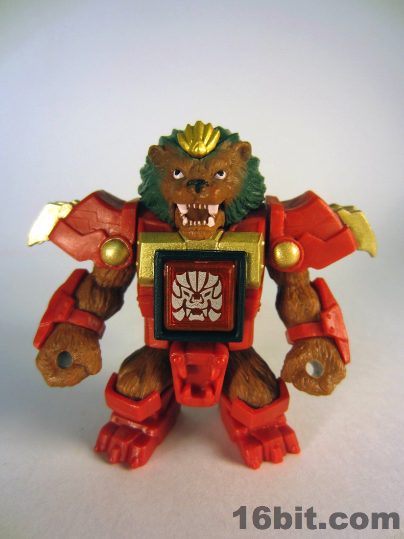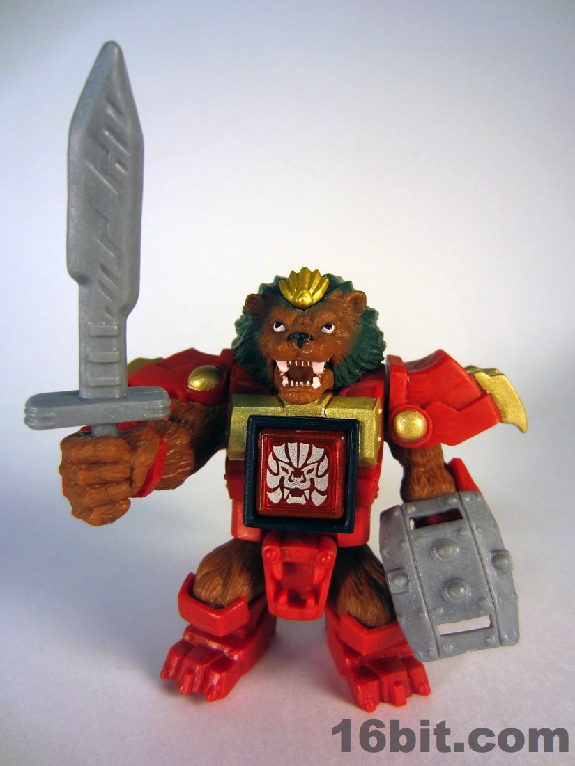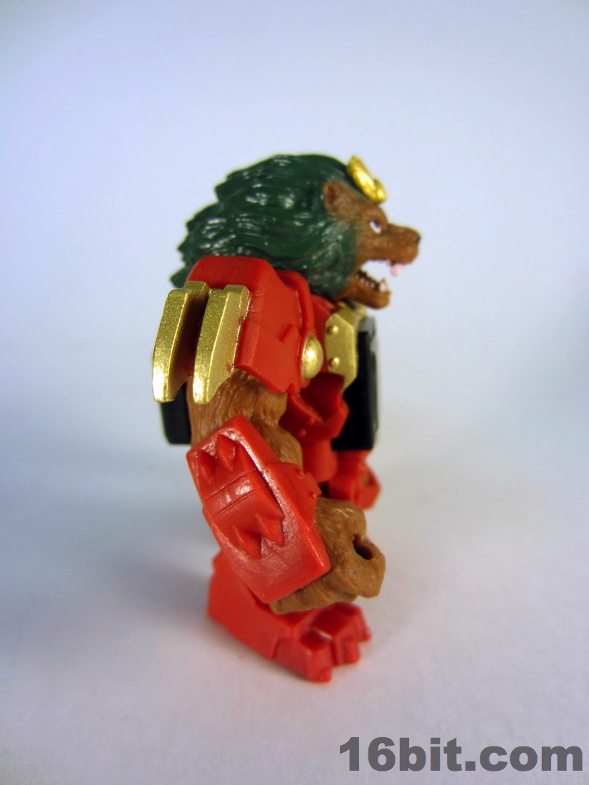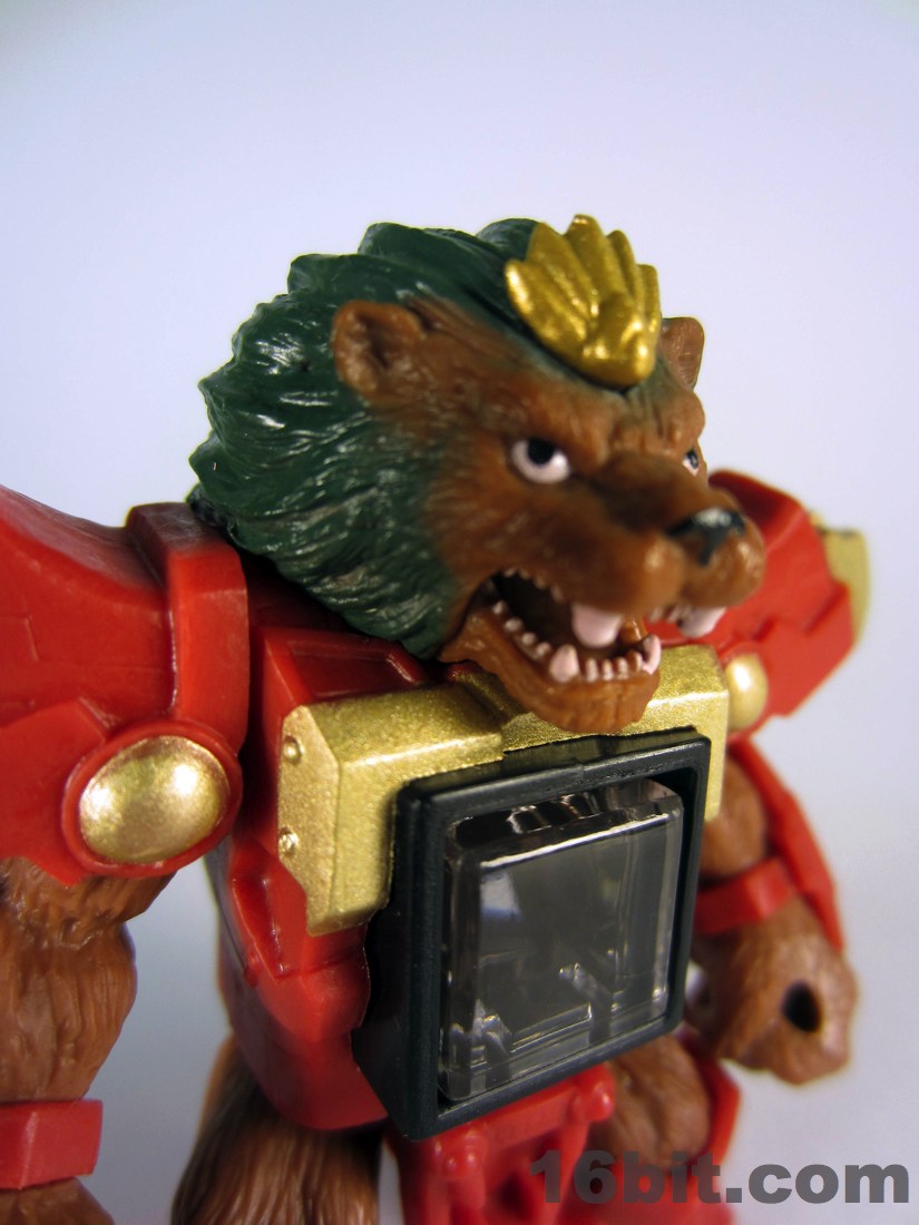 Of the figures in the line, this may be my least favorite sculpt of the first wave despite having a toothy urinal on his crotch. Positioned as the hero, Raioga brings in some hallmarks of the old line, like a crazy green mane and bright red armor with gold highlights, while adding some new things. Like what appears to be a toothy urinal where his crotch goes. The head sculpt has what appears to be an articulated jaw, but it isn't-- only the arms and legs can move, and they're also removable and swappable with other figures. The sword is a very tight fit in his closed fist, the shield fits easily, and the eyes tend to be a little wonky with one looking up and the other not looking up. Aside from the eye, the paint seems to be pretty clean and on par with most modern toy figures. My only real complaint about the deco is that they didn't bother to mix it up and change up the armor to be blue or white or really anything else to make buying the figure worthwhile.