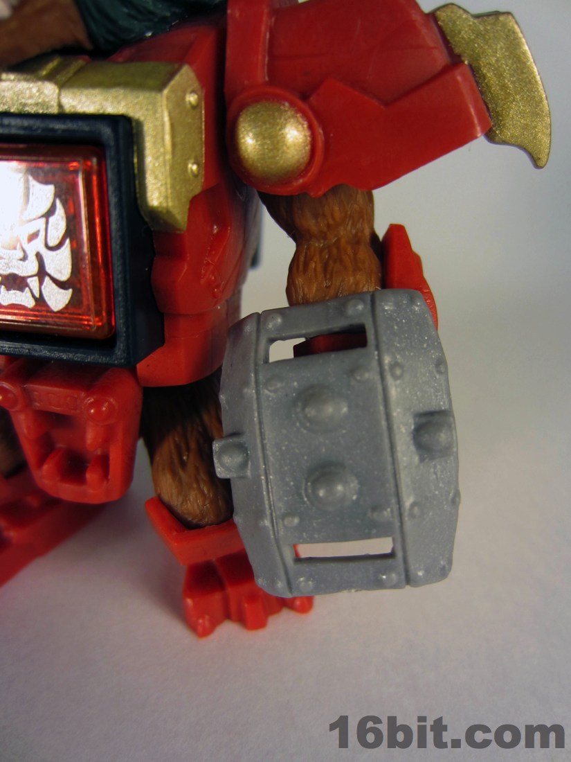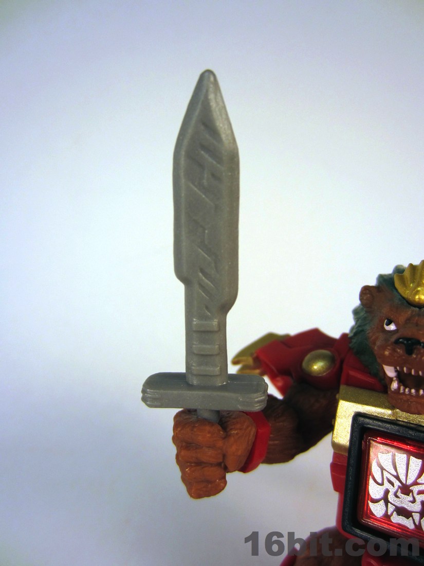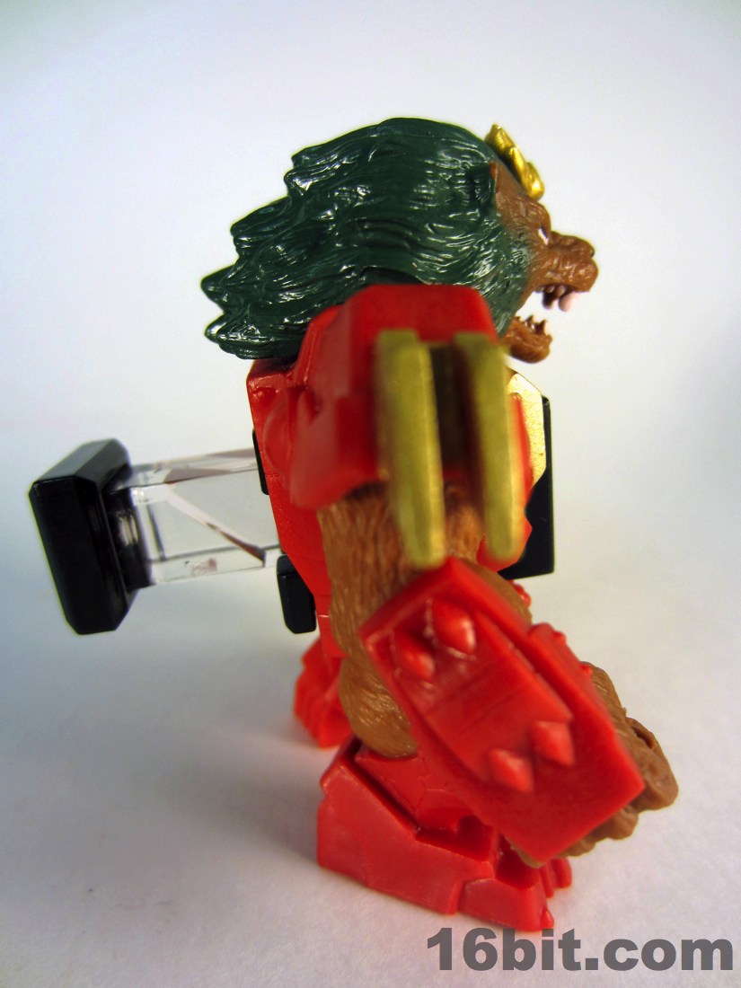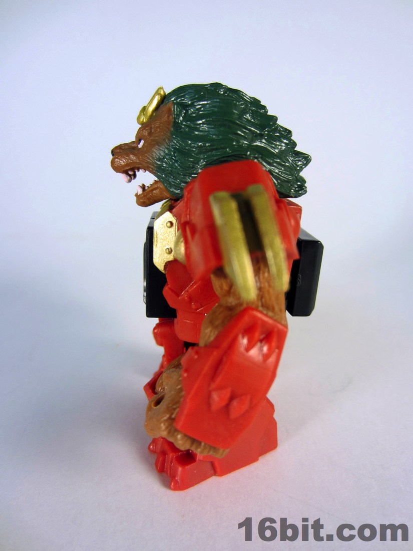 Of the figures in the line, this may be my least favorite sculpt of the first wave despite having a toothy urinal on his crotch. Positioned as the hero, Raioga brings in some hallmarks of the old line, like a crazy green mane and bright red armor with gold highlights, while adding some new things. Like what appears to be a toothy urinal where his crotch goes. The head sculpt has what appears to be an articulated jaw, but it isn't-- only the arms and legs can move, and they're also removable and swappable with other figures. The sword is a very tight fit in his closed fist, the shield fits easily, and the eyes tend to be a little wonky with one looking up and the other not looking up. Aside from the eye, the paint seems to be pretty clean and on par with most modern toy figures. My only real complaint about the deco is that they didn't bother to mix it up and change up the armor to be blue or white or really anything else to make buying the figure worthwhile.