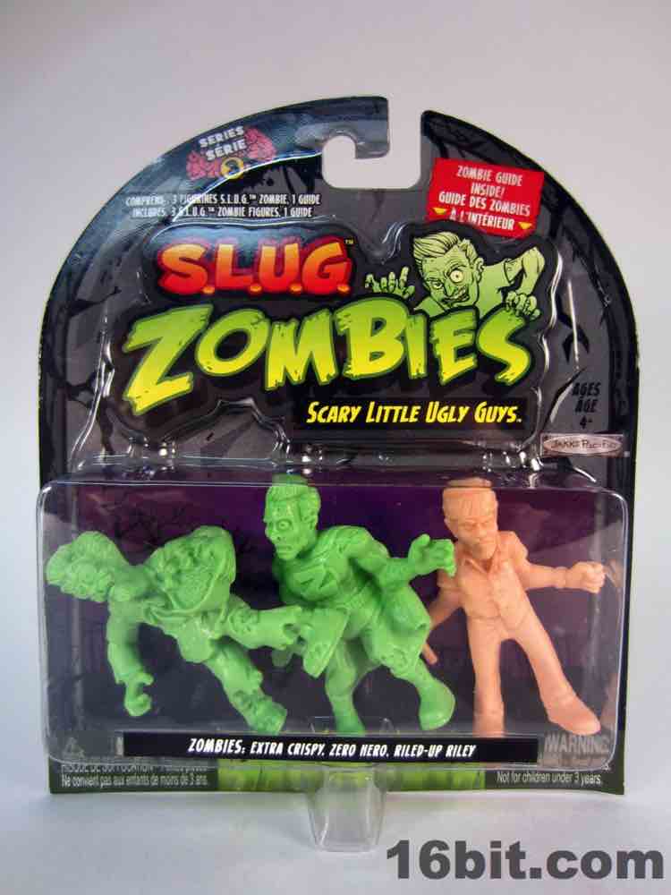 Jakks Pacific S.L.U.G. Zombies Extra Crispy, Zero Hero, Riled-Up Riley Minifigures 3-PackMore S.L.U.G. Zombies! The latest descendant of M.U.S.C.L.E. captures the spirit nicely and with 100 announced figures (not all of which are out yet), it's a meaty line. This series 3 set includes Extra Crispy, Zero Hero, Riled-Up Riley and a poster for your amusement.