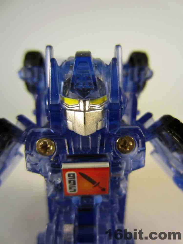 So how many times will Hasbro sell you this Optimus Prime mold? Between this clear blue Super Bot, the single Launcher, the Matrix pack launcher, Nemesis Prime, and the standard carded version, I've got five. Two of those five are skippable, but this is one I'd suggest you actually go get. Optimus Prime, as far as I know, is rarely (or never) rendered in clear blue plastic and it's a real gem to see. The painted silver face plate and yellow eyes look great on the head, although the whole thing being blue is a little bizarre to take in.