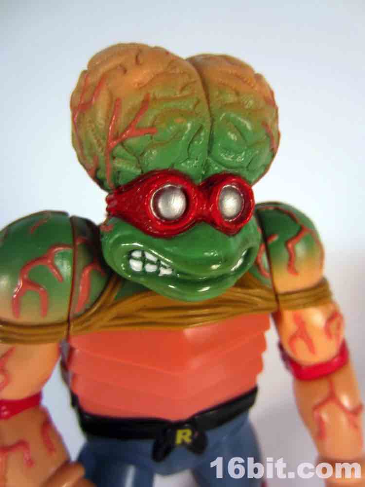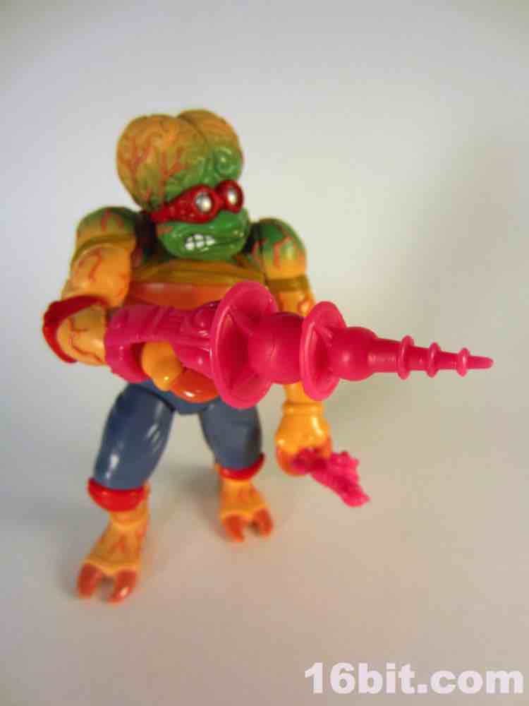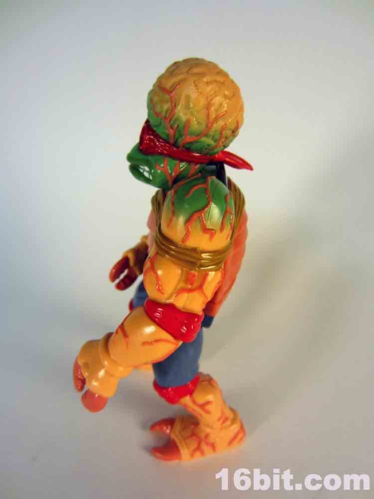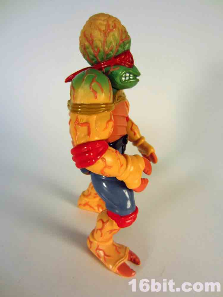 Looking like a cross between Urkel and any given giant brain monster, the coloring doesn't make a lick of sense. Most Mutant toys are blue with a little red, this one has green-- which makes sense-- but why so much orange? The Mutant in the movie is slathered in orange belts and pieces, so why not Raph as the red Turtle? While none of the figures are completely true to the movie, or the Turtles, that's to be expected. This one turns up the weirdness a notch by not going out of the way to really claim elements of either in a lot of places, resulting in what looks like Raphael in a bad home-made Mutant costume rather than the slightly more polished and potentially authentic look to the bulk of the other 7 figures in this short-liveed line.