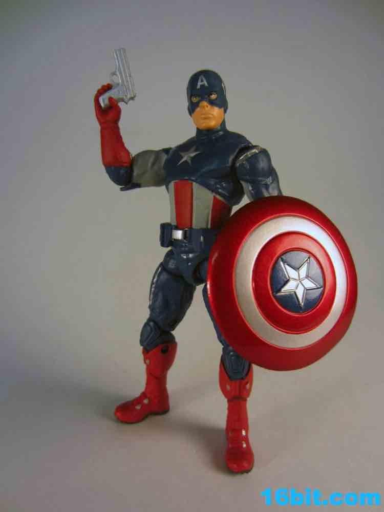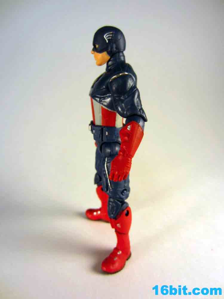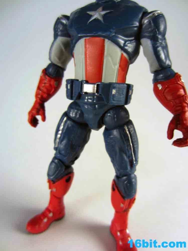 So that's what you hardcore fans probably wanted to know... but already know. So what about the schmucks like me who just want a decent Steve Rogers figure? This one's pretty good, because he looks good and has a shield. He also has a strange level of articulation, with a ton of unique leg joints but no wrists, no ankles, and no waist. 13 total joints await you, and they do a pretty good job of keeping the sculpt nice and clean. A waist joint would have been nice, I admit, I was actually hoping it might have a spring-loaded shield-smashing action. (For the record, the only figure with any spring-loaded gimmick in the set is Hulk.)