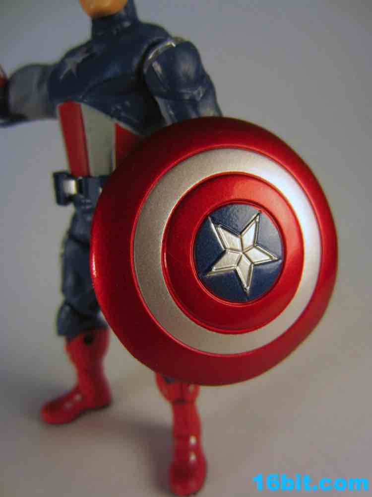 The figure has a decent likeness, with a strong chin and a decent mask which, together, is a likable approximation of movie star and Doug Loves Movies guest Chris Evans. (Seriously, listen to the episode, it's a ton of fun and has Leonard Maltin and Adam Scott.) The gun is silver, and the shield has some added deco which makes it look great. It's amazing what a little black paint on the straps can do, but the metallic red, white, and blue front of the shield make it extra awesome.