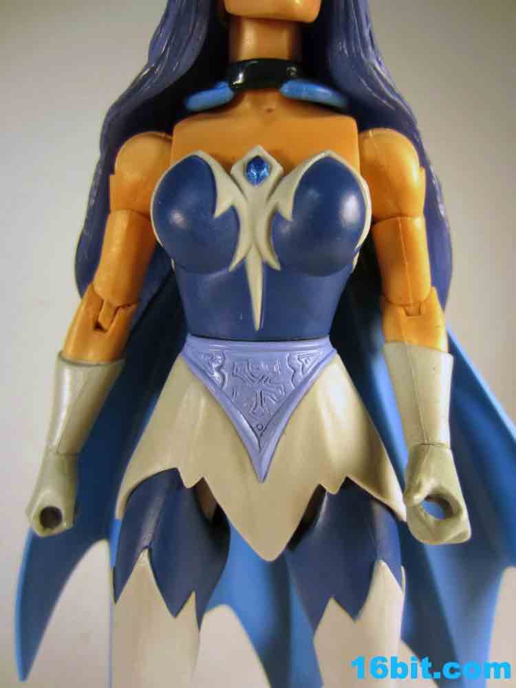 The sculpt is pretty great, with a fair amount of personality and a new costume. Mrs. 16bit mentioned that Frosta had a fairly ornate design sculpted on her crotch, and indeed she does. THe whole outfit is largely pretty simple, and the overall design and sculpt is pretty excellent. The execution is also good, but suffers a recurring problem of swapped limbs. The forearms look a smidgen off, and it turns out that most samples were swapped. Odd, indeed, but not without precedent. You can find numerous tutorials (and videos) showing how to swap them back with hot water or a hair dryer, if you're so inclined. As of when I write this I'm not sure if it bugs me enough to change it... right or wrong, it always feels weird changing the figure from its factory-delivered state.