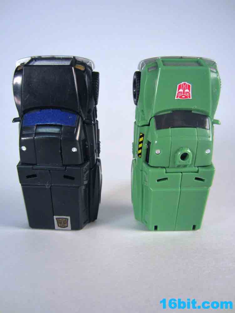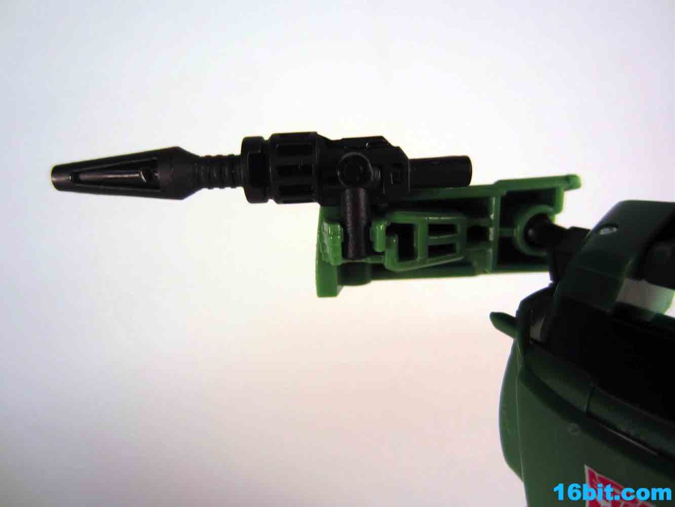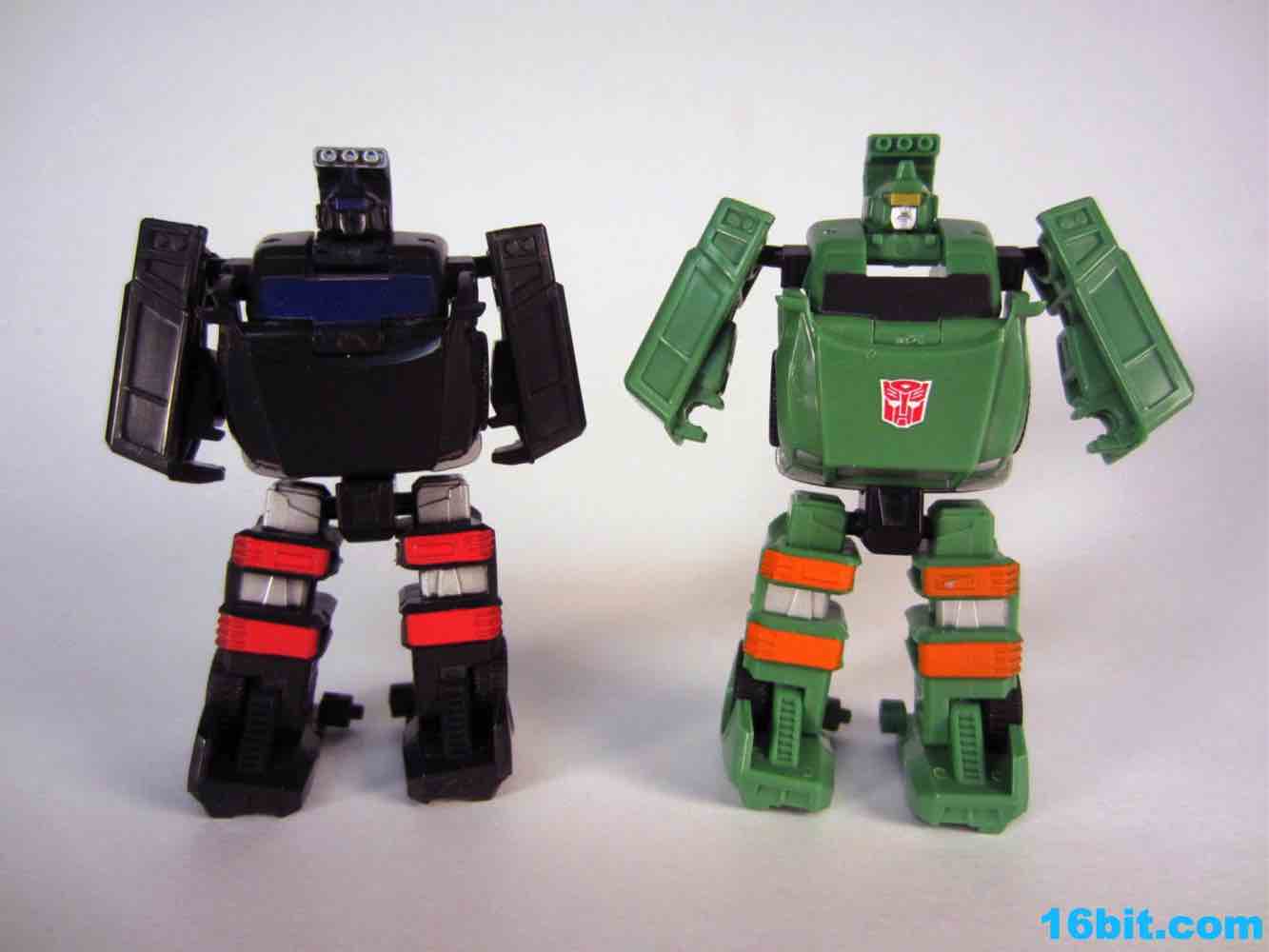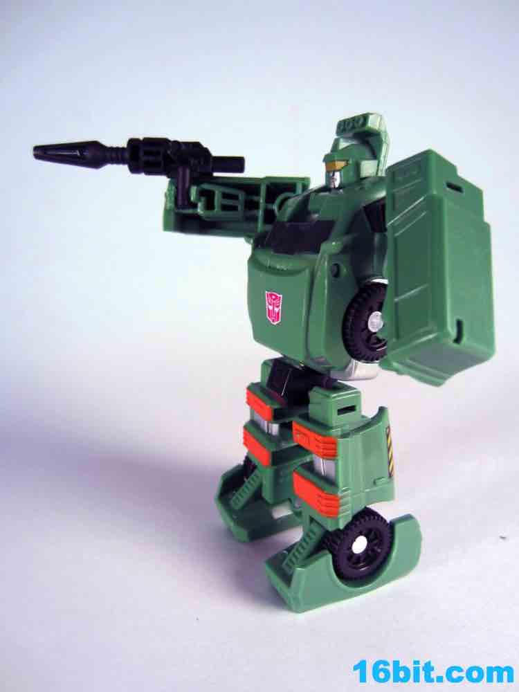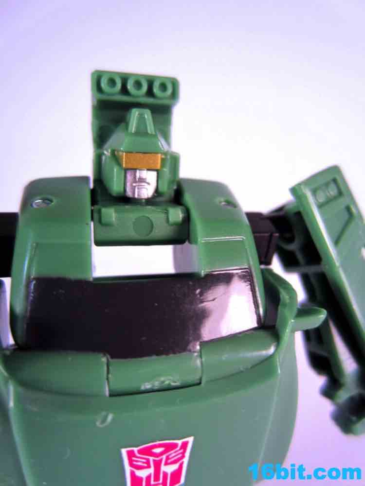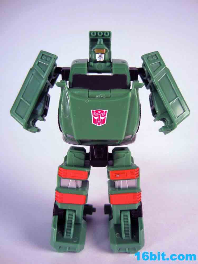 The stocky robot is pretty much the same as Trailcutter with tweaked hands and a hole in the back of his head. The enhanced deco brings a little more detail out, as the green highlights it successes and flaws quite well. For example, there's a lot of sculpted detail on the feet. There are also unpainted windows. The bright red Autobot symbol is always welcome, and it stands out better than the black stickers from the RTS sub-line.