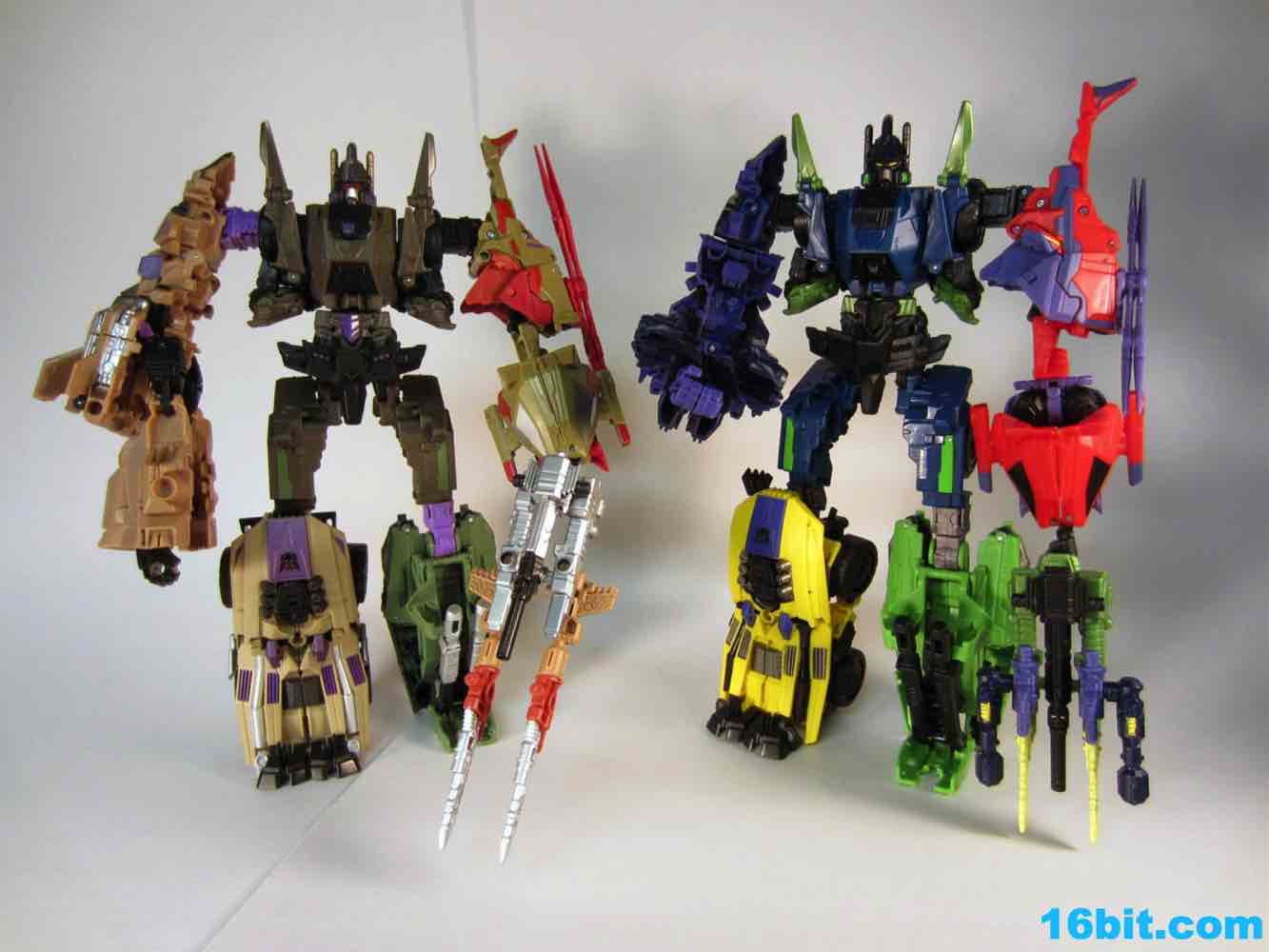See the individual robot reviews for comparisons of each of the individual toys. We'll look at some comparison of the big bot here and do quick rundowns of each of the five parts.