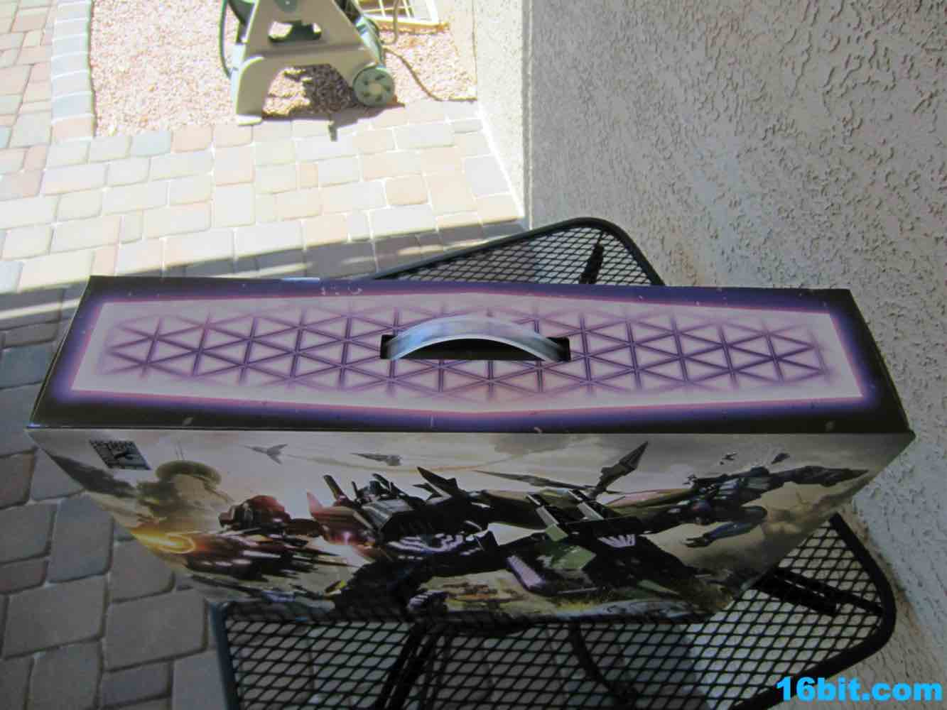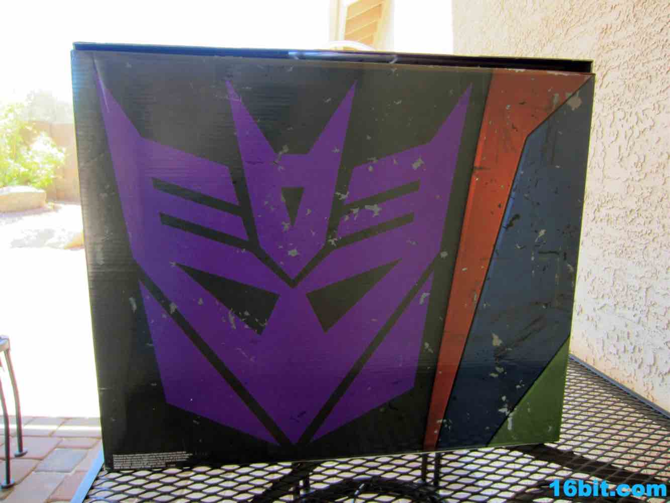 ... there are a ton of images below. The combined shots of the toy on the red background are how it came out of the box-- slightly mistransformed, but I thought worth documenting all the same. The packaging itself is massive, too big to fit in my studio and, apparently, too awkward to shoot well. Here ya go! (Big thanks to Hunter PR for their assistance in obtaining this sample for your review.)