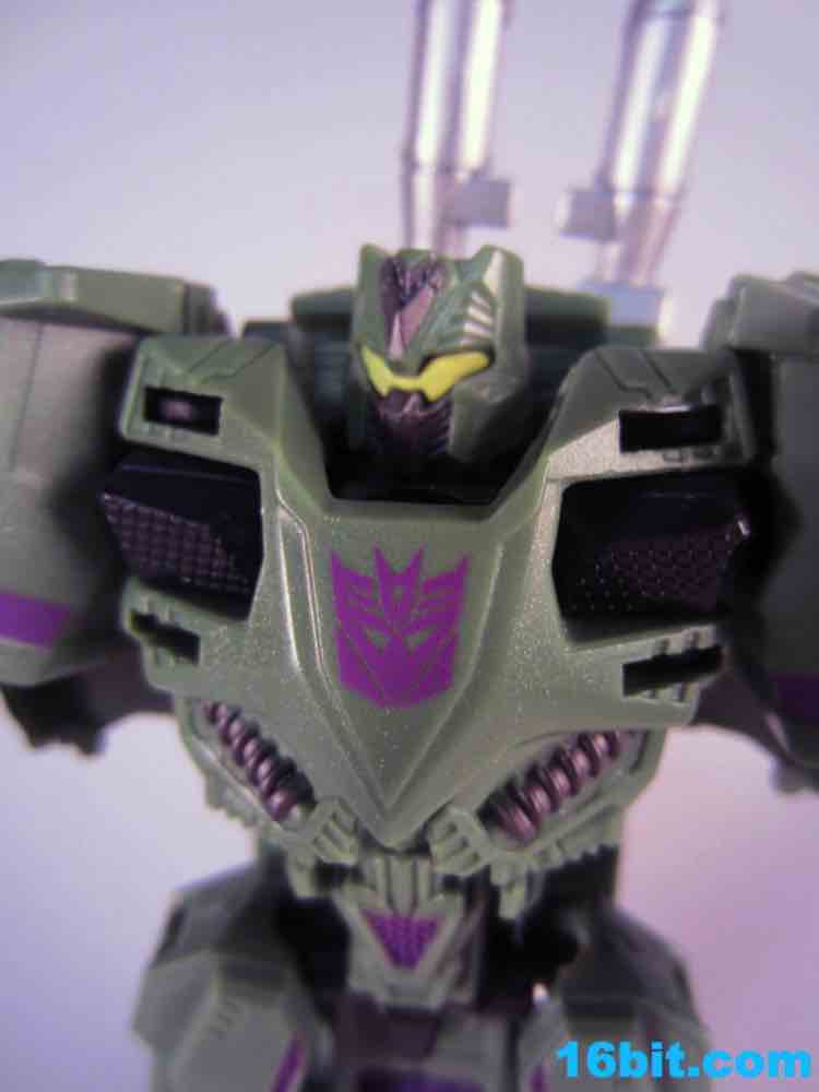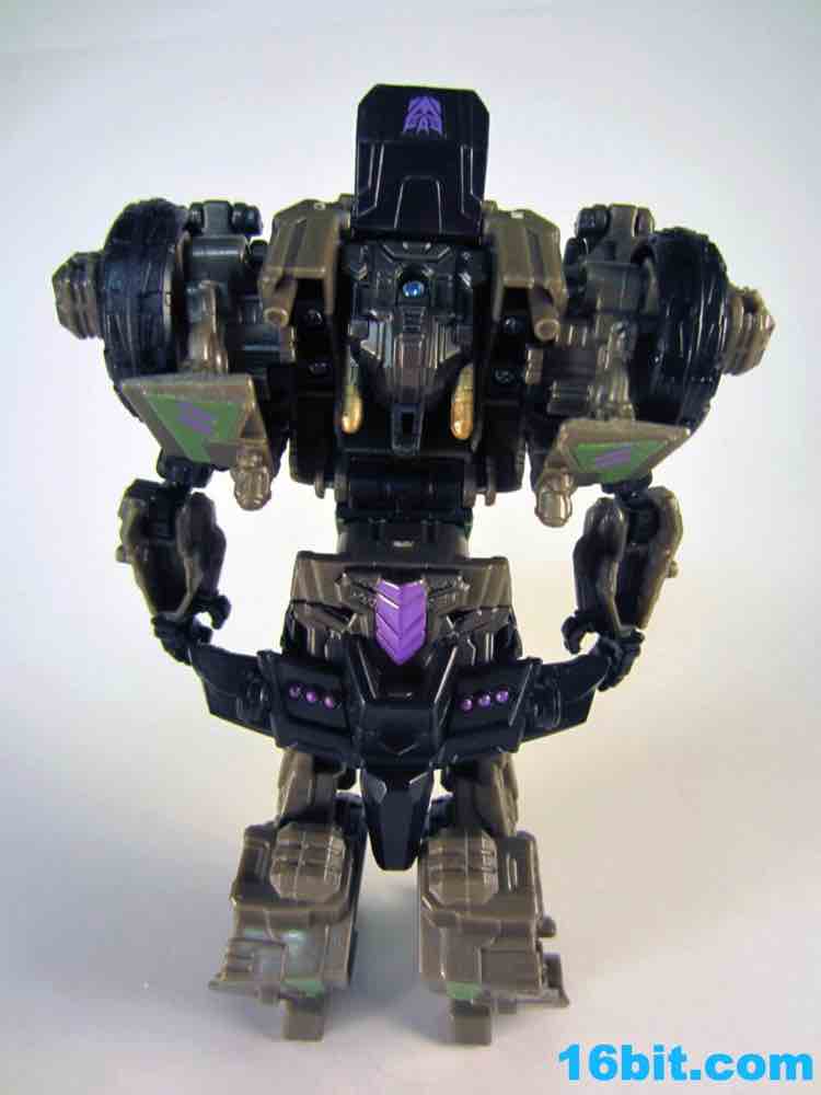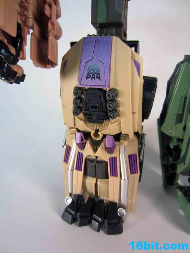 Based on the video game Transformers: Fall of Cybertron, the combined robot is big. Standing 11-inches tall, it's made up of 5 smaller robots: Vortex, Blast Off, Swindle, Onslaught, and Brawl. Each limb can be a hand or a foot, although the instructions are not particularly good at showing you just how to get everything in to every possible form. So I'm going with the default as packaged for the master robot mode, simply because shooting every piece in every mode from every angle is sort of time-prohibitive.