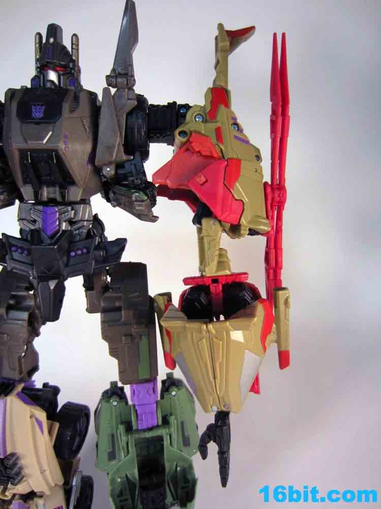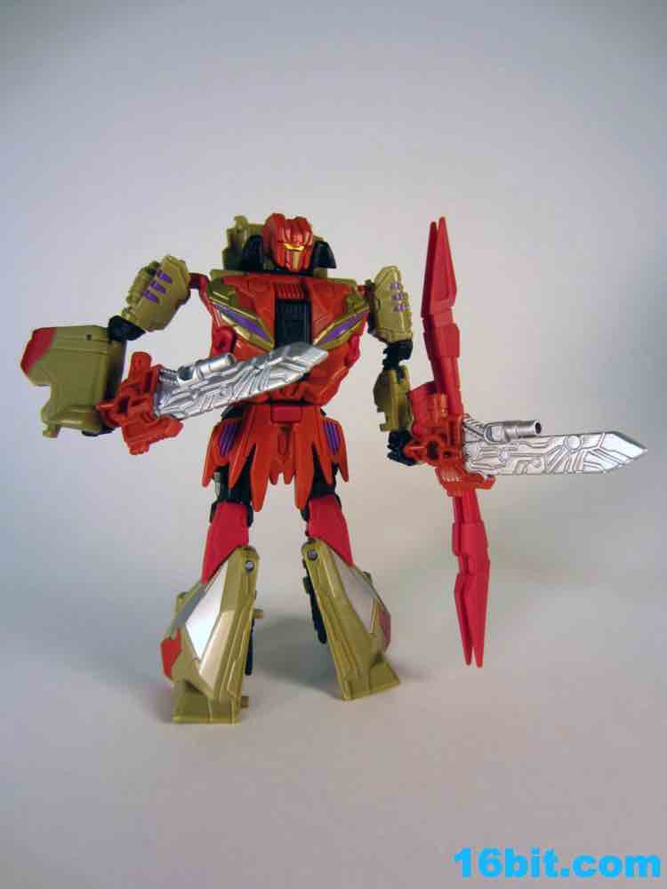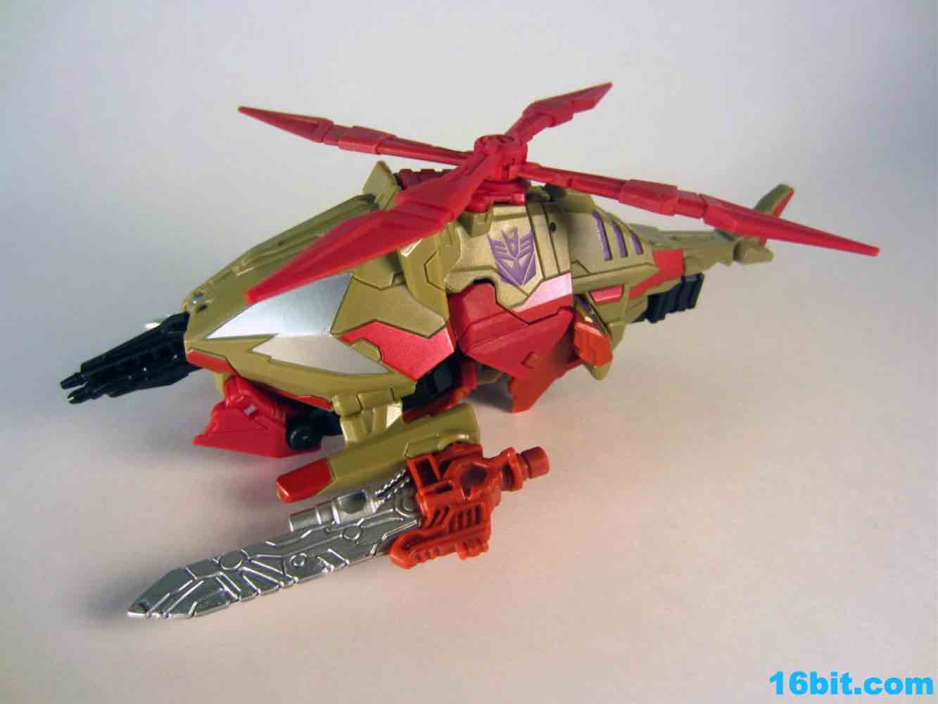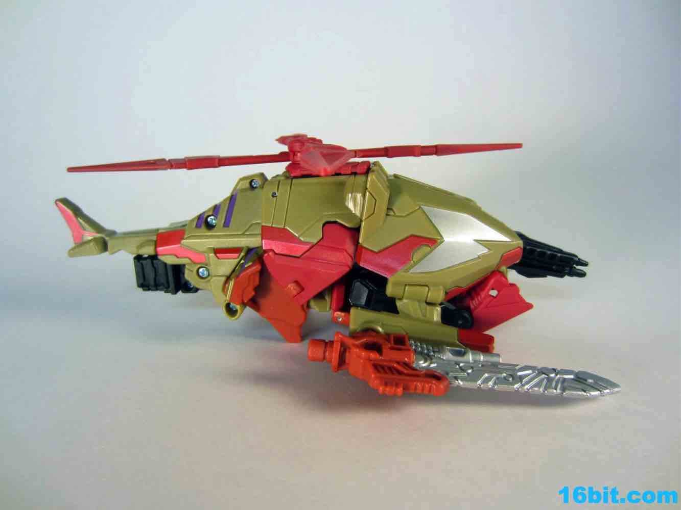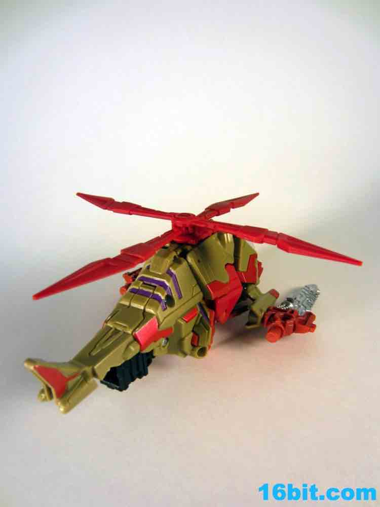 Without question, my favorite part of this set is Vortex because he's fun. He makes a good arm, a good helicopter, and a really fun robot! While not perfect, he has twin swords and a spinning rotor blade. There are landing skids, and the deco is close to the game but not exactly perfect. It's certainly good enough. The giant robot arm mode has a jointed thumb and has no problems holding a weapon, which is nifty because the other arm in the main configuration is a closed fist. While it still looks like a giant robot with a broken chopper for an arm, the toy is more fun than the others on its own. It reminds me of a lost Beast Machines-era Vehicon, and gosh darn it I just like it. I almost wish he sucked more because it's annoying to keep him as part of the combined Bruticus, I just want to futz with him on his own.