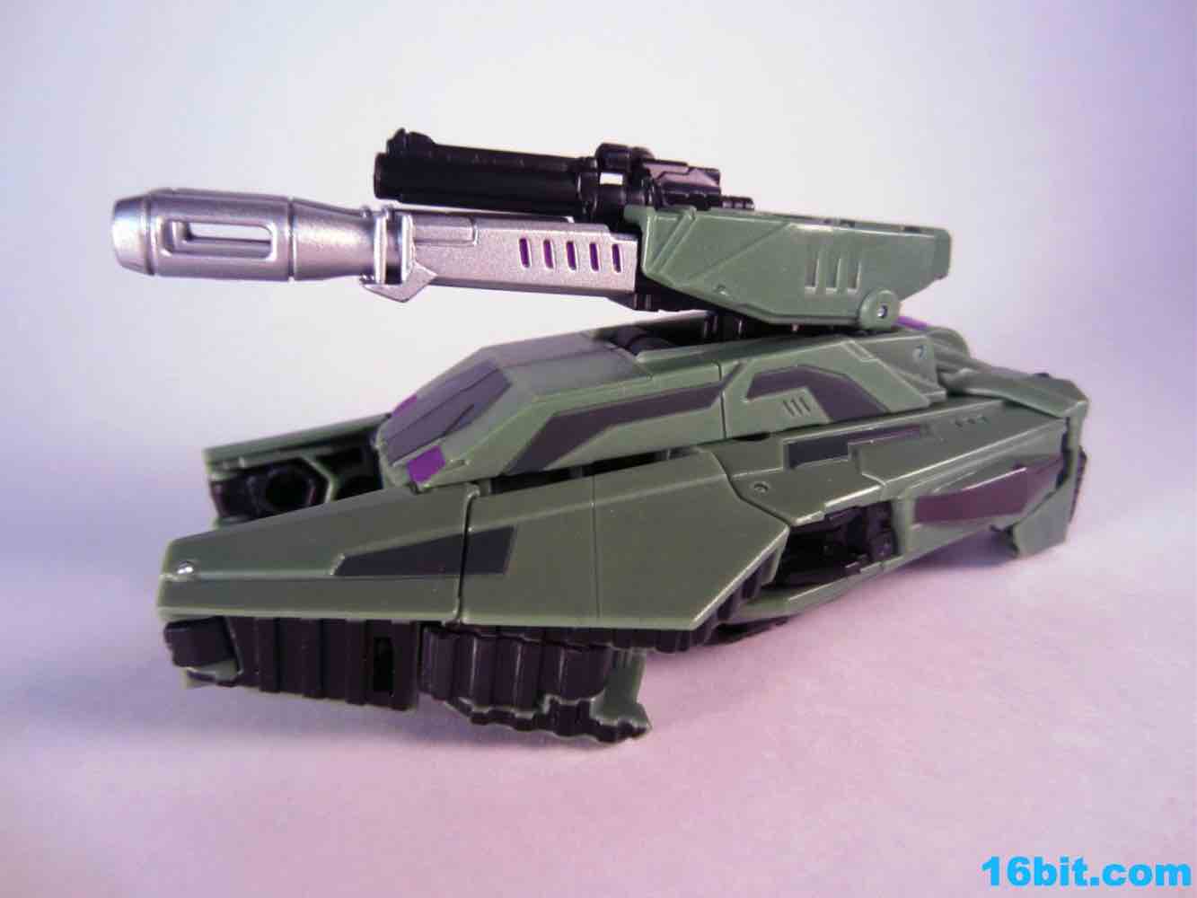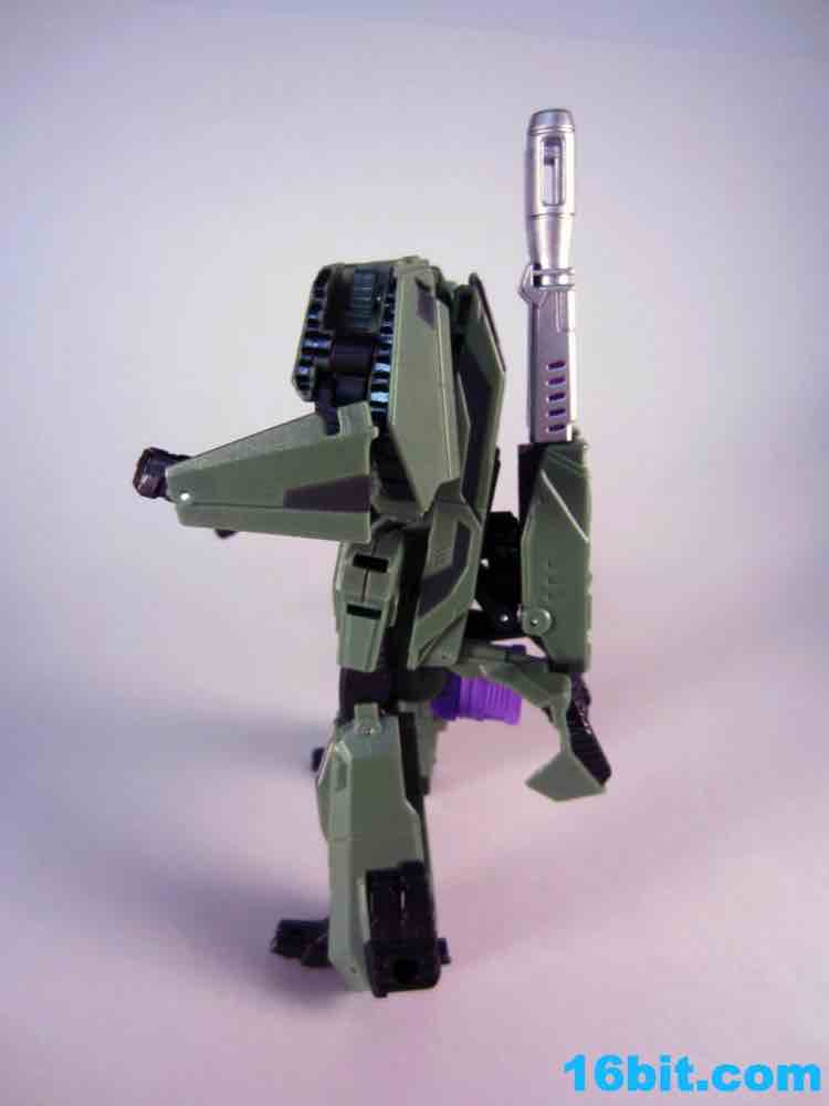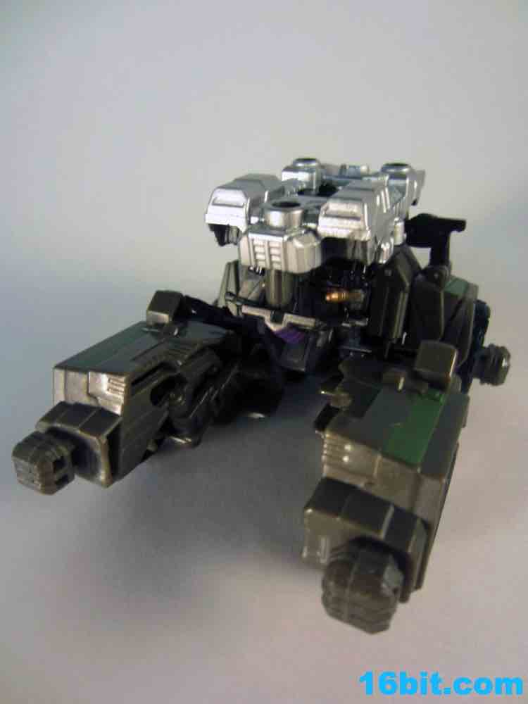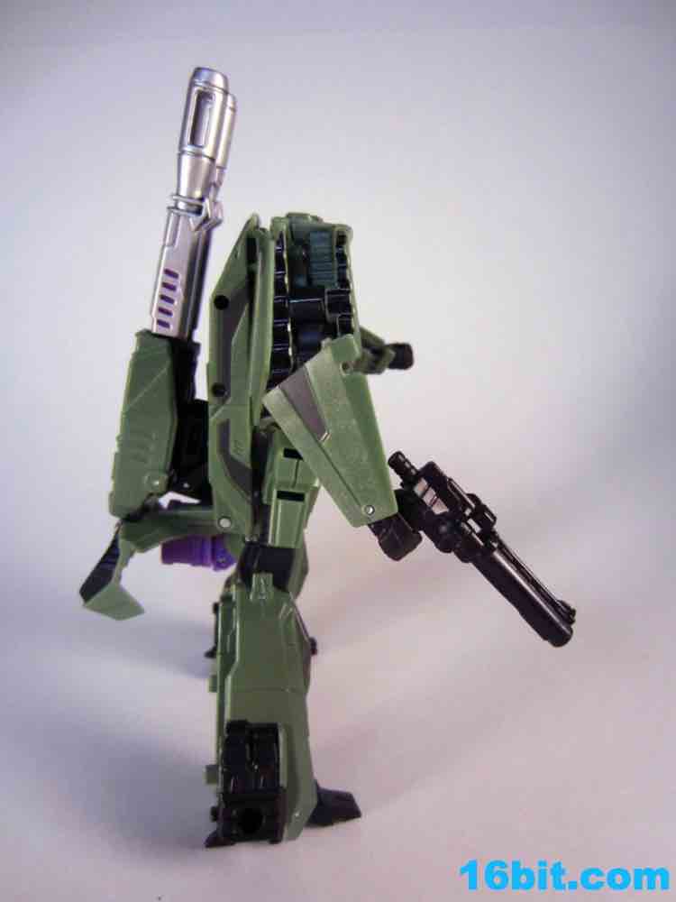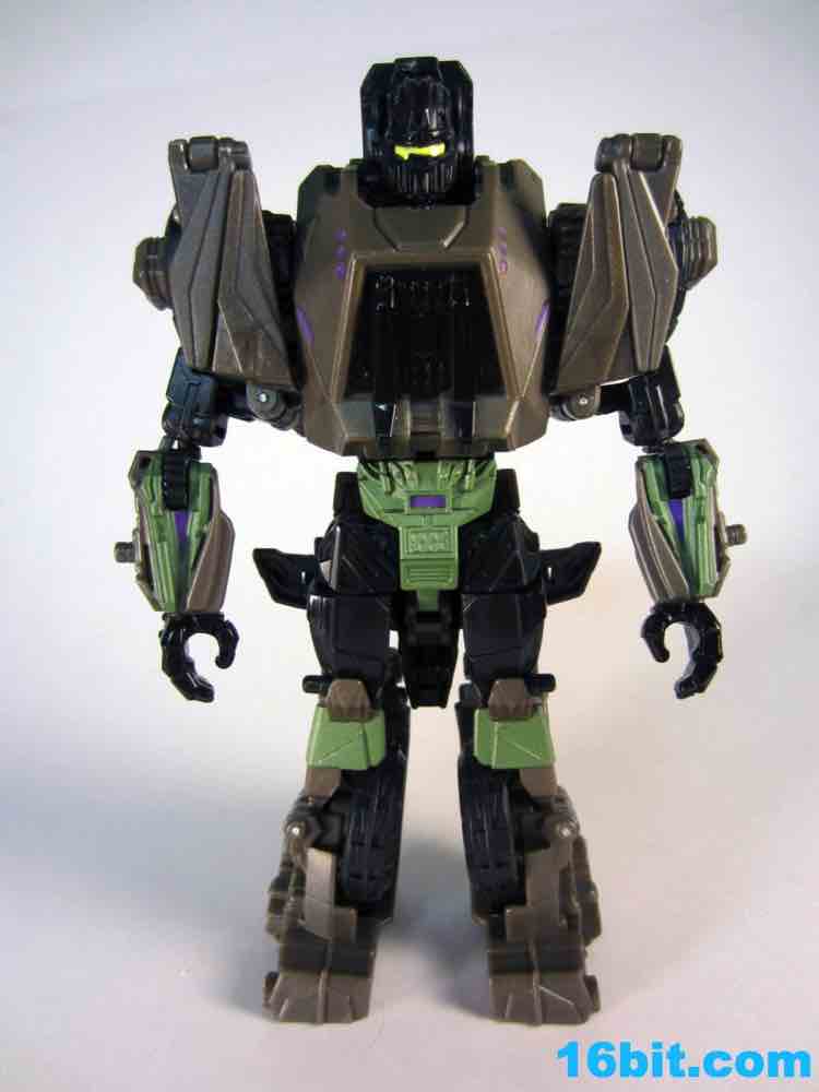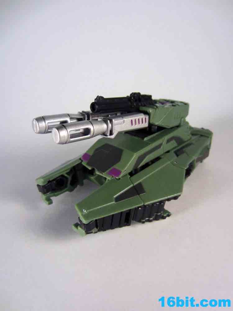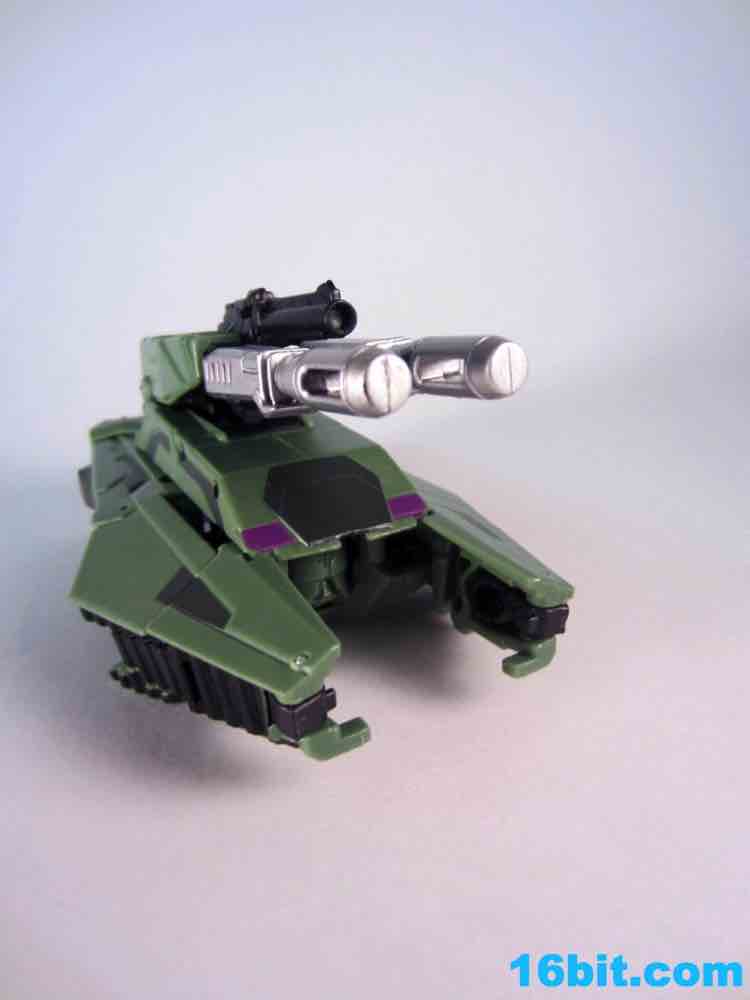 As a hovertank, Brawl works nicely. It looks like a tank! What more could you want? This version of the mold is a respectable quasi-military green, while the individual release is much brighter and the G2 version is basically even brighter, but with purple deco. The toy as sold to you in the box needs some fidgeting to massage it into a stable foot mode, as there are lots of folding panels, tabs, and grooves to get just right. As a foot, he's pretty solid, and that's good. As a tank, he's solid. As a robot, I have a hard time getting the shoulders and head to behave how I want. He includes a small black pistol.