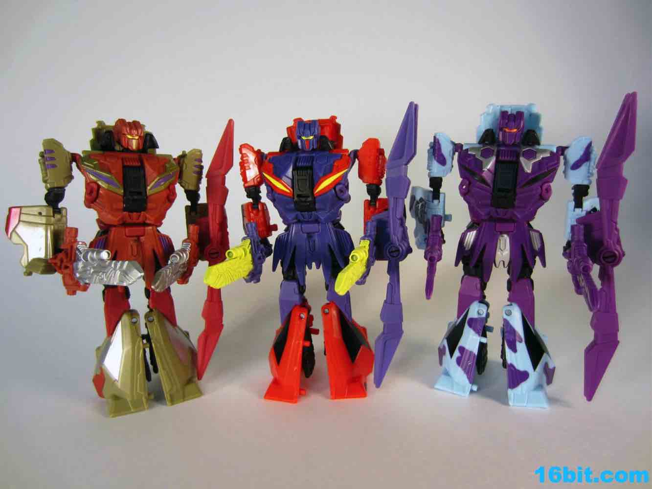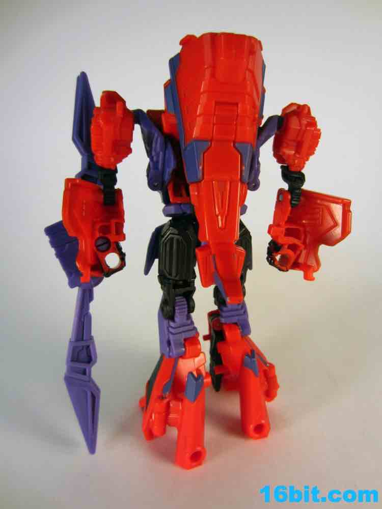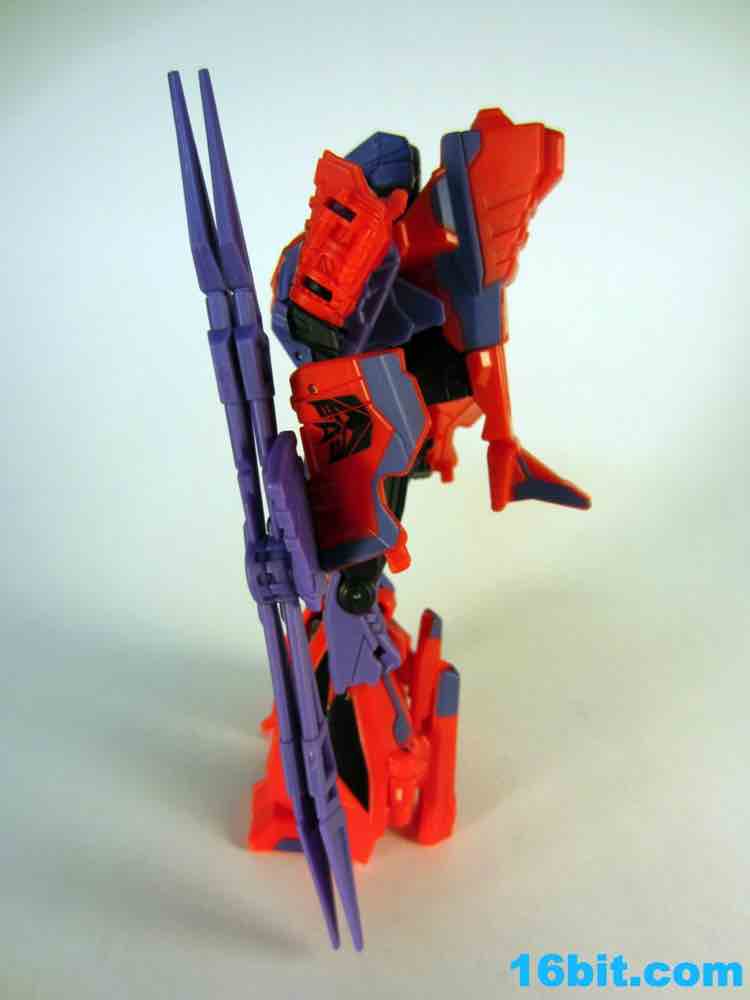 If I have a favorite toy in this subset, it's definitely Vortex. He may not be worth $15, but he's more fun to play with than the rest and feels much more substantial. The bright red and purple makes him look like he could've been a G2 toy, or a Vehicon from Beast Machines, rather than an alternative deco on an existing Fall of Cybertron character. It really is amazing if you think of it, this entire time got 3 complete redecoes in the USA over the course of 5 months, with another coming to Japan, and a retool/redeco coming to the USA in 2013 based on the Wreckers. The figure is pretty great, and eagle-eyed fans will note that the swords are actually colored differently on the package. The photography shows yellow blades with red handles, while the toy has yellow blades with purple handles.