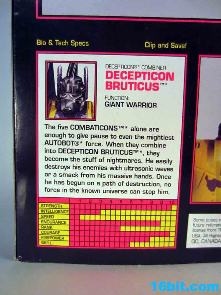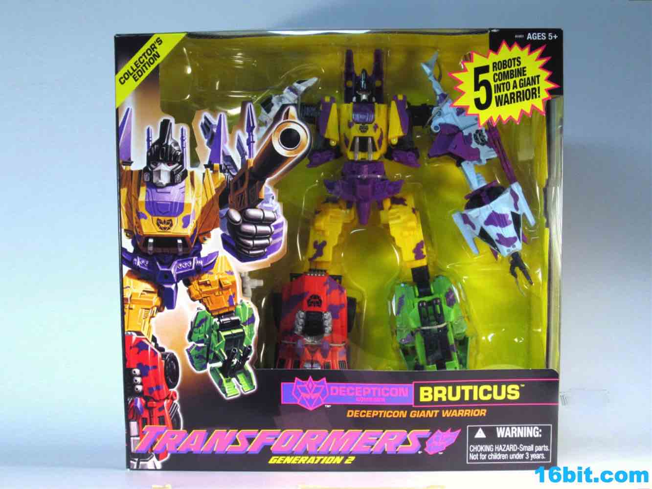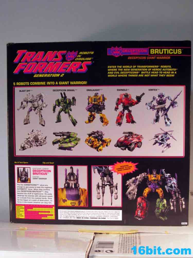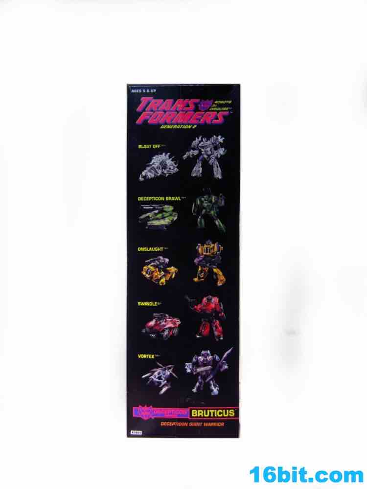 Of all the versions of this mold, Generation 2 Bruticus got me the most excited. Based on an alternate skin from Transformers: Fall of Cybertron, this takes the new toys from Transformers Generations and puts them in what may be the most retro box in the entire modern era of Transformers. The coloring is bright and ugly, the bursts are just like you saw in the 1990s, plus it has the old-school Hasbro logo right on the box! And old tech specs! I was almost ashamed of myself to open the toy, the box was just that nice! But we have reviews to write, and you have to know just how freakishly colorful this dude is.