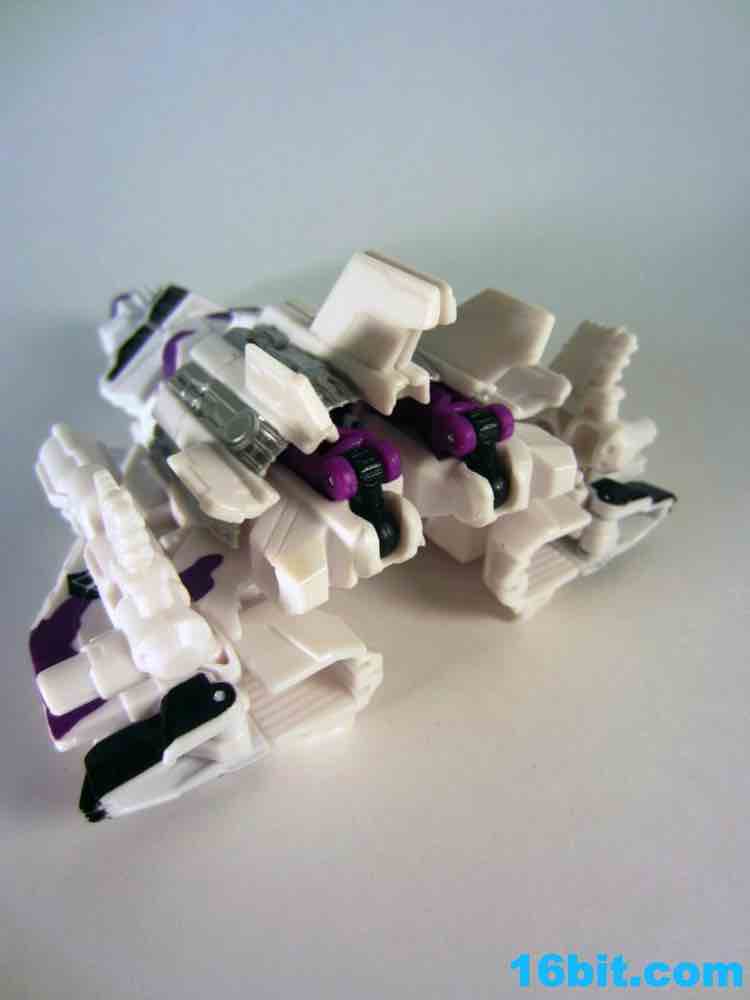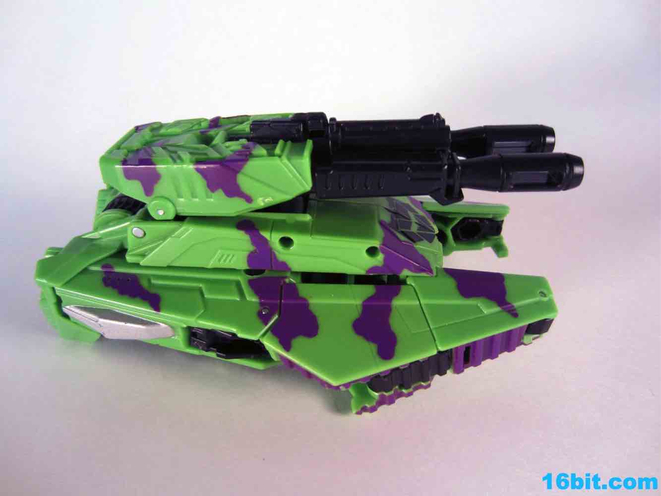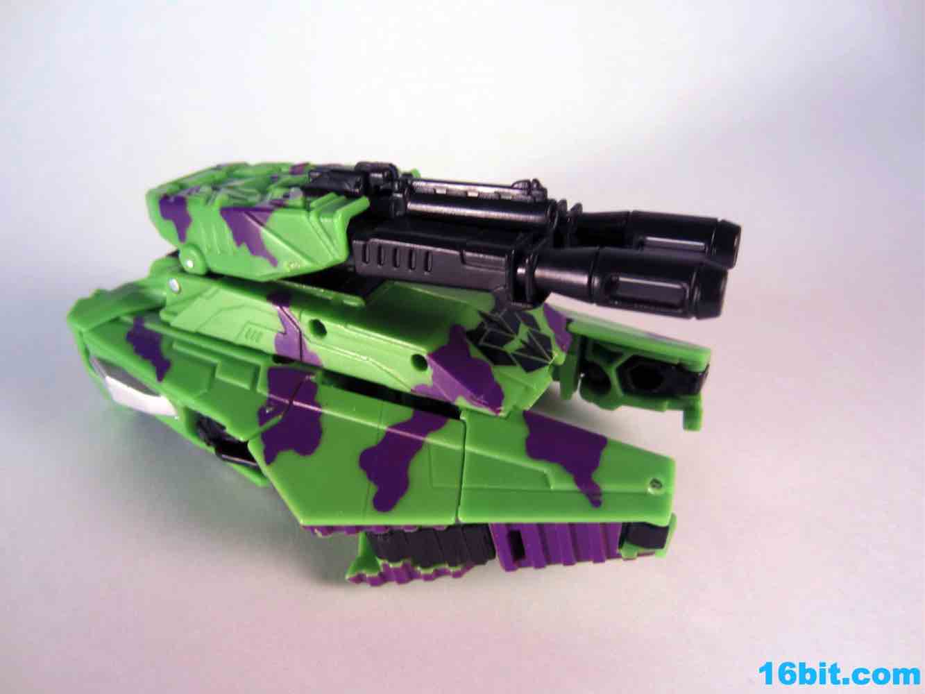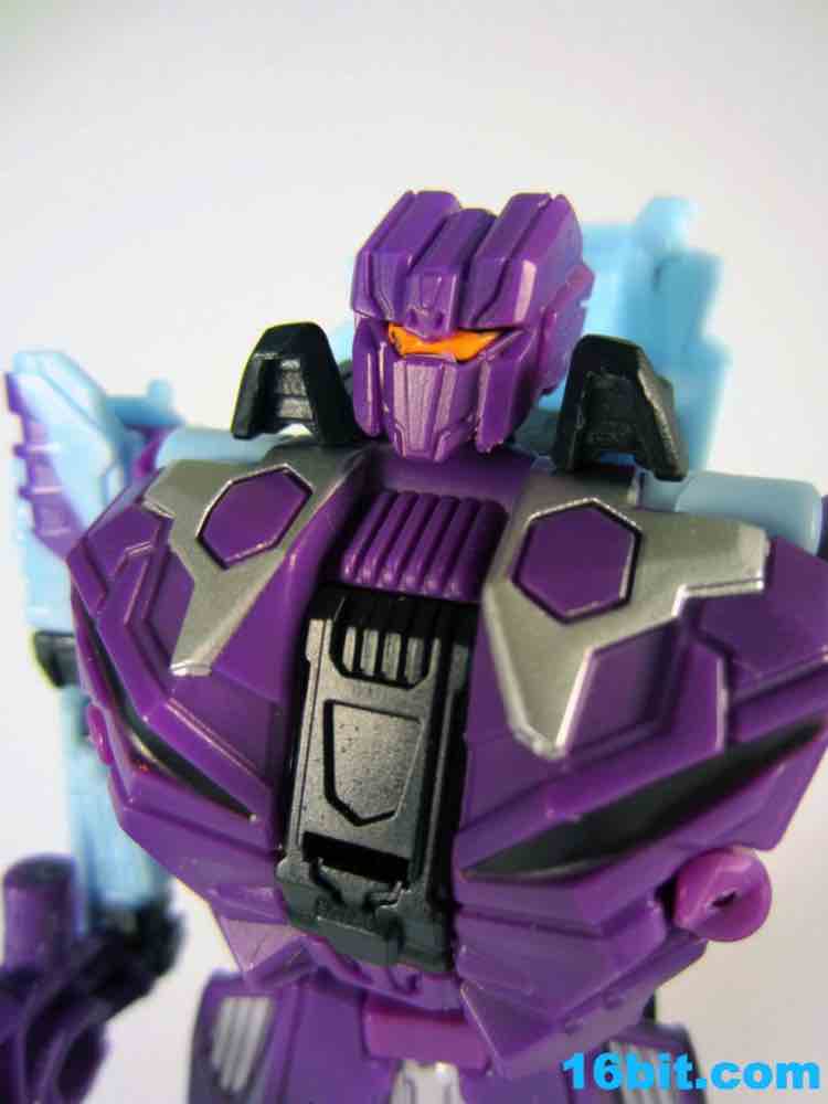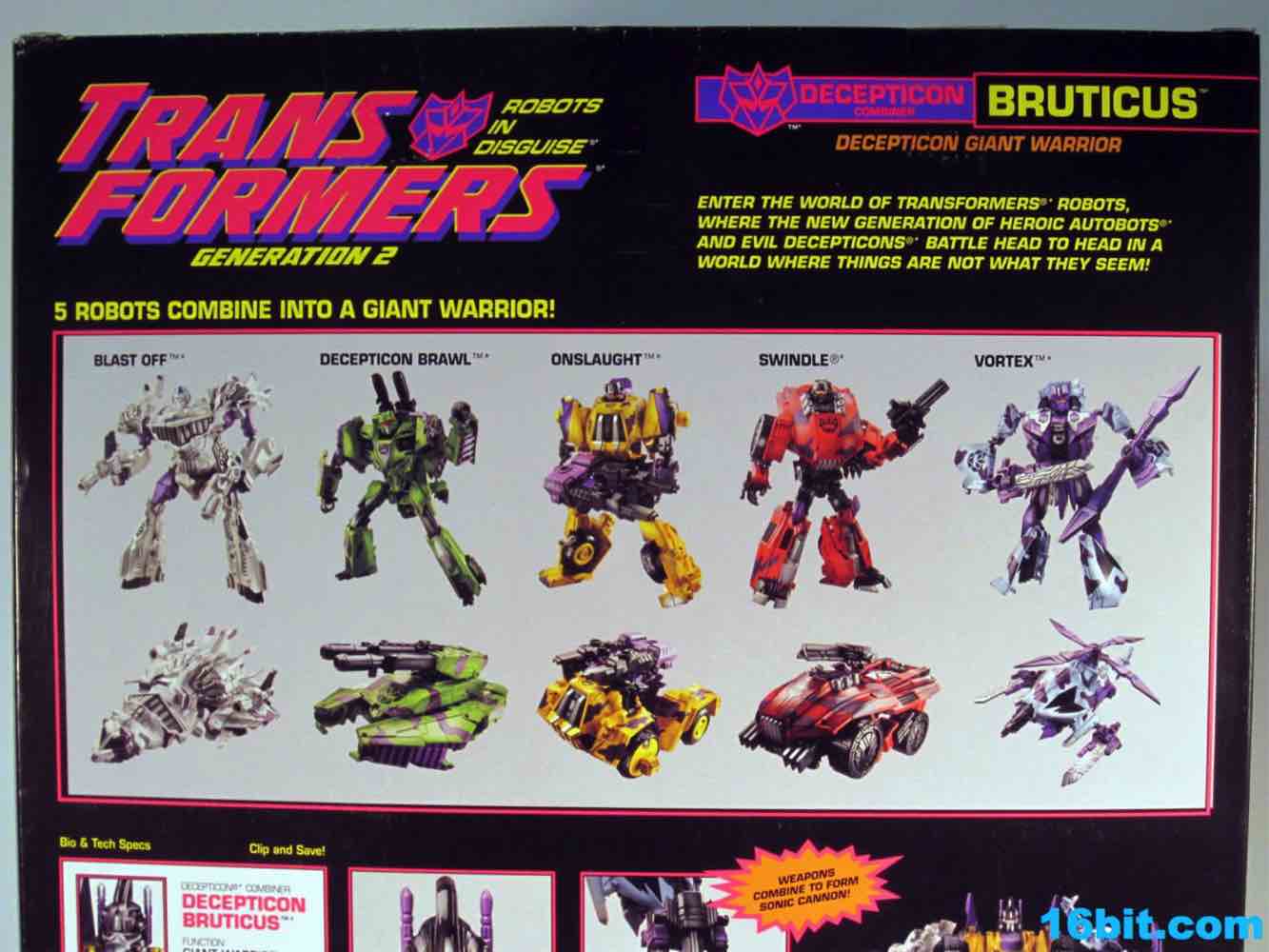 At 11-inches tall, the figure is basically exactly what you might expect. It's huge. It's ugly. It has purple camo on neon military vehicles. In short, it's a wonderful tribute to the 1990s and was priced to move! It's a full $40 cheaper than the game-accurate SDCC version and $15 cheaper than the... I'm-not-sure-what-inspired mass market Generations release. This one is unabashedly G2, although the original 1994 Generation 2 release had a bluer Vortex and more purple kibble covering up Onslaught's yellow plastic in the combined mode. It's still really cool this time around, plus the G2 symbols don't hurt. Oh, and the black plastic chest kibble with purple camo is sadly gone too, it looks good on either version but it is clearly different.