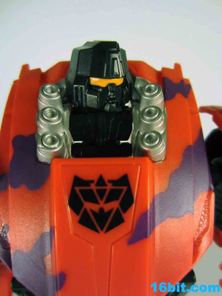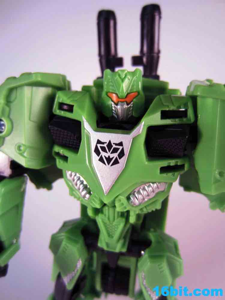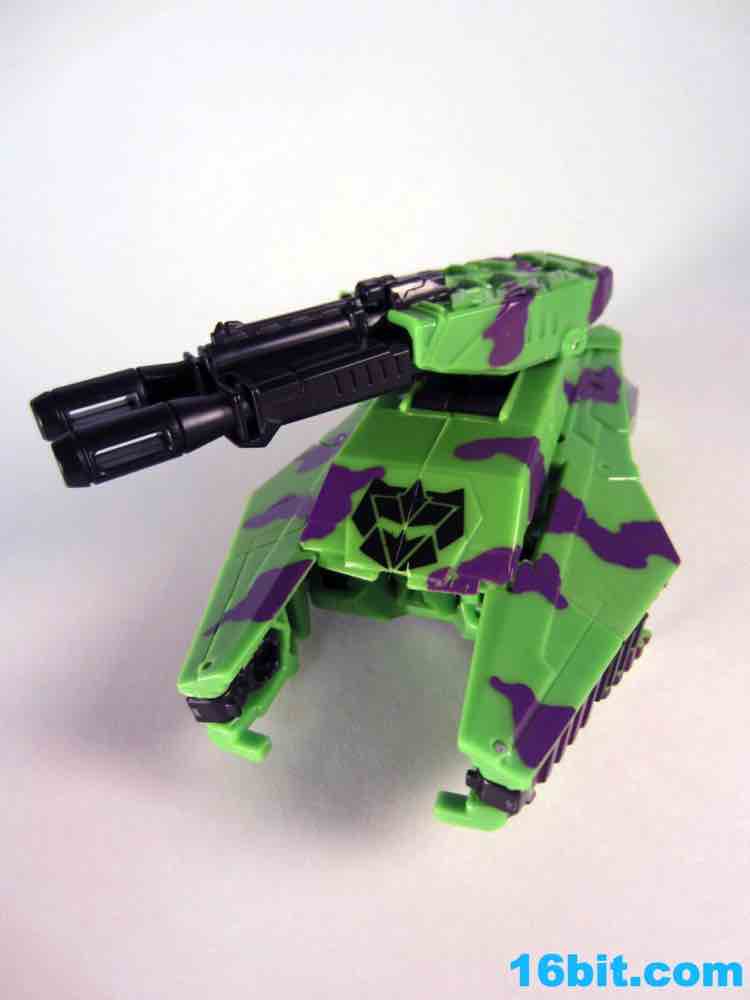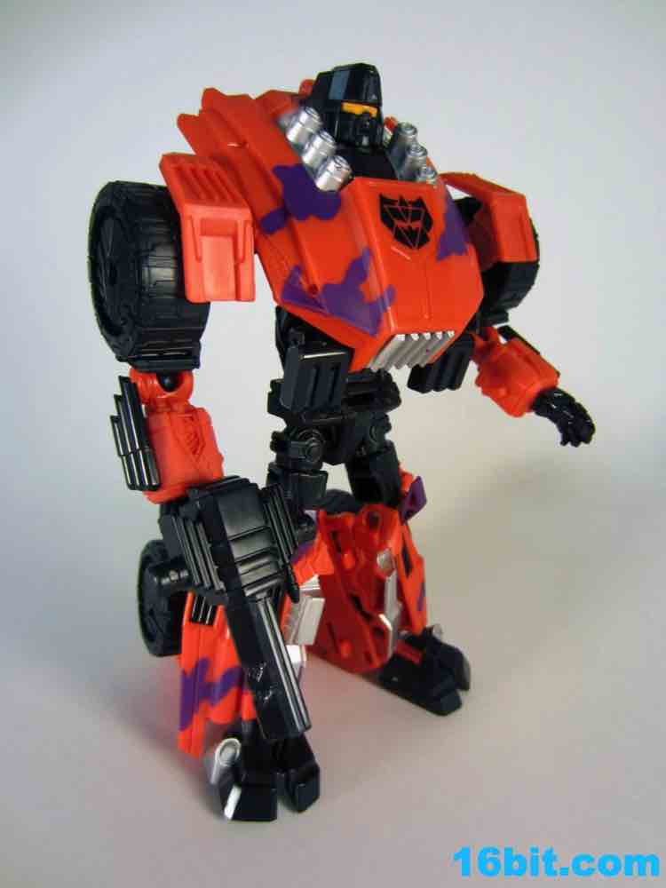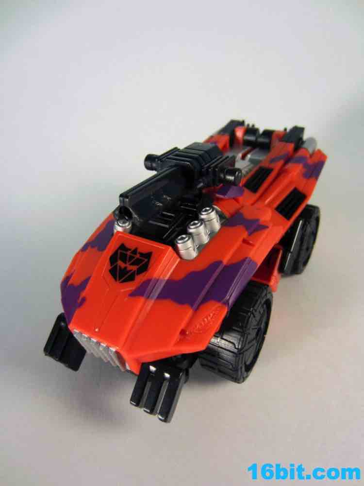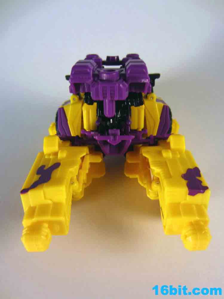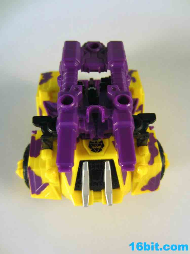 The least exciting toy in this set is really Brawl as his green plastic is pretty much the same as the individually-packaged release. It has some purple stripes now... and a massive G2 Decepticon symbol. That's the selling point here. The head on my sample feels like it wasn't meant to be touched, as when I pulled it up during transformation it popped off the peg. The neck peg is on an articulated panel which does not like to lock into place, so this makes me happy I keep a small screwdriver around to finesse thigns in place. He looks pretty good, but when you get right down to it, he's about 90% identical to the individually packaged Generations Brawl, minus some paint and the G2 symbol. His chest and body has some light silver on it, which I think makes his face look way, way better than the other versions. Actually, on the whole, this is probably the best of the Brawls you can buy right now.