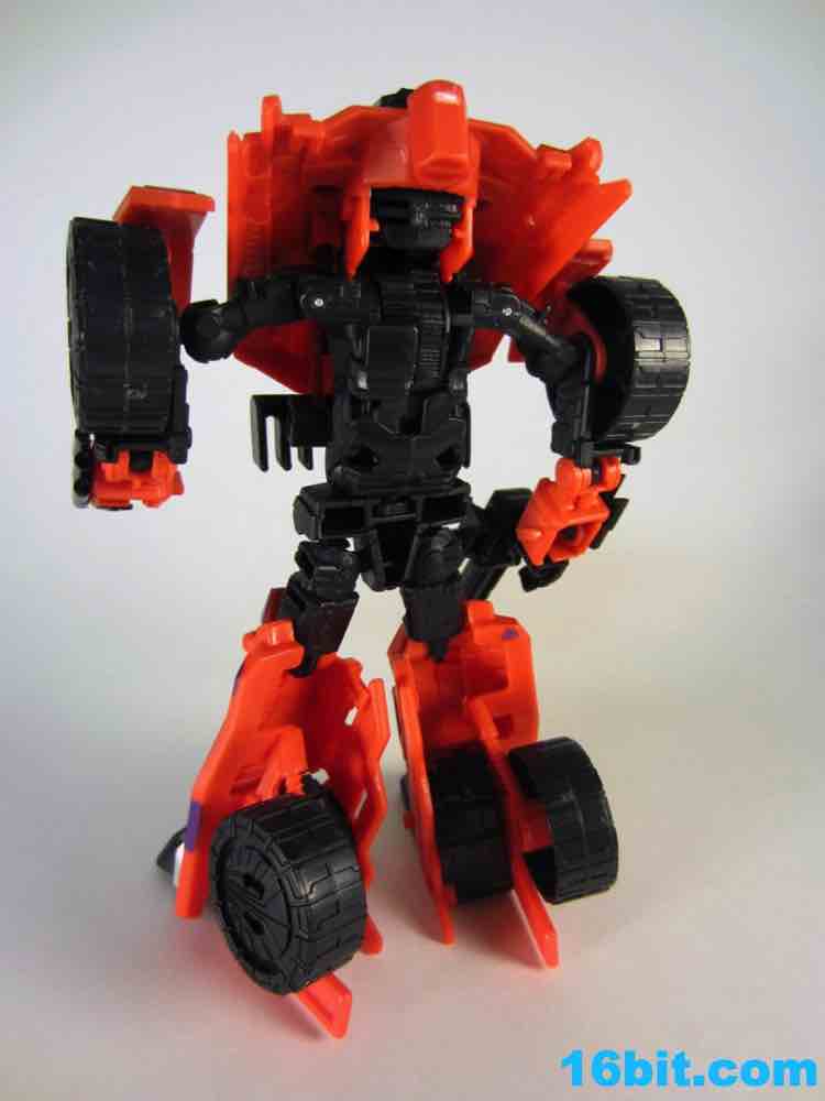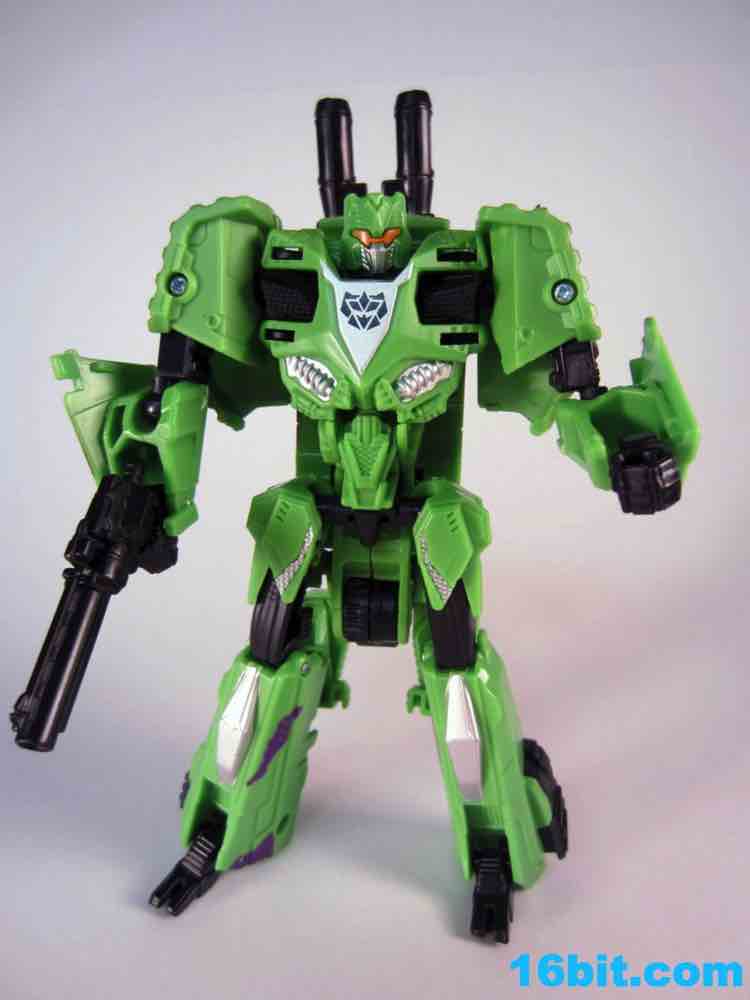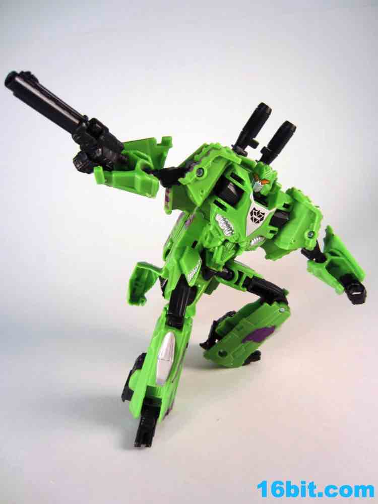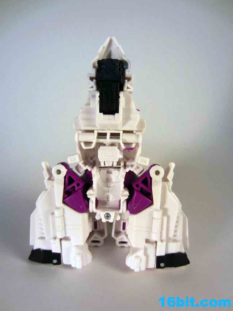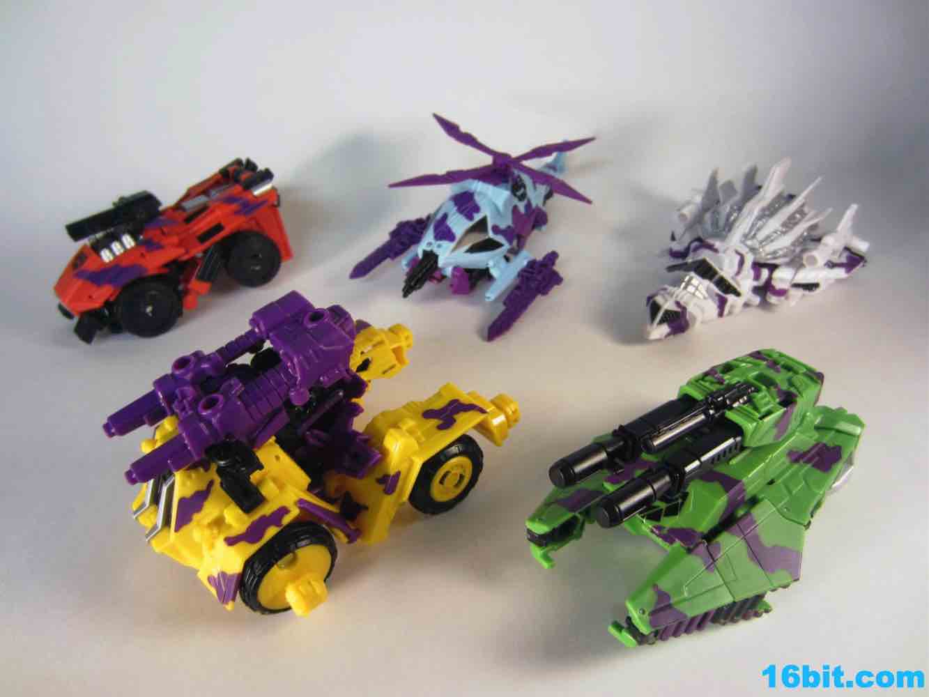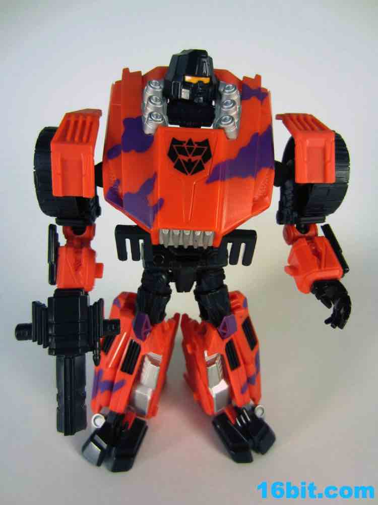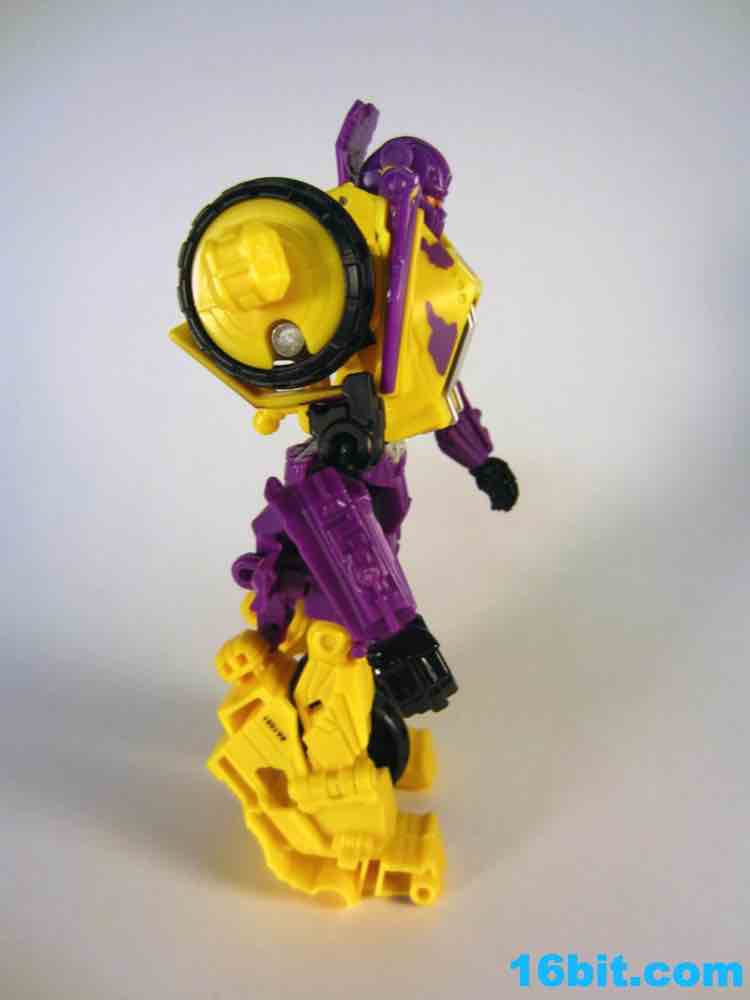 The least exciting toy in this set is really Brawl as his green plastic is pretty much the same as the individually-packaged release. It has some purple stripes now... and a massive G2 Decepticon symbol. That's the selling point here. The head on my sample feels like it wasn't meant to be touched, as when I pulled it up during transformation it popped off the peg. The neck peg is on an articulated panel which does not like to lock into place, so this makes me happy I keep a small screwdriver around to finesse thigns in place. He looks pretty good, but when you get right down to it, he's about 90% identical to the individually packaged Generations Brawl, minus some paint and the G2 symbol. His chest and body has some light silver on it, which I think makes his face look way, way better than the other versions. Actually, on the whole, this is probably the best of the Brawls you can buy right now.