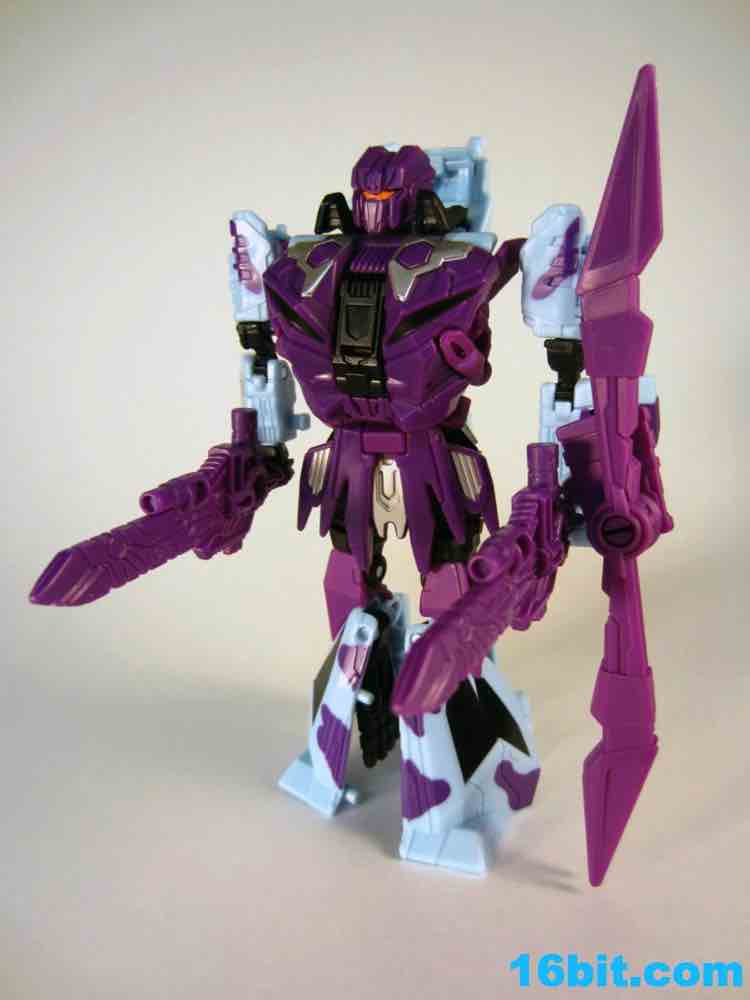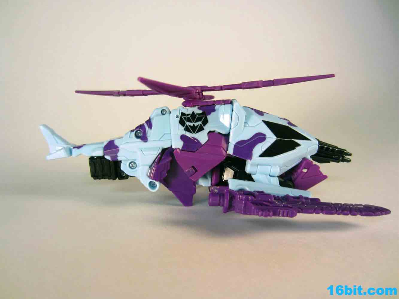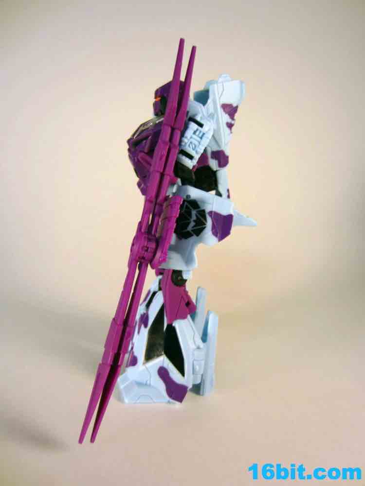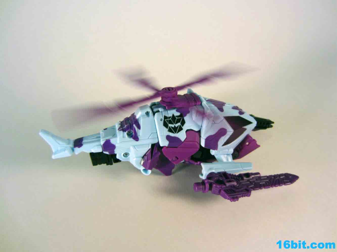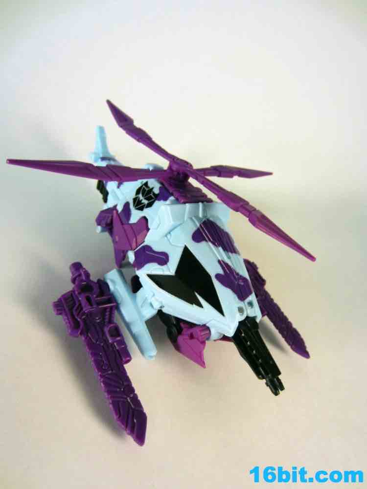 I'm enamored with Vortex as a toy, and this one may be, overall, the best. It has a purple head with a red/orange visor, just like the original. The chest is still purple, as are the weapons. Unlike other Generations Vortex toys, this one has unpainted swords. They look cheap, but that's OK because G2 toys were largely somewhat cheap-looking in their appearance, and that's OK because they could melt your eyes. In any mode, the rotor spins freely and it's just generally a good, solid, fun toy without any real reasons for me to complain except I would've liked another G2 symbol on his chest. As it is, they're on the forearms. They're nice and big, but still, one more would've been nice as there's a spot for it.