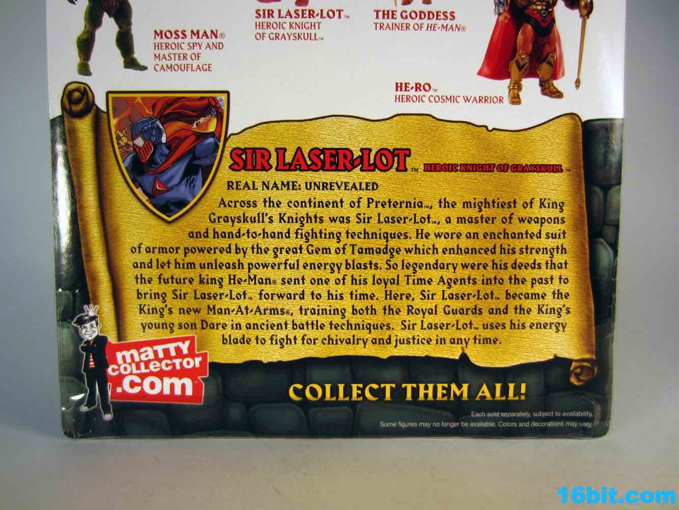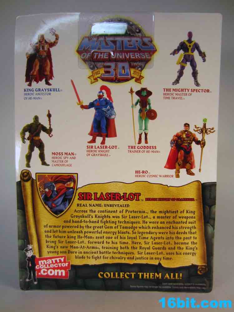 As Masters of the Universe trudges along, the desire to introduce new characters like Sir Laser-Lot bubbles up and gives fans an excuse to argue once the toy is announced. 2012 was packed with never-before-a-toy figures, from the fairly obscure cartoon character Dekker to completely new (and newly-invented) familiar faces like Castle Grayskullman. Sir Laser-Lot was designed by DC Comics talent Geoff Johns, and was probably one of the most polarizing figures in the 30th Anniversary sub-line. (This is the batch that included Fearless Photogg, Draego-Man, Castle Grayskullman, The Mighty Spector, Cy-Chop, and this guy.) Sir Laser-Lot took 12 days to sell through, the slowest of the 30th Anniversary figures. (The second-slowest was Cy-Chop at 6 days.)