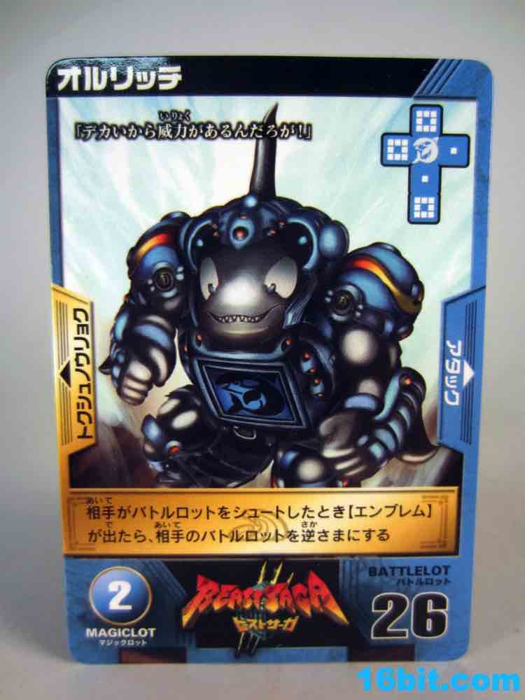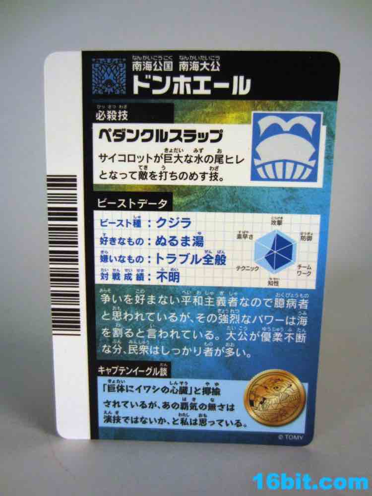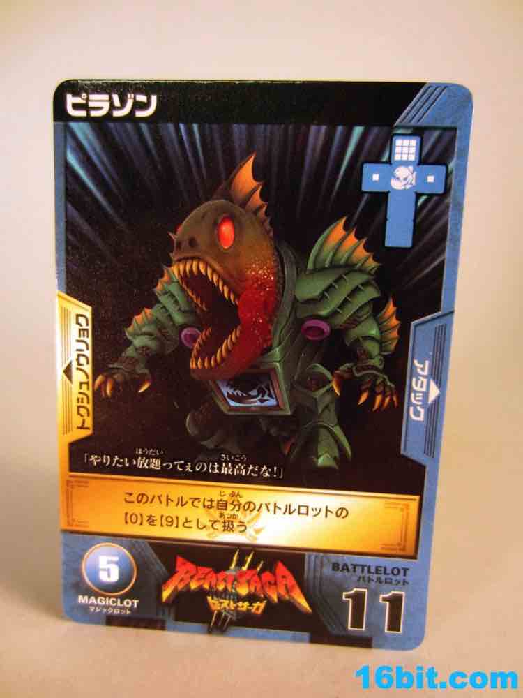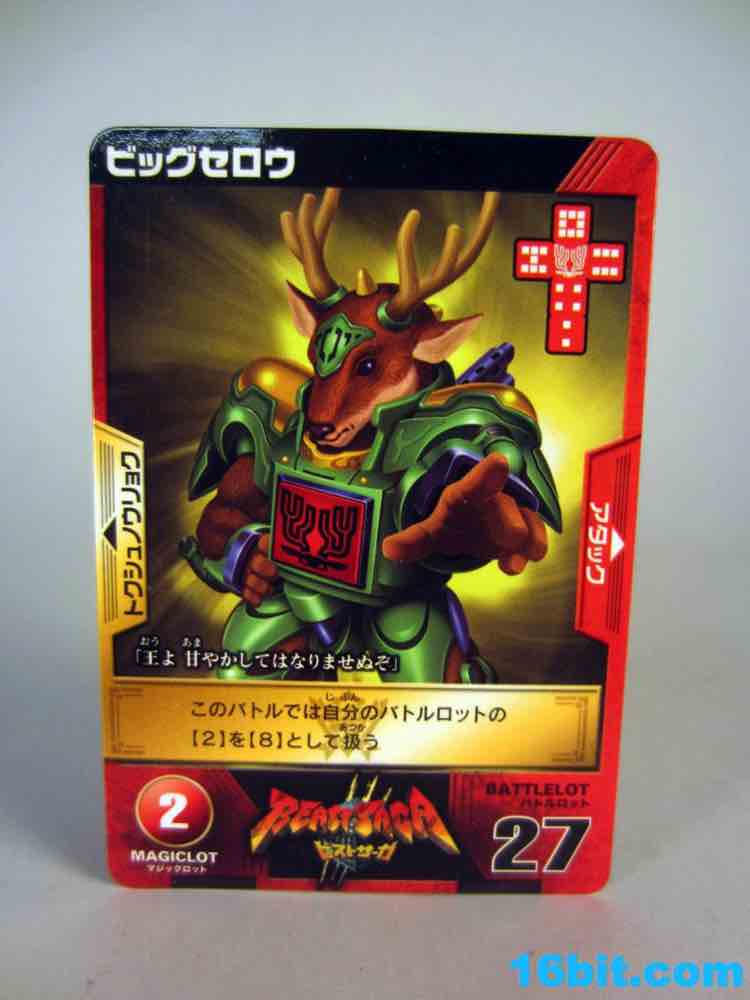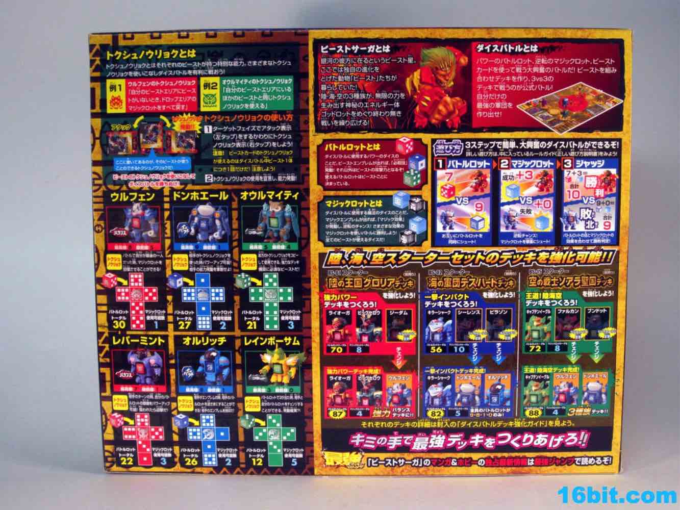 Item No.: BS-20 Manufacturer:Takara-Tomy Includes:6 shields, 6 spears, 6 shields, 16 dice, play mat, game instructions, 12 trading cards Action Feature:Dice launch out of stomach Retail:3,675 yen (or about $45, $60ish at importers) Availability: November 2012 Other: Seriously, Go Buy This