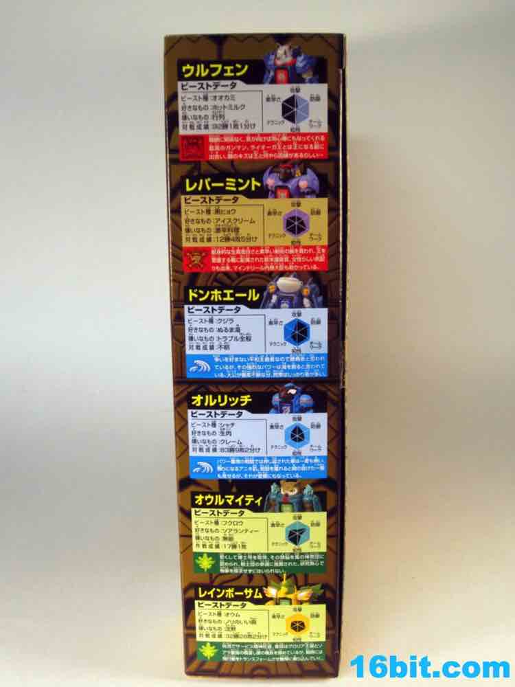 Each figure has 4 points of articulation and is made of a soft plastic, but not as soft as many previous figures. Weapons easily slide into hands without the struggle of some earlier releases, I see little or no warping, the sculpts seem better, and they're just superb concepts. The only real drawback I see in this really amazing set is that we're seeing Takara-Tomy take shortcuts, with some areas on some figures going unpainted like ammo belts on the wolf or the parrot's talons. It's an expensive purchase but not one I'll regret unless Hasbro brings it out in the USA for a fraction of the price next year.