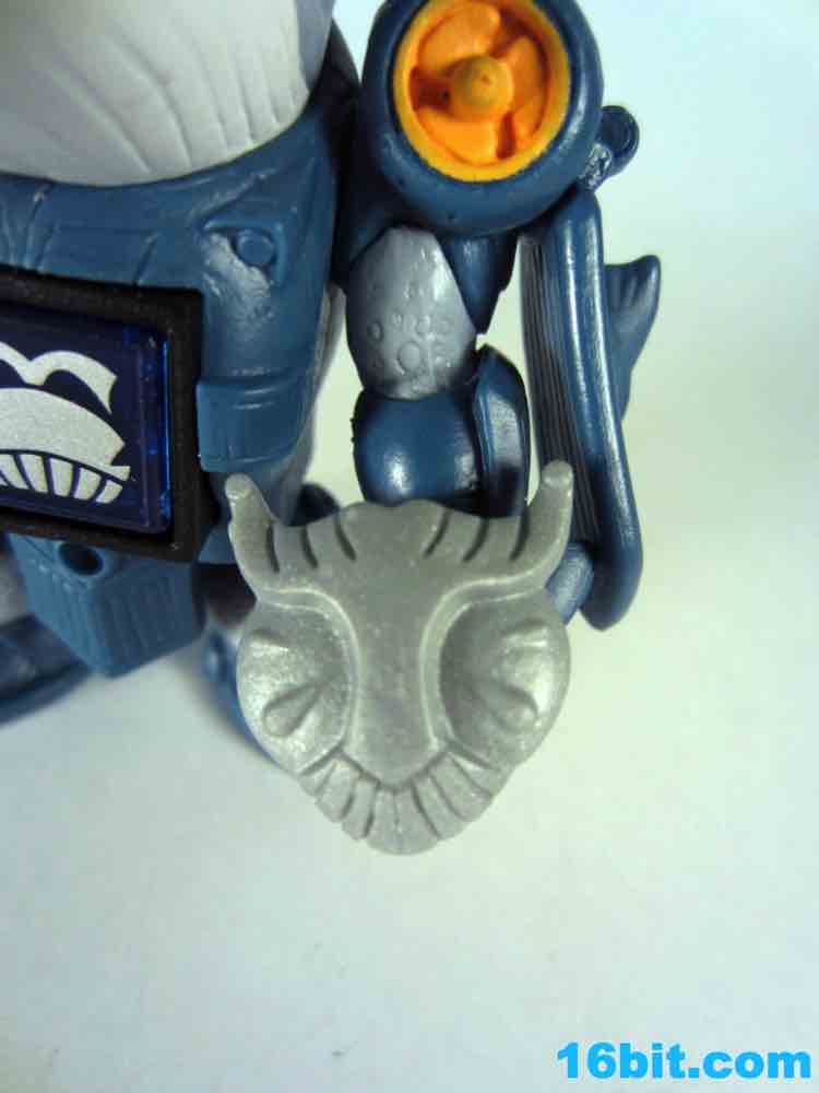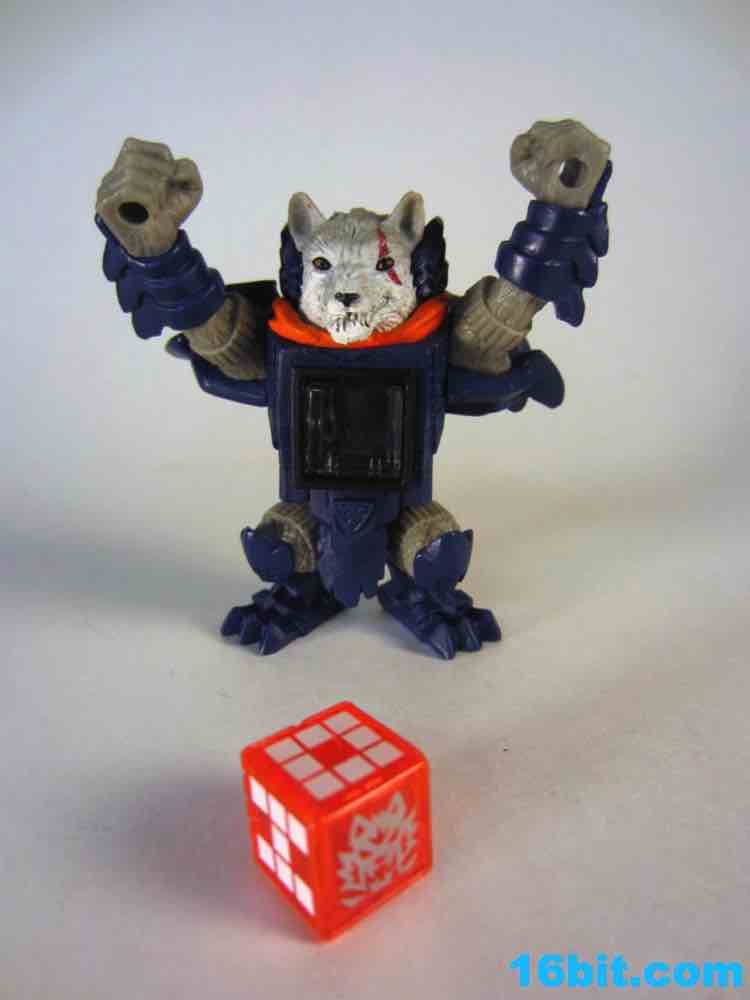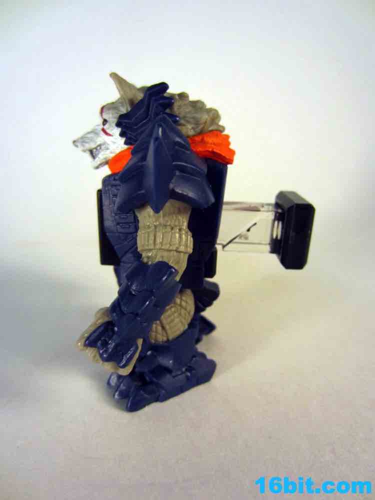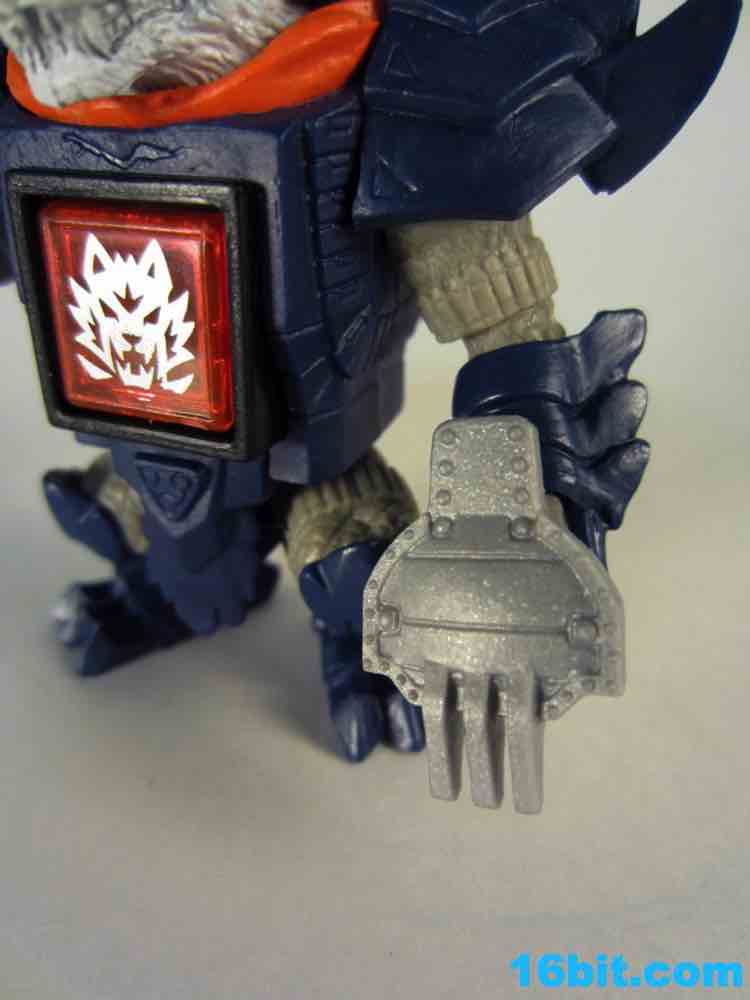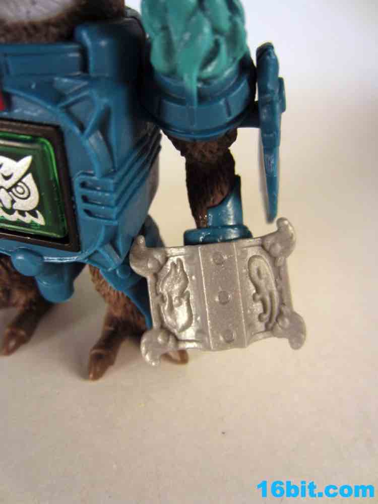 Another seemingly obvious update of a vintage Laser Beasts toy is Wolfen, who is incredibly similar to Ground Wolf. The armor color and bared teeth are right on target, although the vintage toy has more dark brown while the new one has light grey with a white snout and a scar over his eye. The sculpting on his mouth is really fantastic, and a little more paint could probably make it even better. As it is, the eyes, scar, nose, and everything else make him look really big and mean, with broad shoulders and no neck. I was disappointed to see they sculpted some sort of armor on his legs plus what may be ammo belts on his arms and legs, but these elements were left unpainted. It happened on the original Battle Beasts so it's not like it's a terrible tragedy.