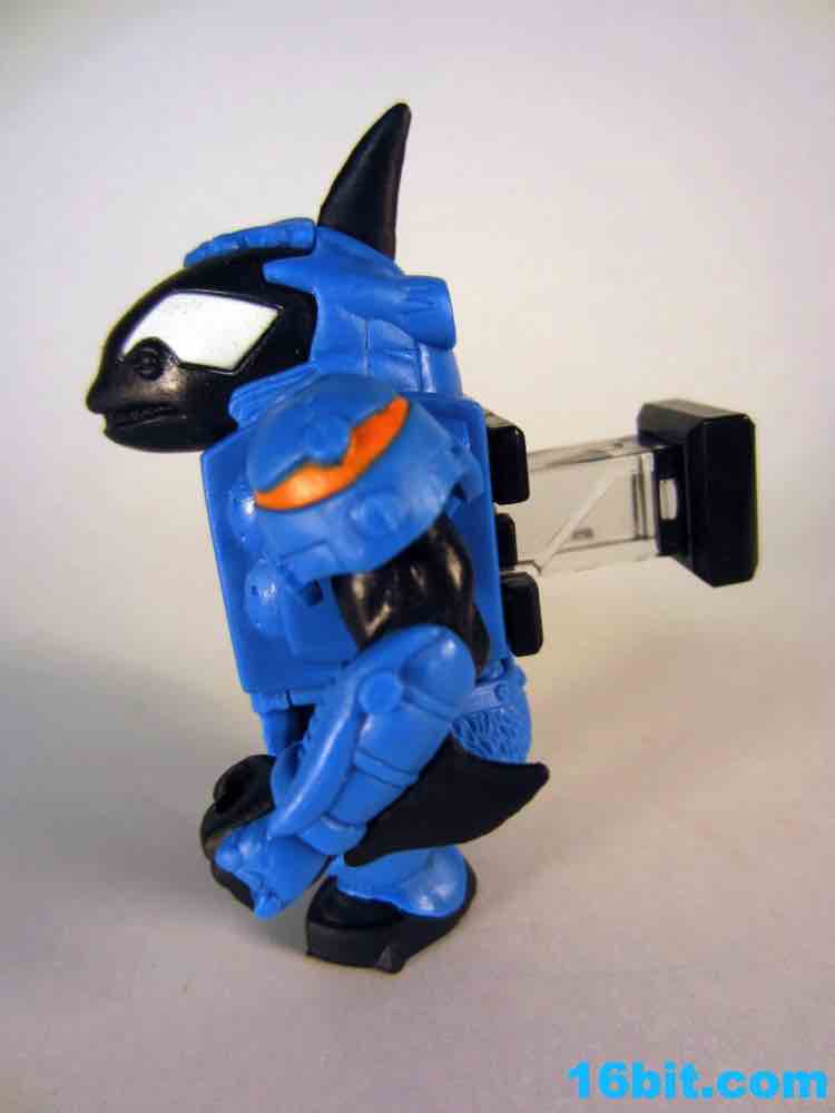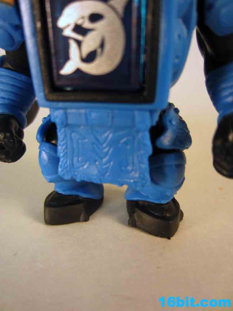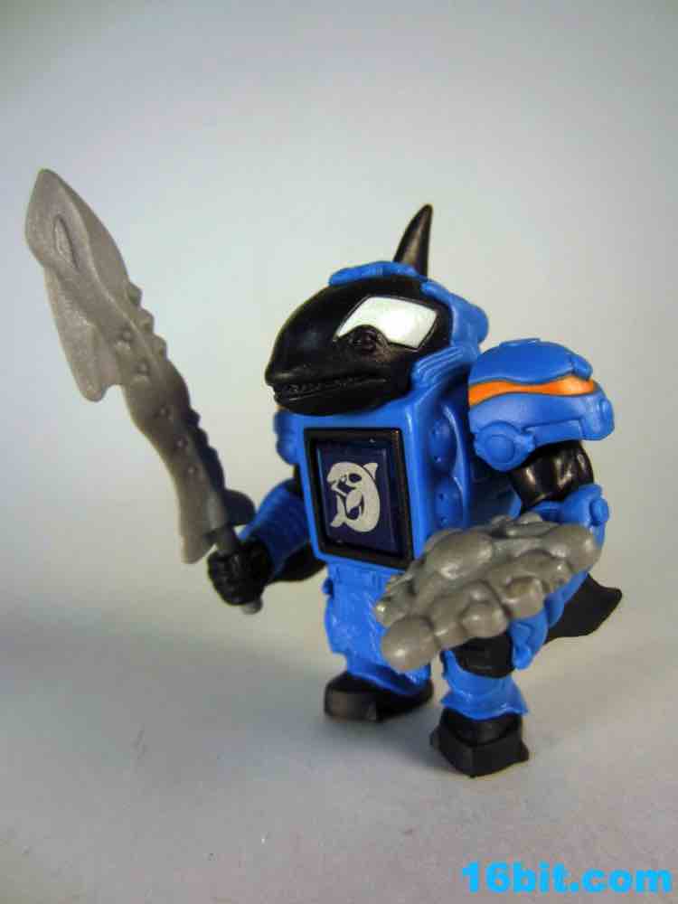 Wrapping up the figures of this set is Olrich, which is another figure I've been wanting in this format since I was a little kid. (Despite what you may or may not feel about theme parks today, who didn't dig Shamu or Free Willy growing up?) I was incredibly thrilled to hear he was coming, so I was more than a little sad to see him come up short. Quite literally, in fact, as he was the shortest figure in the set. If this plays into some story where he's got a Napoleon complex, hey, cool... but I wish he was a smidgen bigger. The sculpt is good, with sharp teeth, eyes, and a blowhole which is visible through the armor. There's a nifty loincloth and what seem to be He-Man style furry briefs around his backside, plus little jets on the back of his head. And oh yes, you get the dorsal fin, which is super-important.