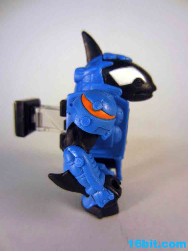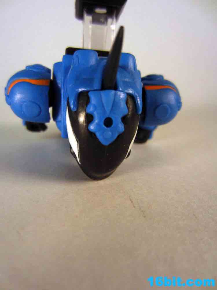 Deco is acceptable. While Donwhale has 7 colors of paint on his person, poor Olrich only has 4. The decision to leave the eye and teeth unpainted is disappointing. Even if it was just more white, that'd be welcome. A white chin would be nice too. The blue armor has a nice complimentary orange stripe on the shoulders, but on the whole the figure is black and blue. I dig this guy and I bet he's going to get a lot of attention around here by virtue of his being an orca, but the killer whale could stand to have some more paint. I look forward to seeing one or two customs pop up of this guy.
