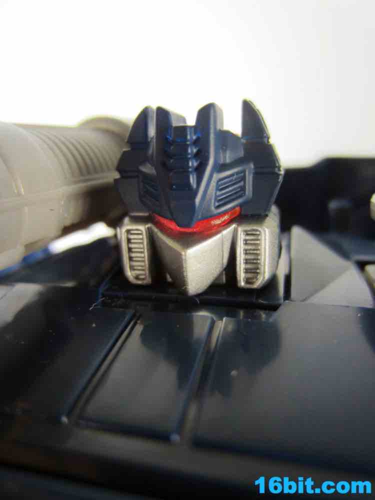 Deco isn't half bad, and could be improved upon. The light purple plastic of the chest window is what hurts the look, as it washes out the Decepticon symbol on the chest and doesn't let the gold paint around it pop. It looks good overall, but why bother to put a purple logo on purple plastic? It's just tough to see, so if you're a sticker fan you might want to toss one on the chest. The eyes are red, the face is silver, and the sculpting feels more crisp than the previous version. Heck, the 2010 Deluxe toy really does feel like a rough draft compared to this one.