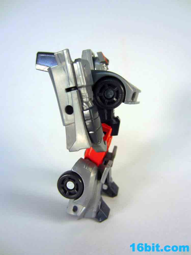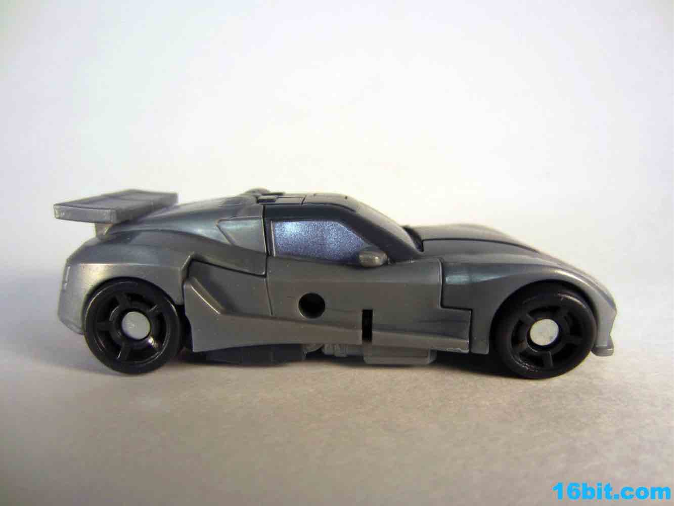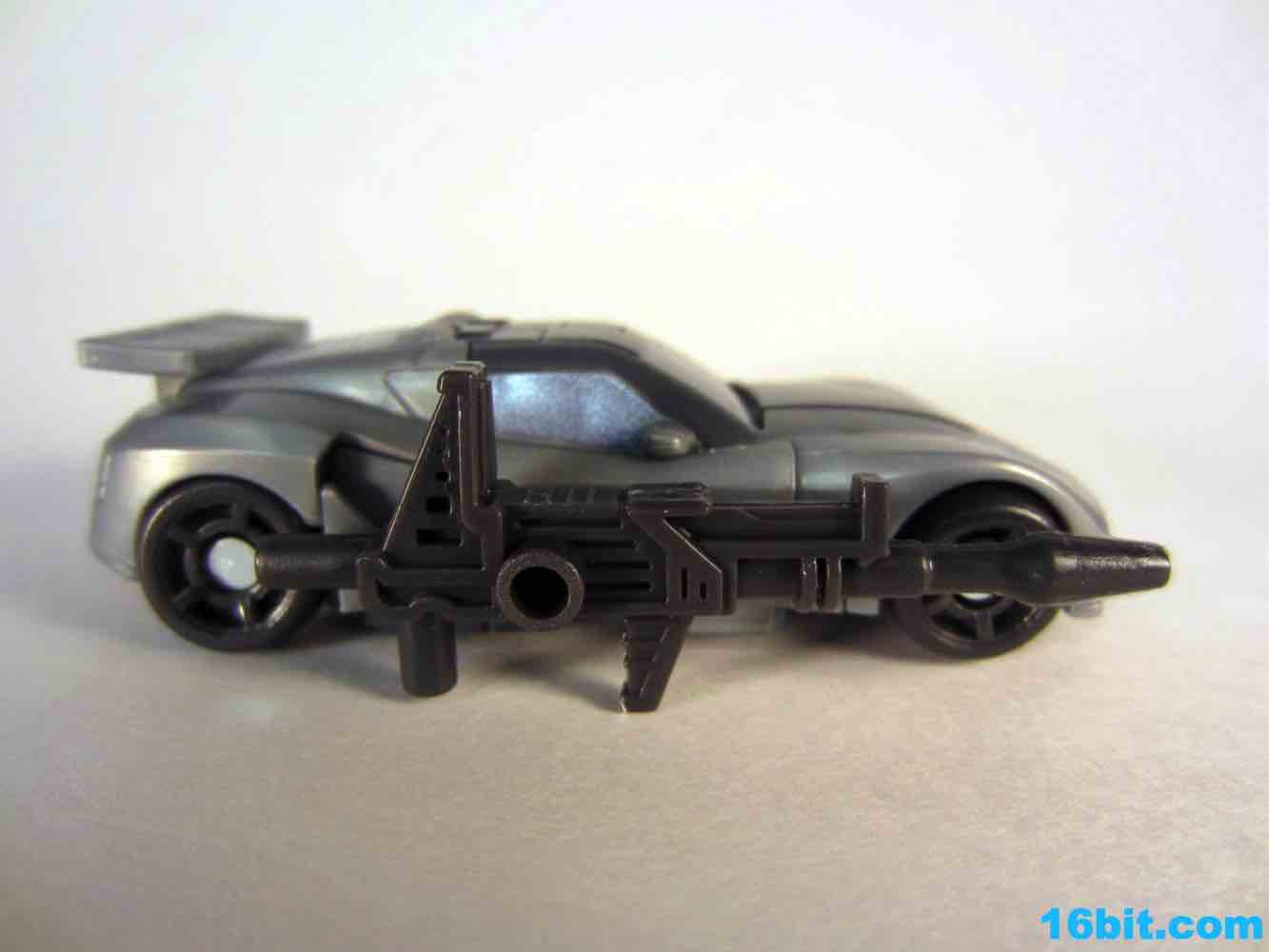 The car is a typical Legends-class car toy, and it's scale to your Cyberverse vehicles. Rolling wheels are the toy's main feature, but you'll notice a hole on the door which can fit a 3mm peg weapon. Basically Hasbro upgraded these to roughly Cyberverse levels of play functionality, which is more or less what I want. There's not too much articulation on the robot, and I don't expect much out of the car. Getting the enhanced hands and weapon actually made this worth the six bucks for me.