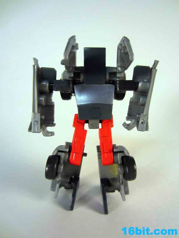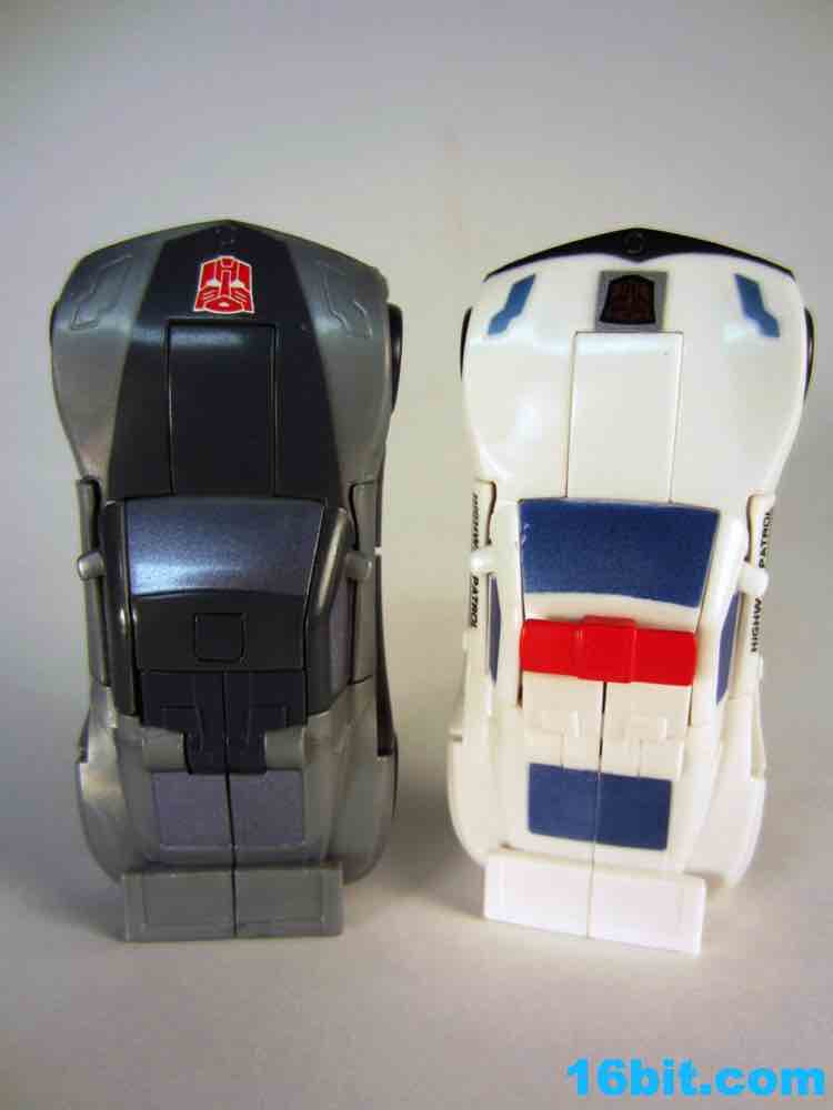 White (or light) plastic tends to suck the detail right out of a sculpt, light/pale colors don't usually lend themselves to presenting a figure as its best. The detail on the face, it turns out, is quite good and the grille looks fantastic. The headlights were all but obscured by black plastic before, and now the holes are (for better or worse) quite apparent. The sculpted shields in his arms are also painfully obvious, which is something of a bummer as this is no longer a police vehicle. He received an above average amount of paint, with the roof, hood, windows, and other spots getting deco which translates nicely to robot mode. Heck, they even gave him red pants! I'm pretty happy about that. You should be, too.