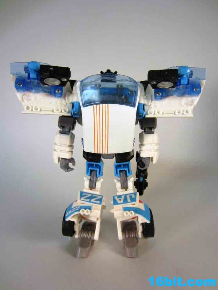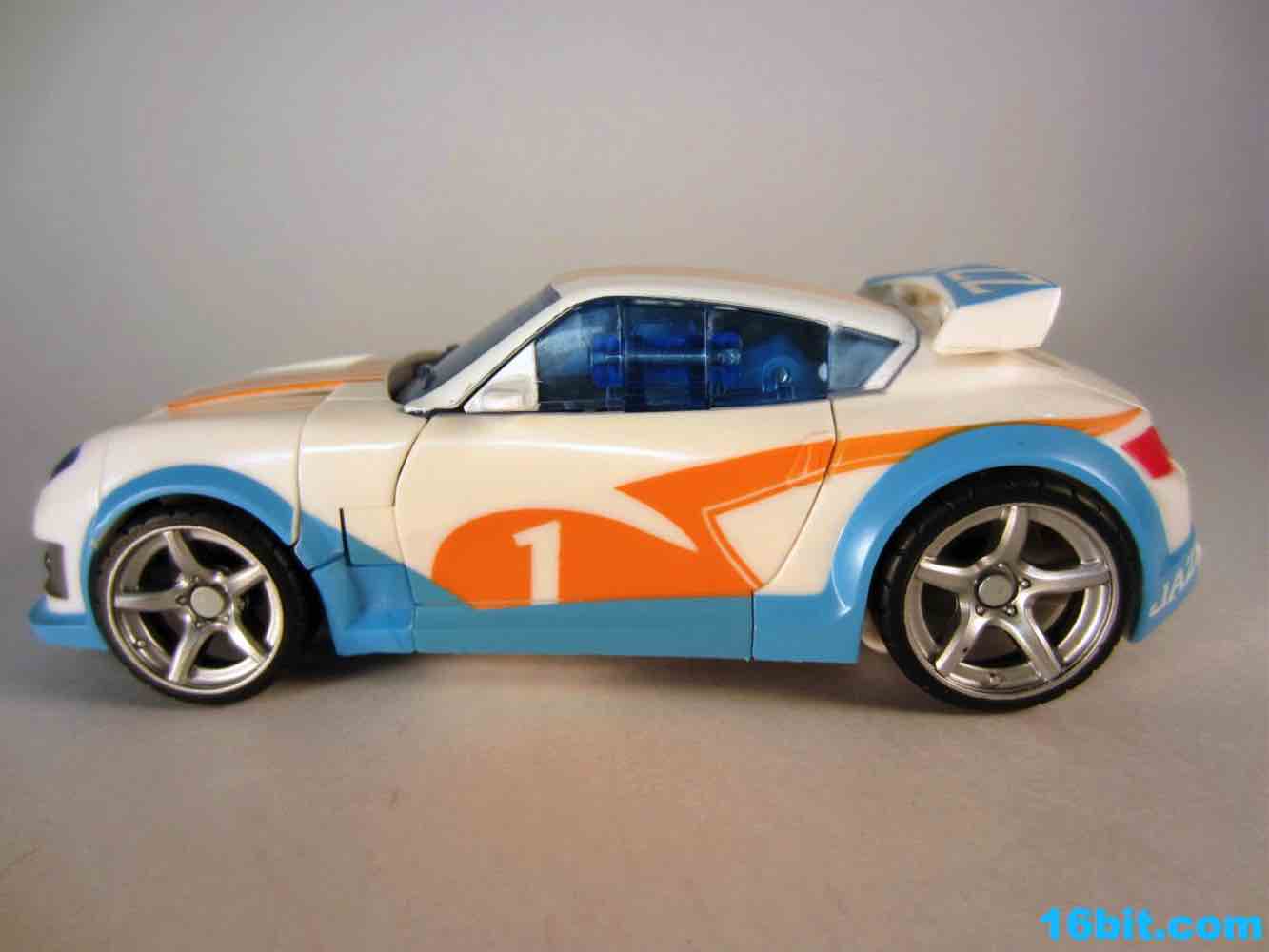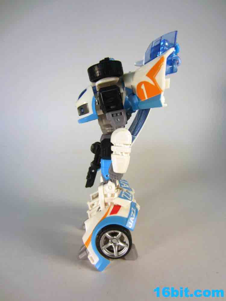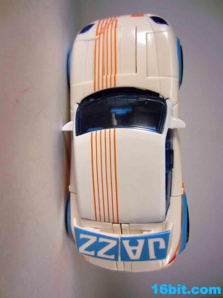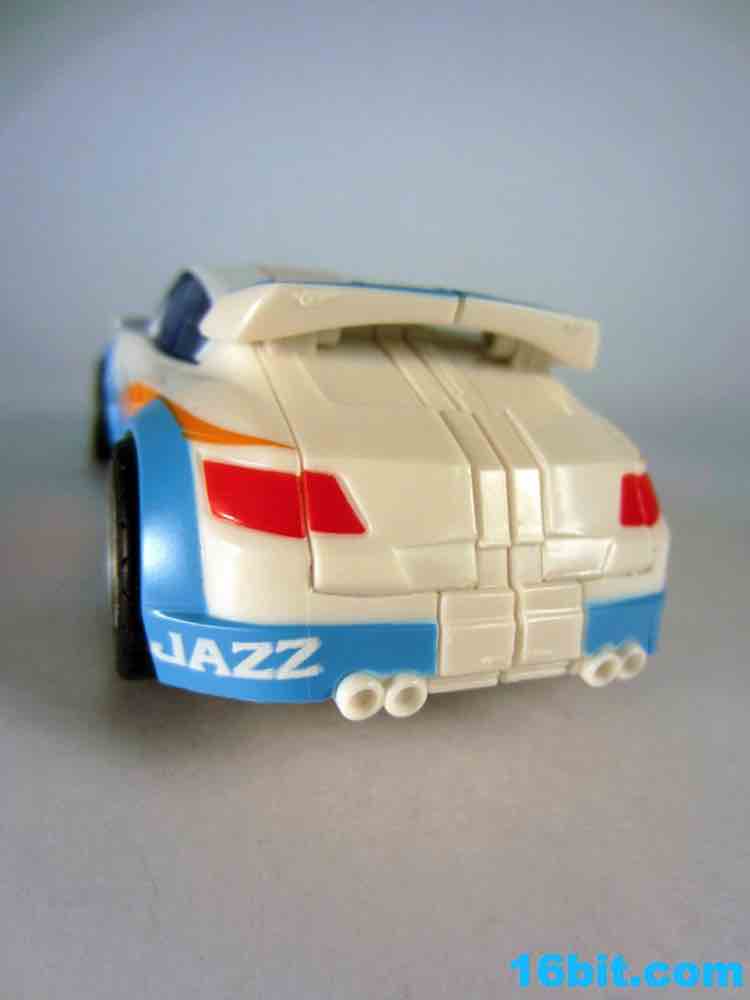 The name "Jazz" is written on the new figure's bumper and spoiler, so fans now sorta have a modernized Jazz for their G2 shelves while leaving the door open for a slavish recreation of the G2 figure in the future. Someone's gonna need to do it.